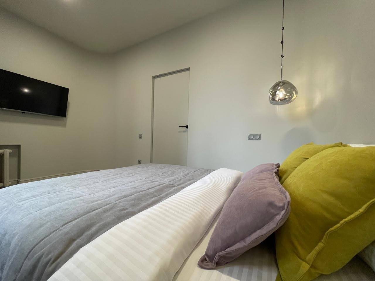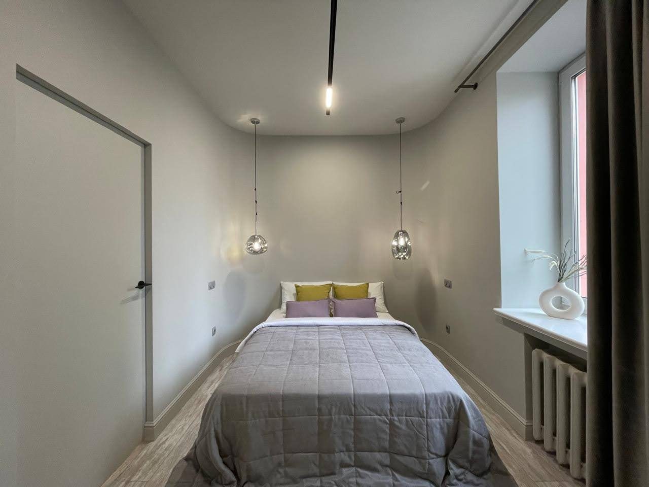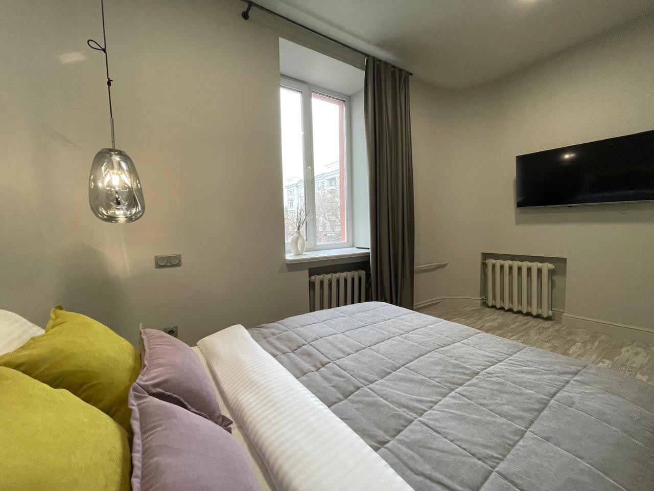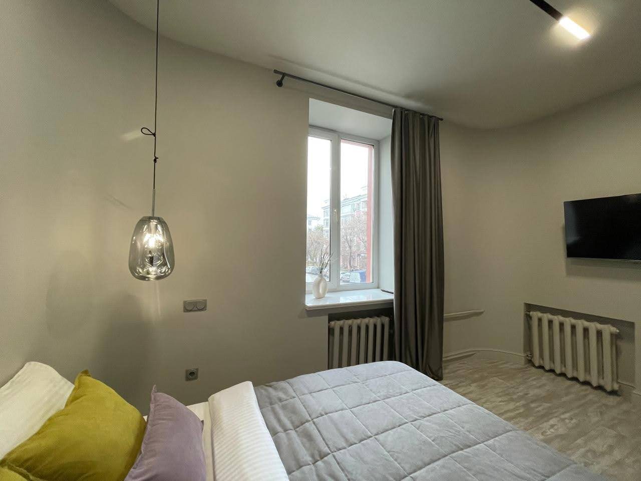 Просторная квартира с современным ремонтом оборудована удобными спальными местами, затемненными шторами, шкафом, кондиционером для регулирования температуры, ЖК-телевизором с кабельным телевидением, wi-fi и собственной ванной комнатой. Санузел укомплектован качественной сантехникой, гигиеническим душем и средствами личной гигиены.