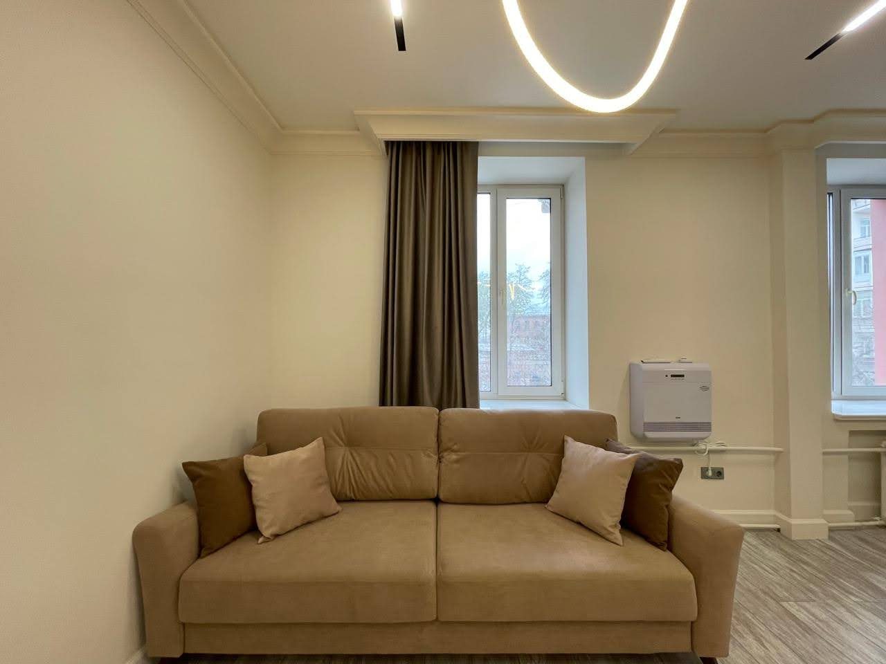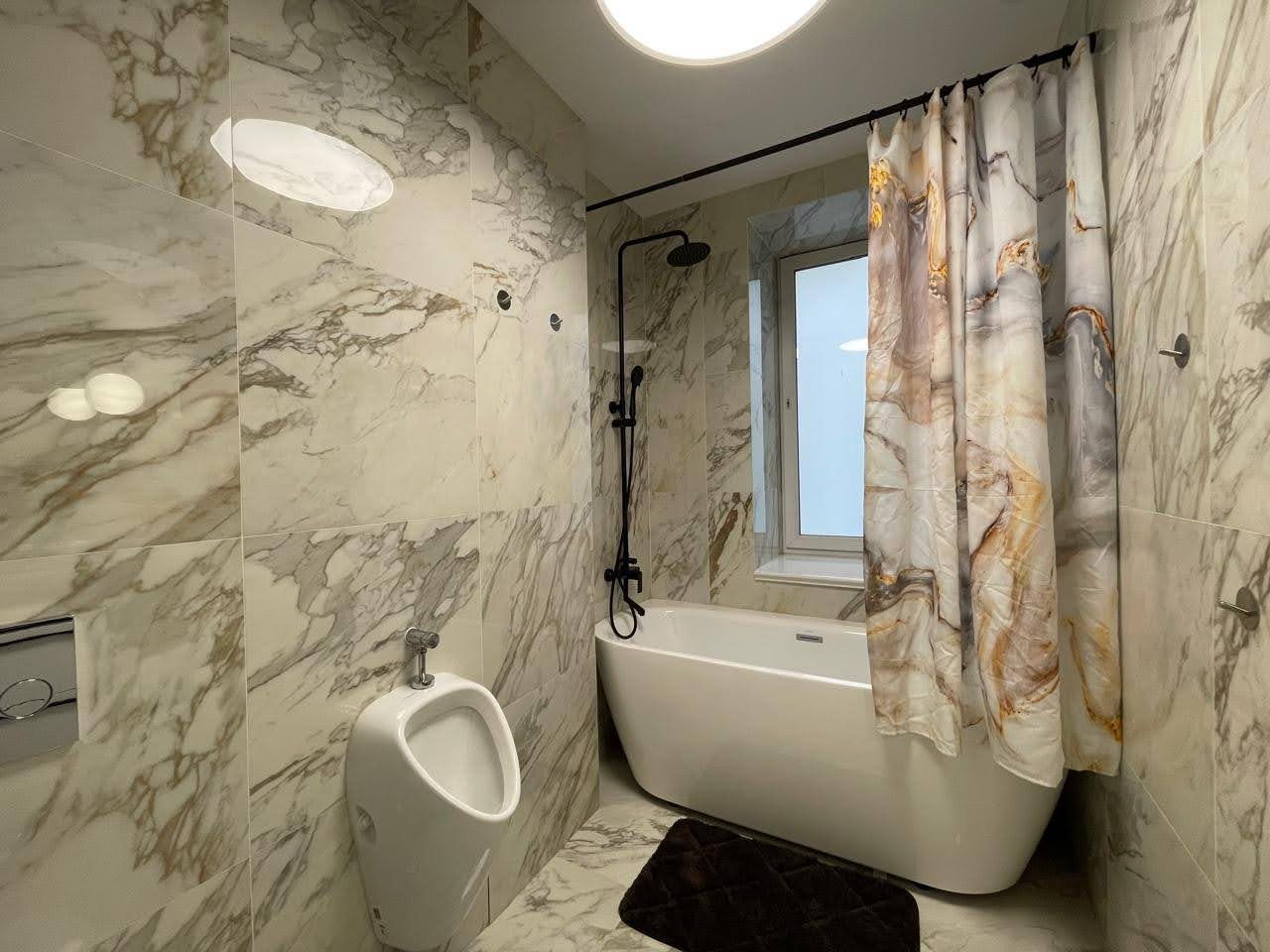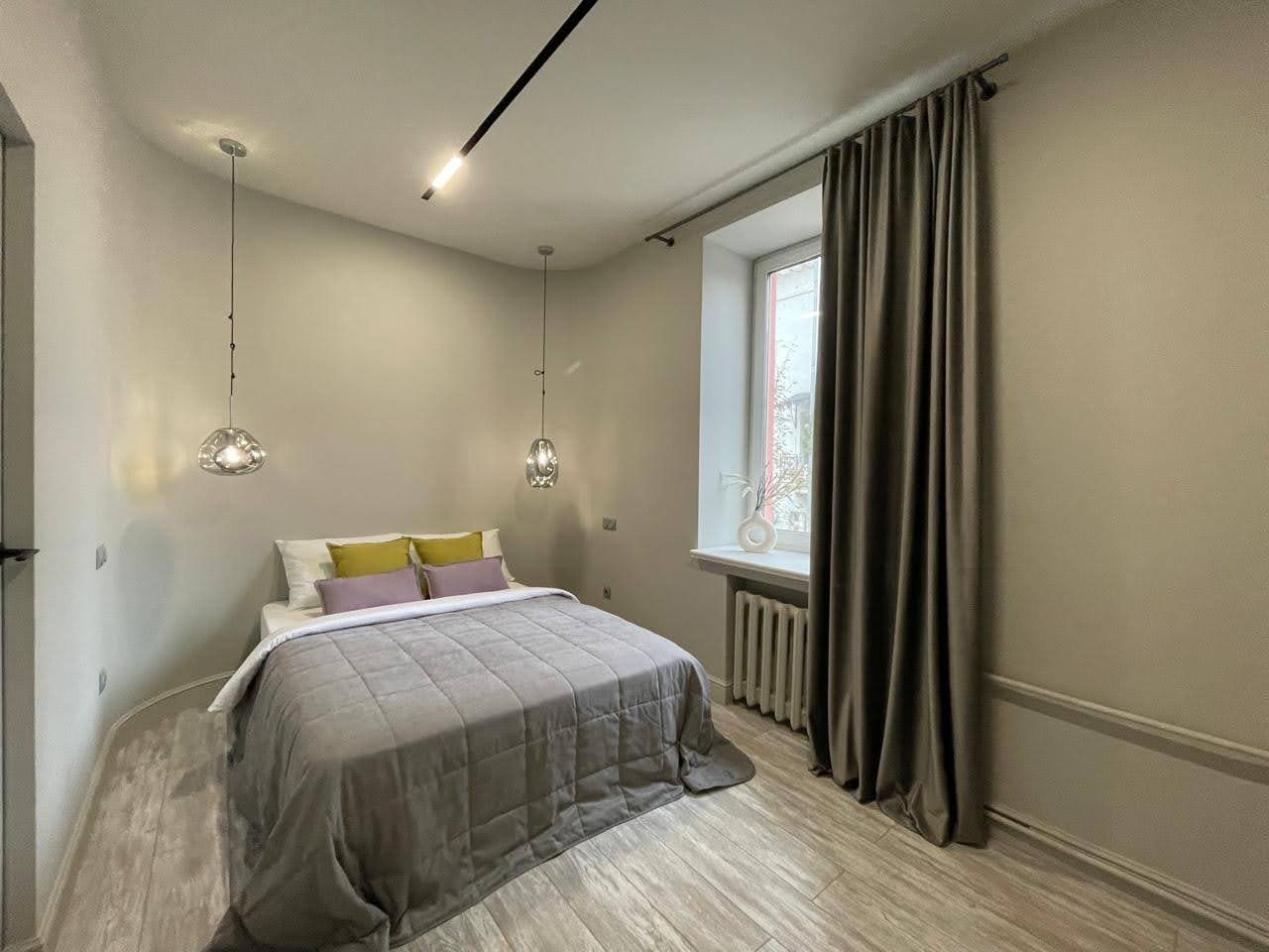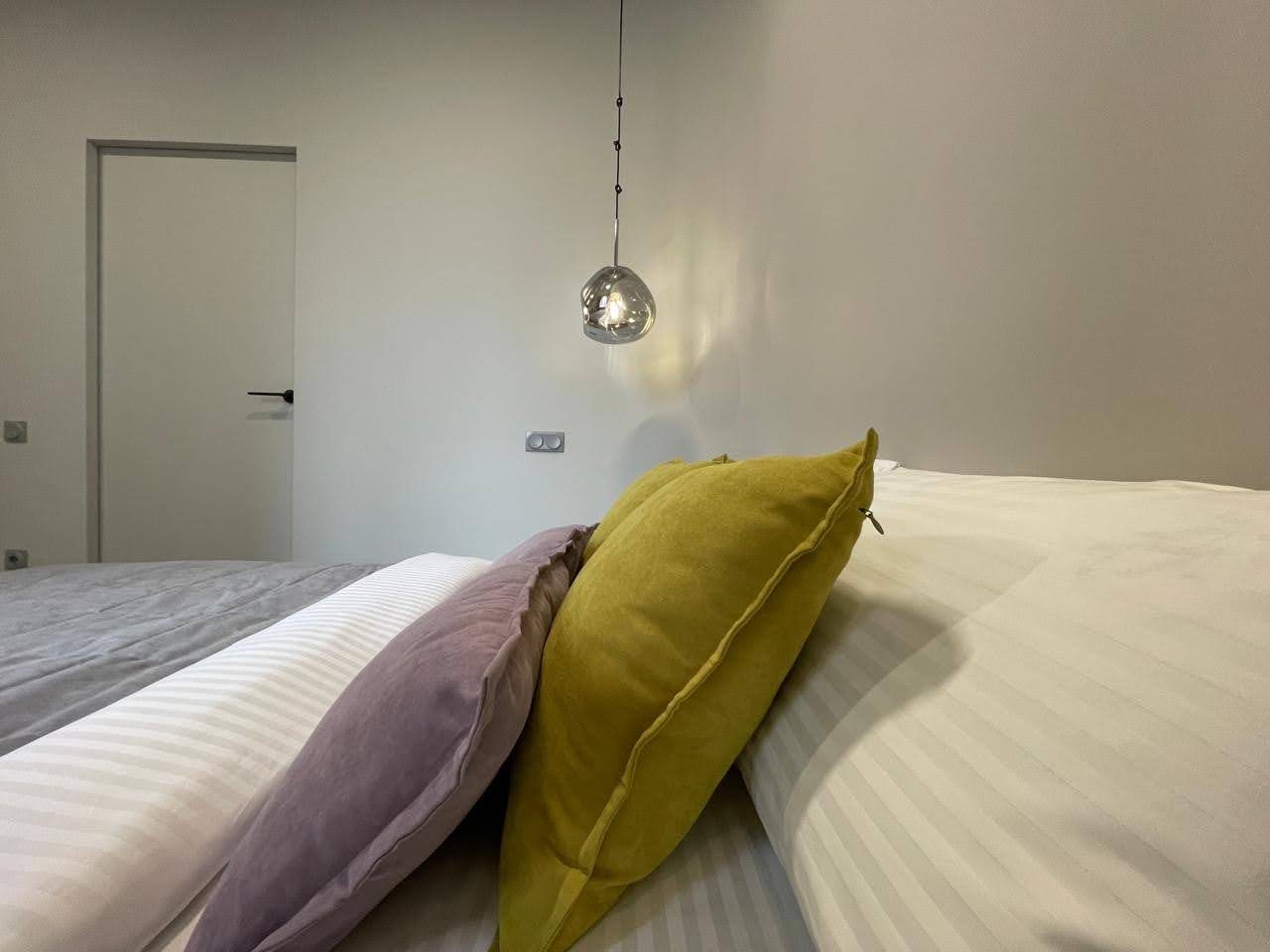 Просторная квартира с современным ремонтом оборудована удобными спальными местами, затемненными шторами, шкафом, кондиционером для регулирования температуры, ЖК-телевизором с кабельным телевидением, wi-fi и собственной ванной комнатой. Санузел укомплектован качественной сантехникой, гигиеническим душем и средствами личной гигиены.