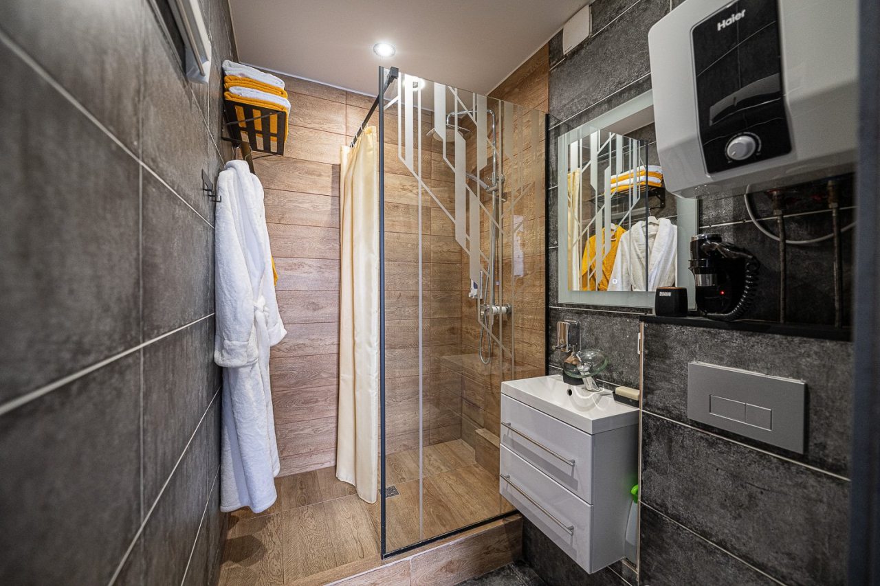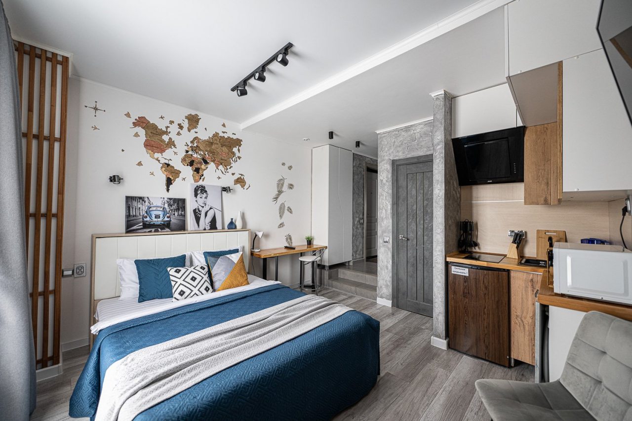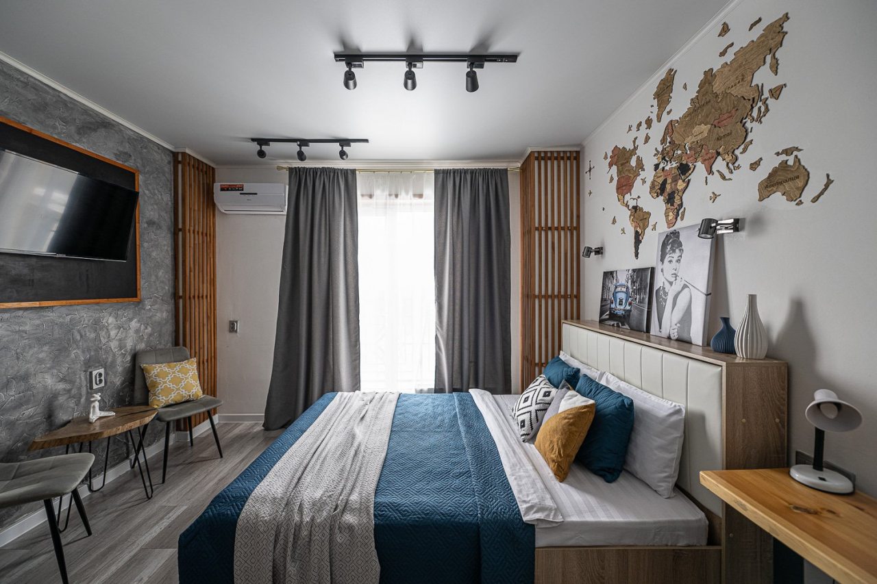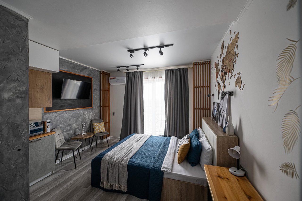 Апартаменты располагают всем необходимым для комфортного проживания гостей, в том числе удобной кроватью, телевизором и рабочим столом. Ванная комната оснащена современной техникой. Благодаря стильному дизайну гости будут чувствовать себя максимально уютно.