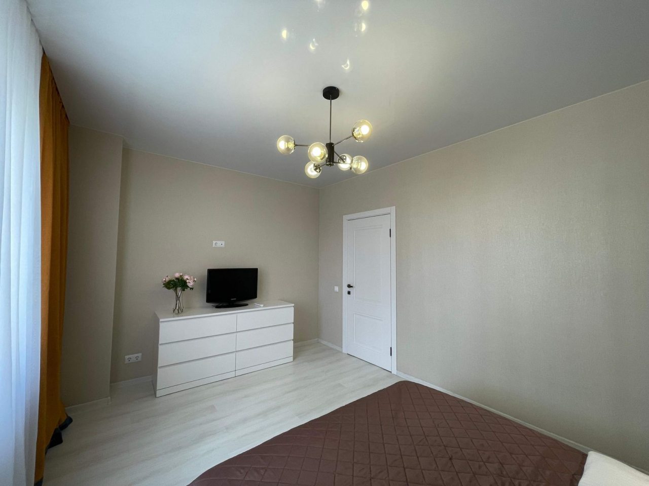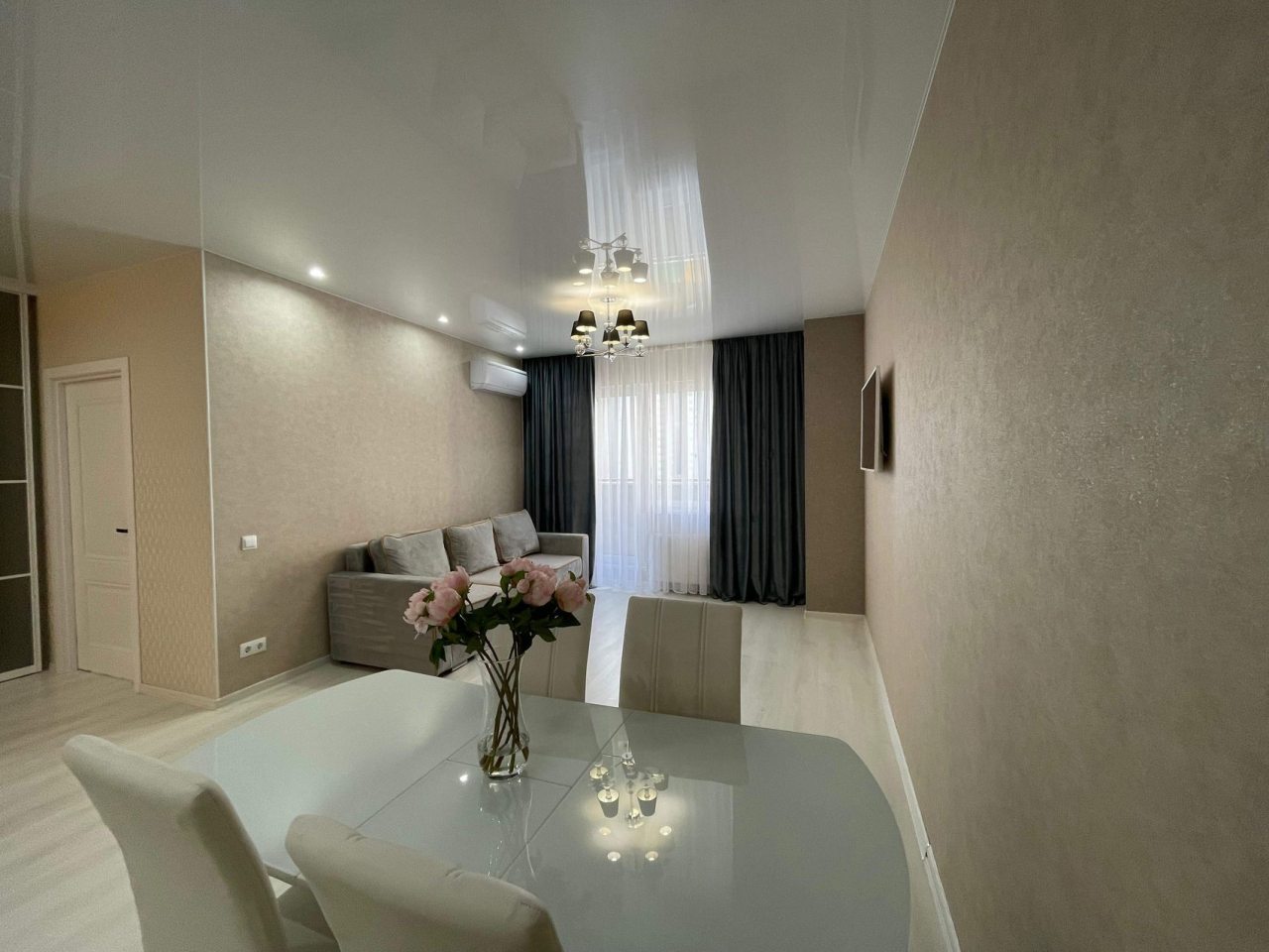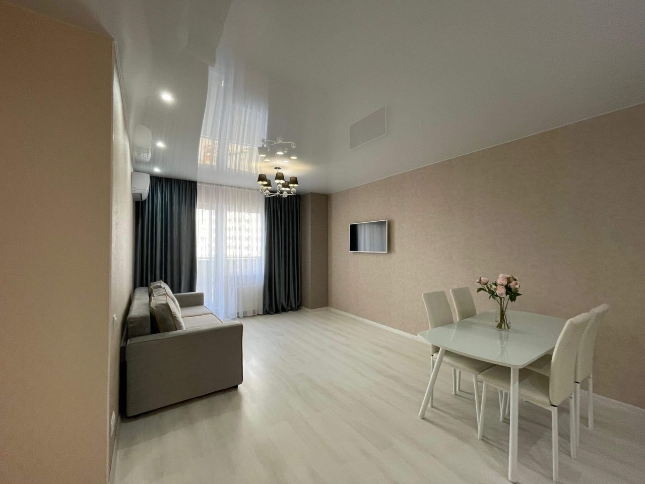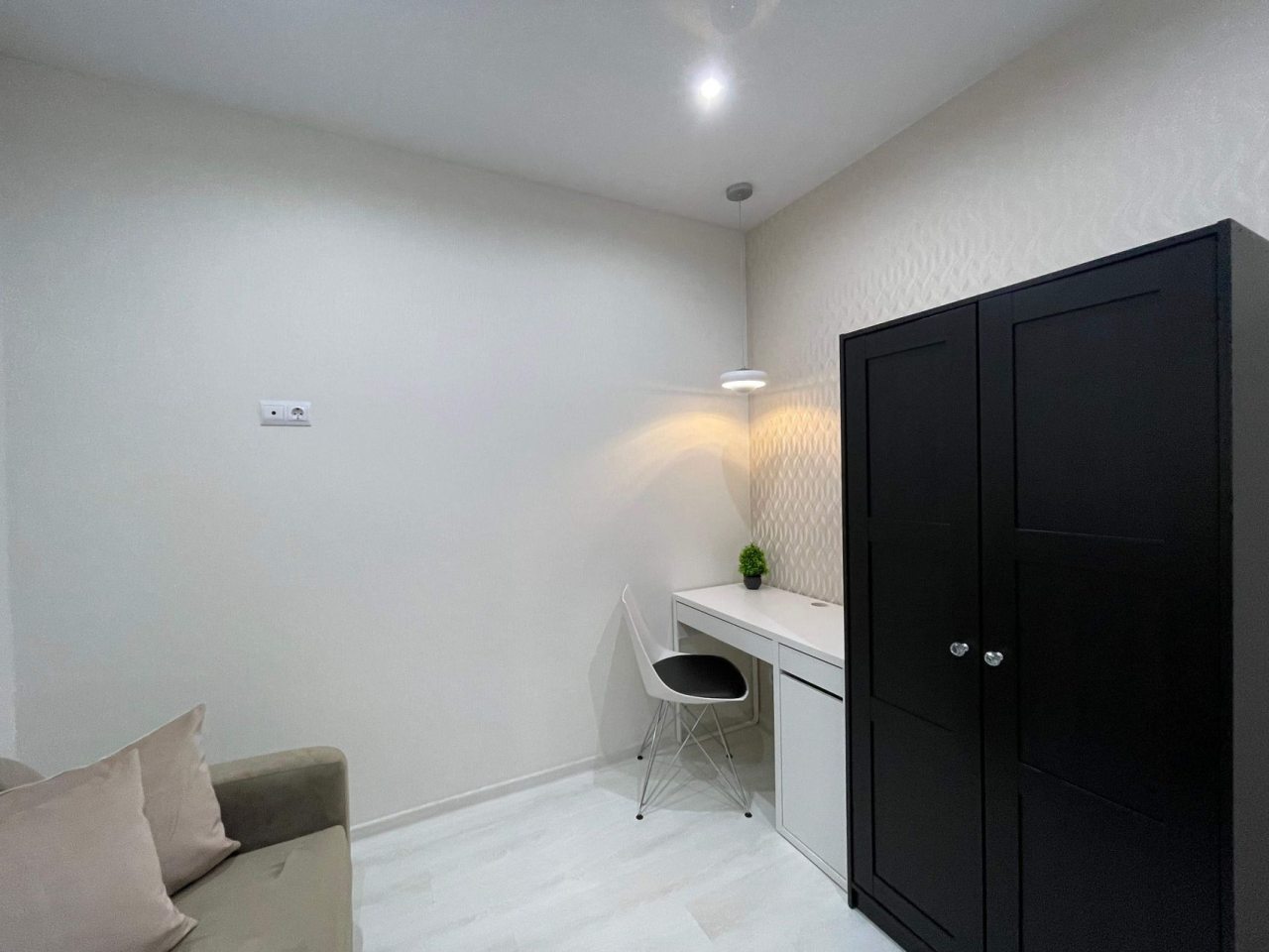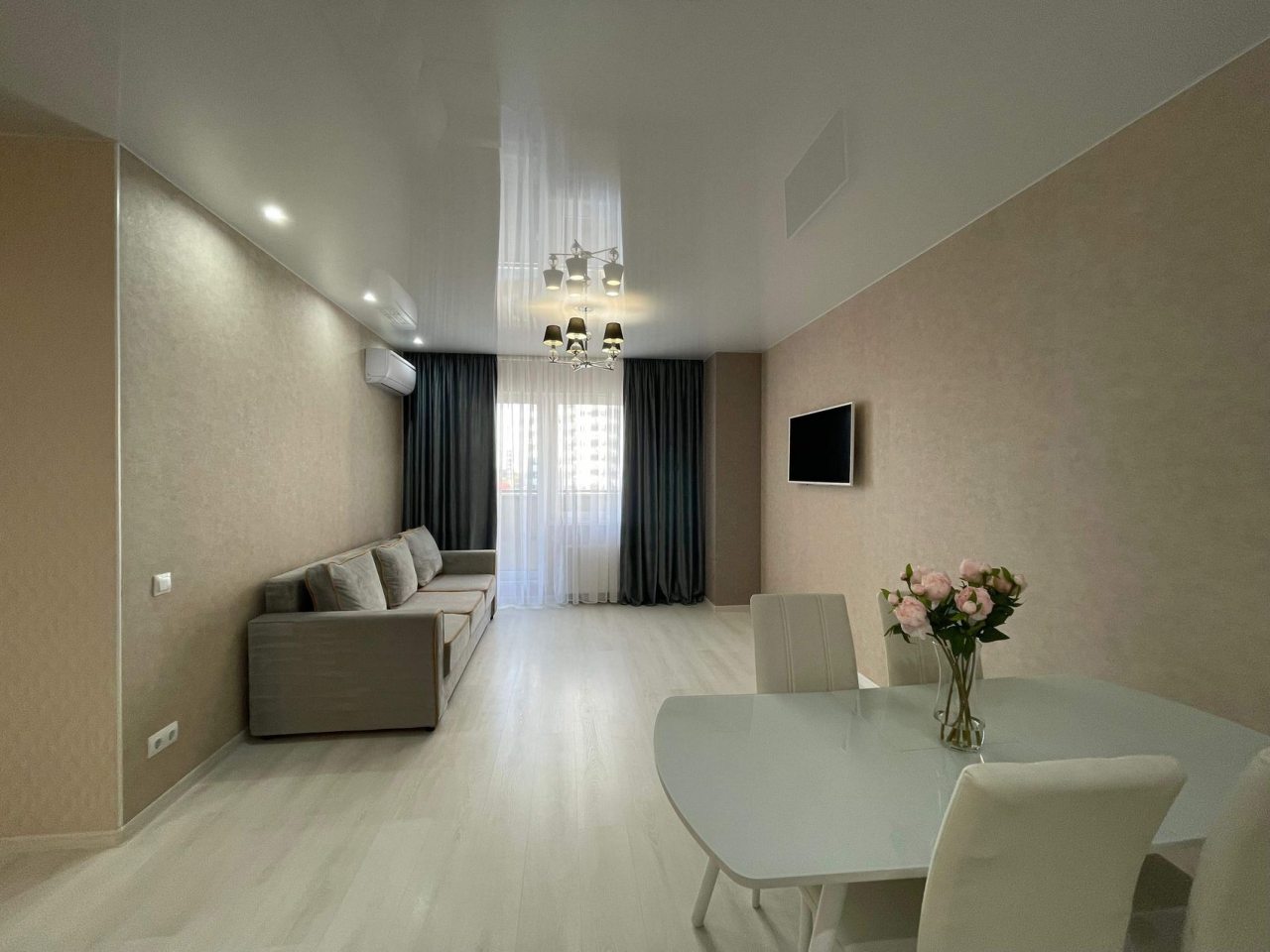 Данный вариант подойдет для размещения семьей или компанией, так как в наличии удобная двуспальная кровать, несколько диванов, сплит-система, два телевизора, вместительные комод и шкаф, а также ванная комната со стиральной машиной.