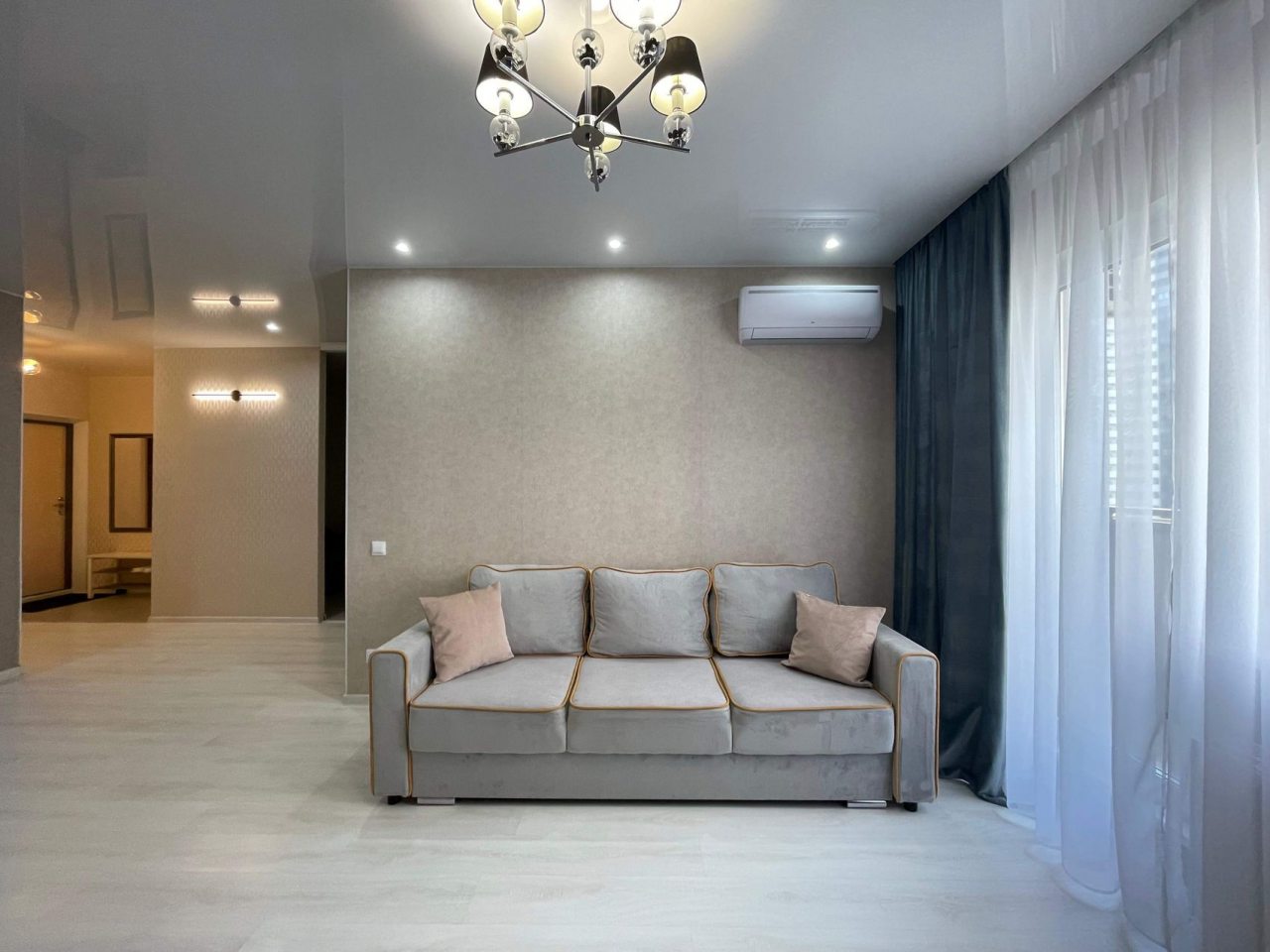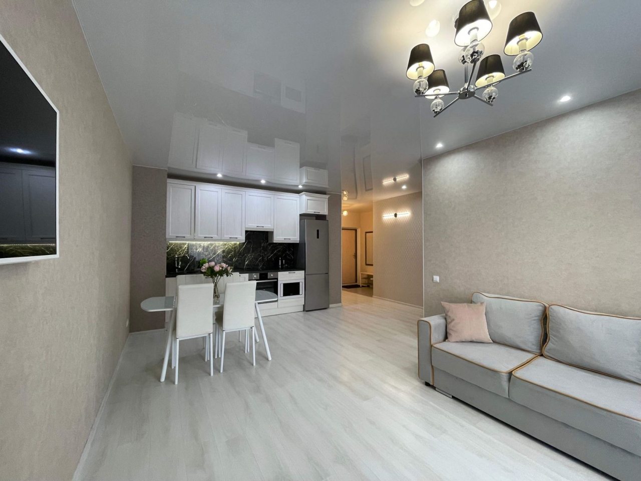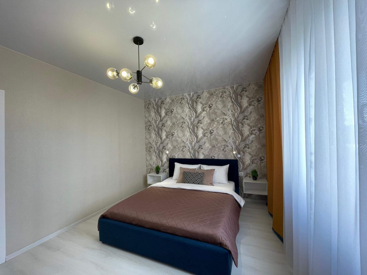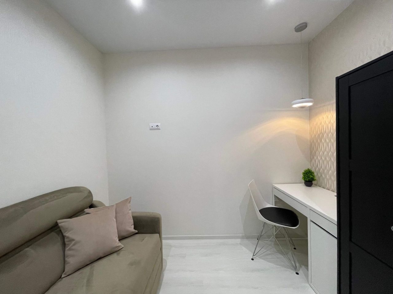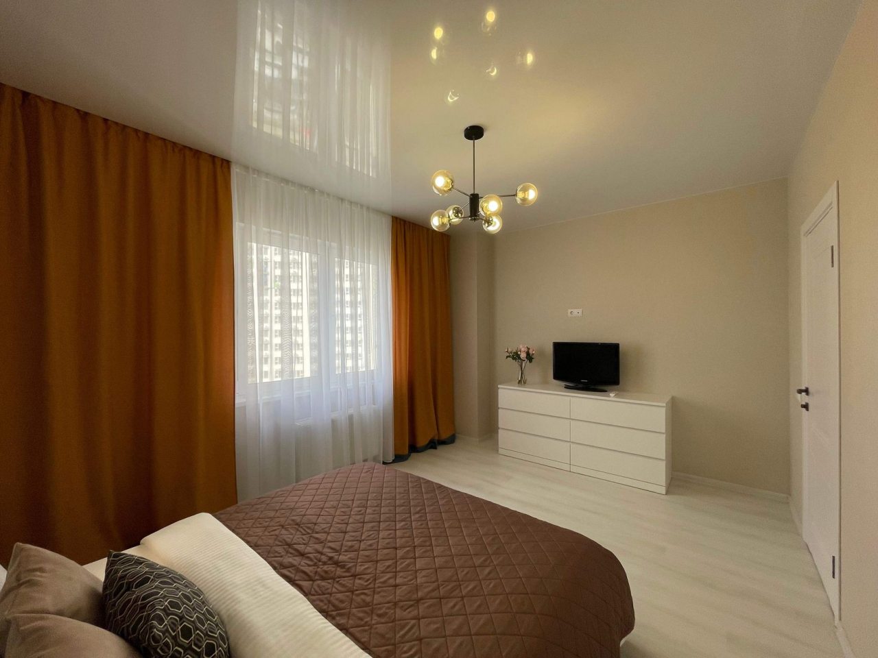 Данный вариант подойдет для размещения семьей или компанией, так как в наличии удобная двуспальная кровать, несколько диванов, сплит-система, два телевизора, вместительные комод и шкаф, а также ванная комната со стиральной машиной.