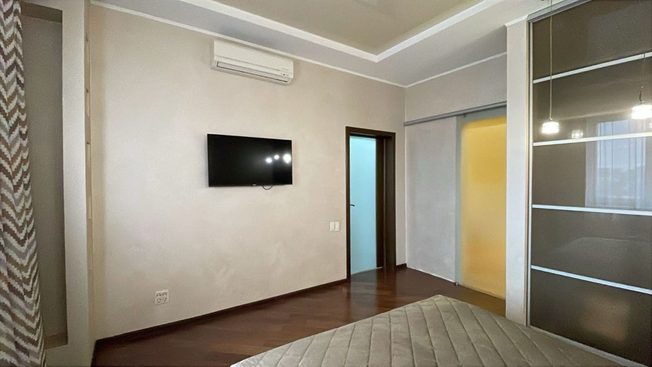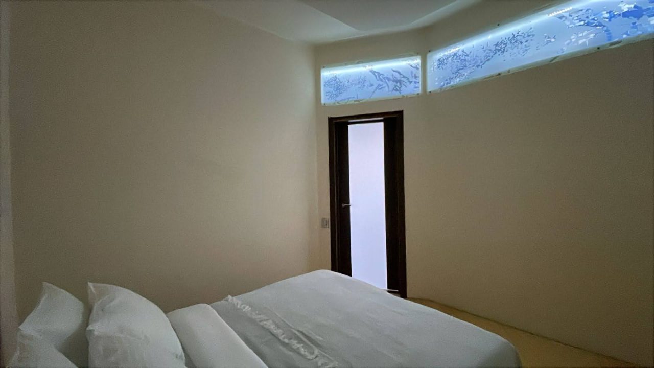 Это отличный вариант для размещения семьей или компанией, поскольку на площади 84 квадратных метра вас ожидают две удобные двуспальные кровати, мягкий диван и кресла, вместительный шкаф, телевизор, два санузла, большая гидромассажная ванна, тропический душ.