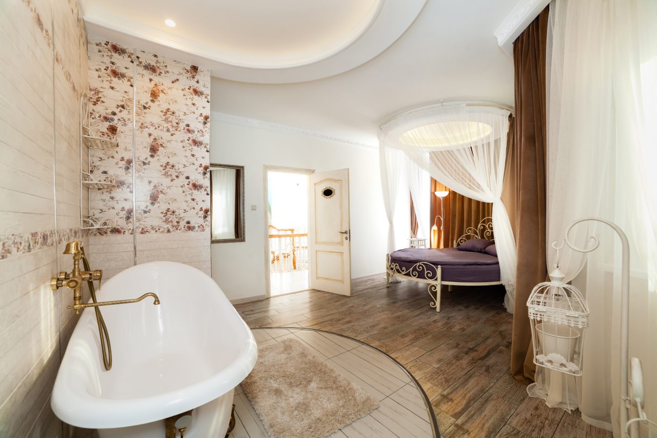 Сняли коттедж для отдыха всей семьей. Комнат много, поместились все. Очень красивый дизайн. Все время пребывания чувствовалось, будто действительно были в каком-то замке или поместье. За дополнительную стоимость можно отдохнуть в банном чане или попариться в бане. Территория зеленая и ухоженная, вид потрясающий.