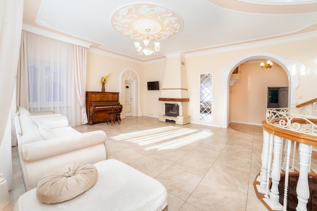 Роскошный коттедж обустроен на высоком уровне. В его оснащение входит несколько спален с удобными кроватями и комплектами постельного белья. В гостиной установлено пианино, телевизор, есть мягкий диван, кресло и уютный камин. Все комнаты удобные и имеют все необходимое для пребывания. В ванной комнате стандартный набор сантехники.