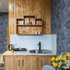 В каждом номере для приготовления еды имеются варочная панель, холодильник, чайник, посуда. Можно воспользоваться барбекю-зоной и приготовить блюда на мангале.