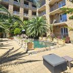 Хорошее месторасположение рядом много магазинов продуктовых, кафе, свежая выпечка, на территории бассейн есть завтрак, обед ужин, шведский стол, до моря пешком, пляж большой народу очень много