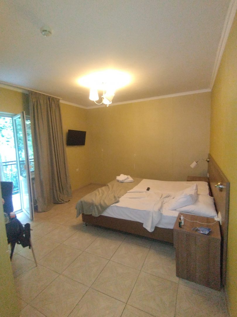 У каждого номера свой балкон на котором вечерком приятно посидеть. В номере есть кондер, свой чайник и фен (лайк). Чистое белое постельное белье и полотенца (за это тоже спасибо). Хорошие спокойные админы, которые готовы в случае чего помочь. В 7 минутах ходьбы пляж, два магазина, так что местоположение удобное. Нет толп народа и никто не мешает. Так что советую :)))