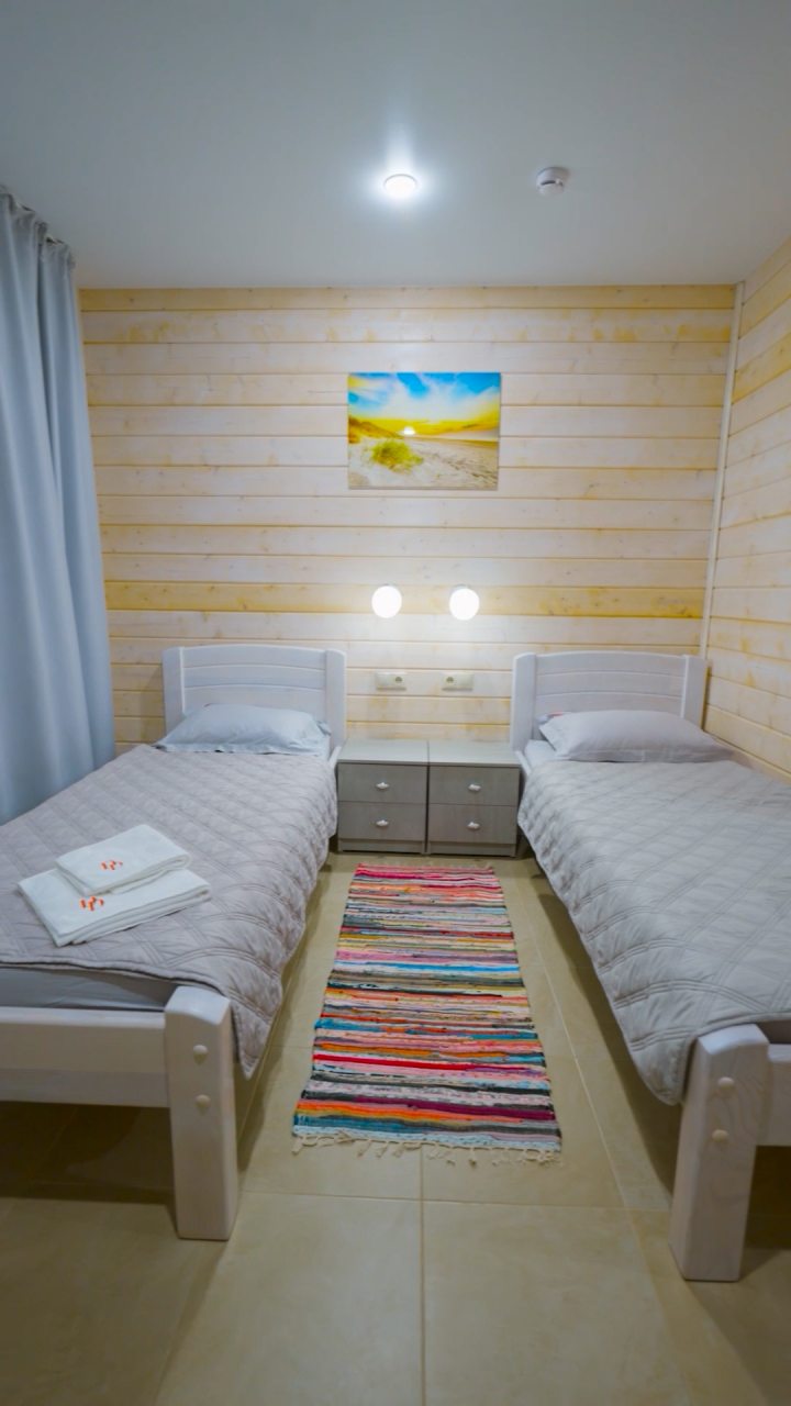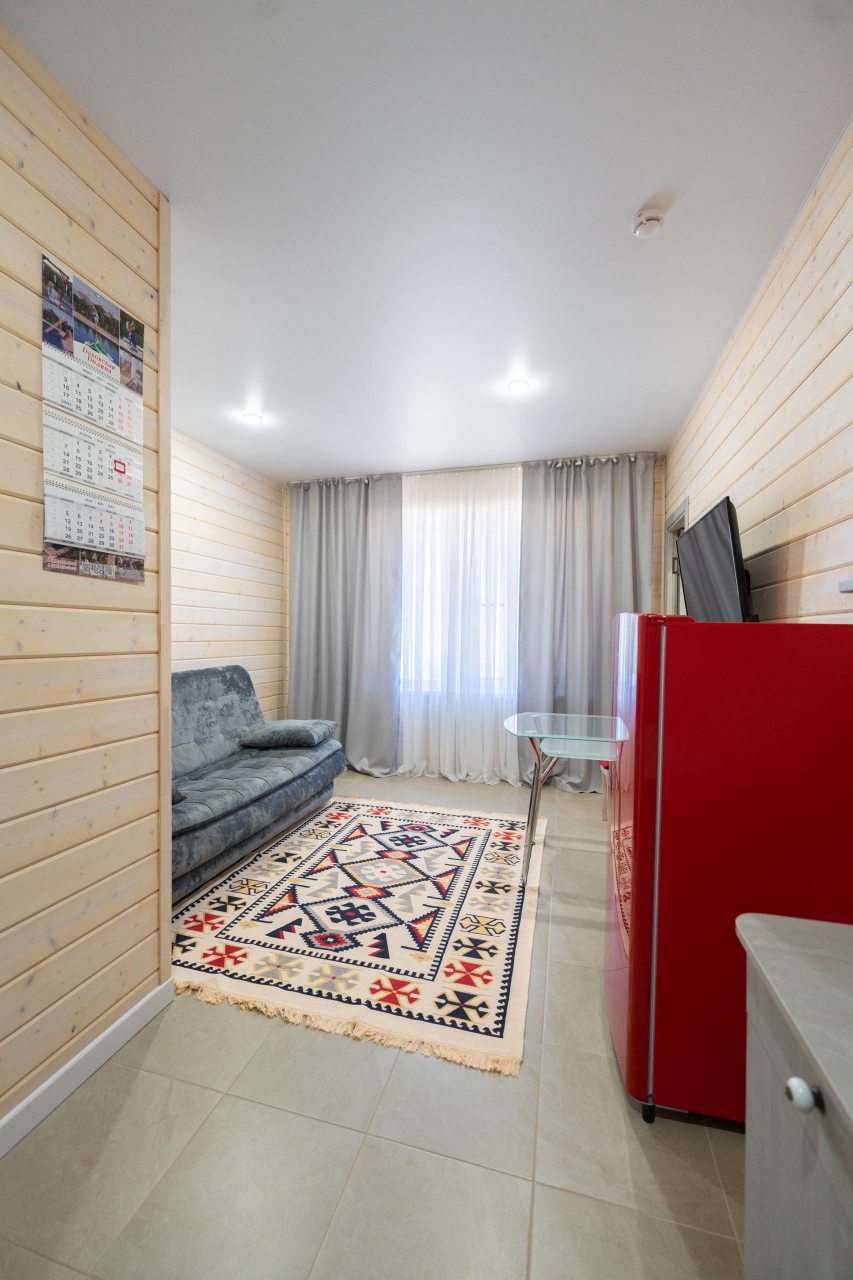 Номер чистый, уютный, комфортная температура. Отличный вид из окна! Отличный санузел. Номер оборудован всем необходим для комфортного проживания ( телевизор, холодильник , чайник, набор полотенец, разовые средства гигиены