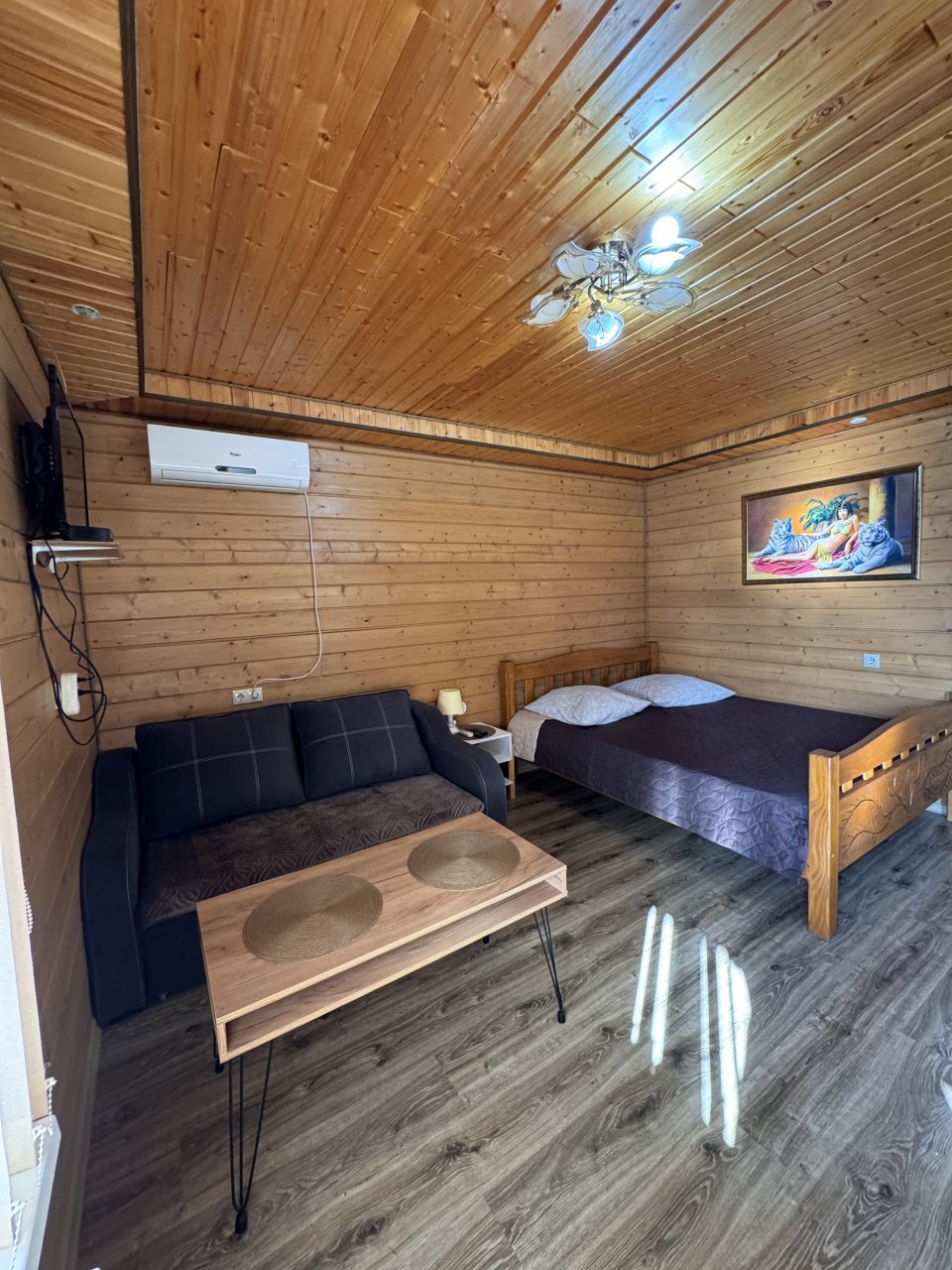 Мы жили на третьем этаже. Весь этаж занимал наш номер: две спальни, огромная гостиная, огромный балкон с шикарным видом на горы. В номере было все необходимое - кондиционер, микроволновка, холодильник, чайник, посуда. На первом этаже - кухня. Очень красивая территория. Есть парковка для машин, беседки, мангалы. Хозяйка очень приветливая, всегда на связи, во всем старается помочь. Расположение удобное для посещения всех достопримечательностей. Рядом магазины.