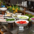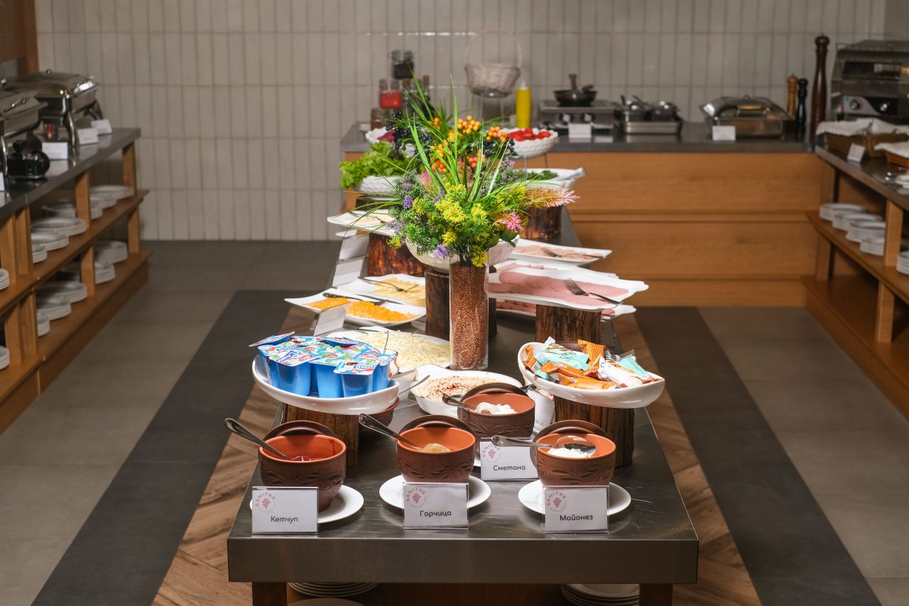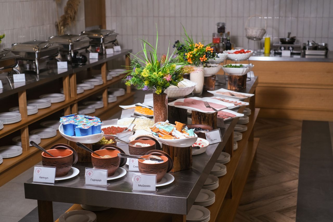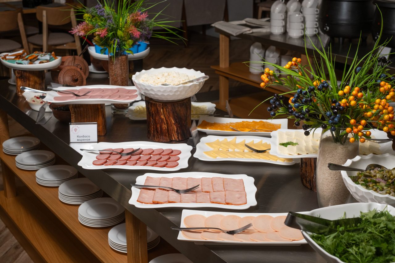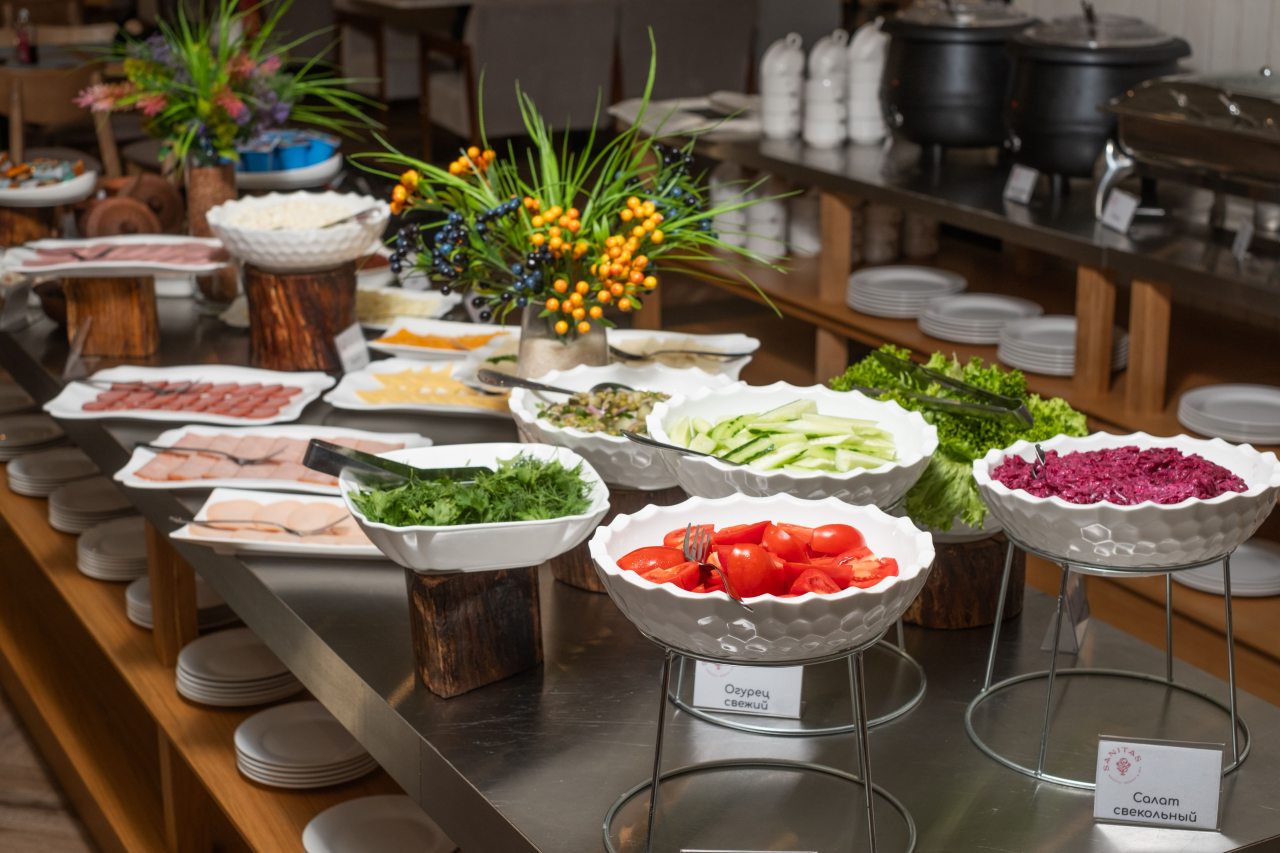 На территории работает большой просторный ресторан с двухразовым питанием по системе «шведский стол». Повара здесь выбирают только самые натуральные и свежие продукты для приготовления завтраков и ужинов. Вас удивит большой выбор блюд и напитков.