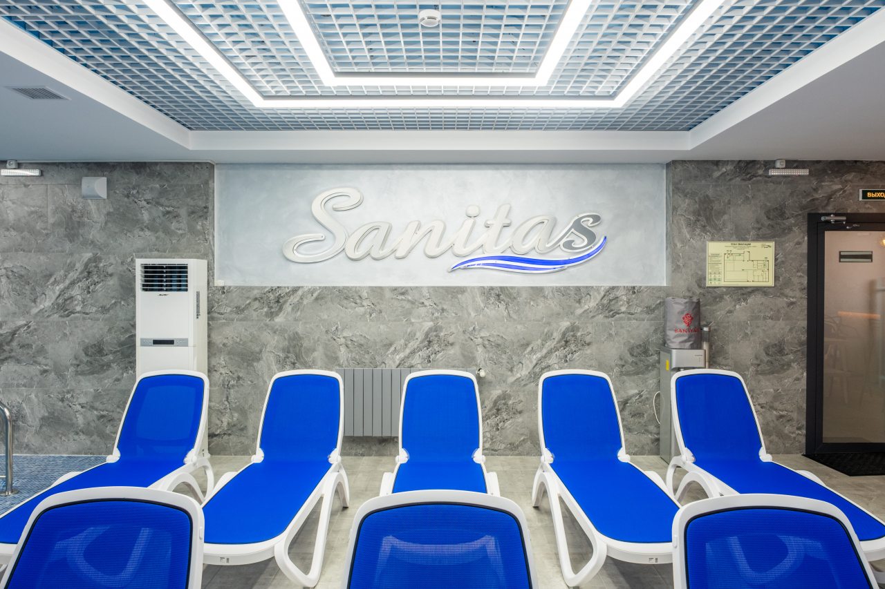 На территории есть спа-зона с бассейном, медицинские услуги, оборудованный пляж, фитобар, конференц-зал и многое другое. Отель Санитас является отличным местом для проведения корпоративных мероприятий и корпоративного отдыха. До аэропорта Уйташ — 99,5 км, до железнодорожного вокзала Дербент — 1,1 км.