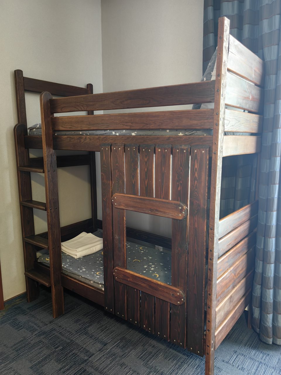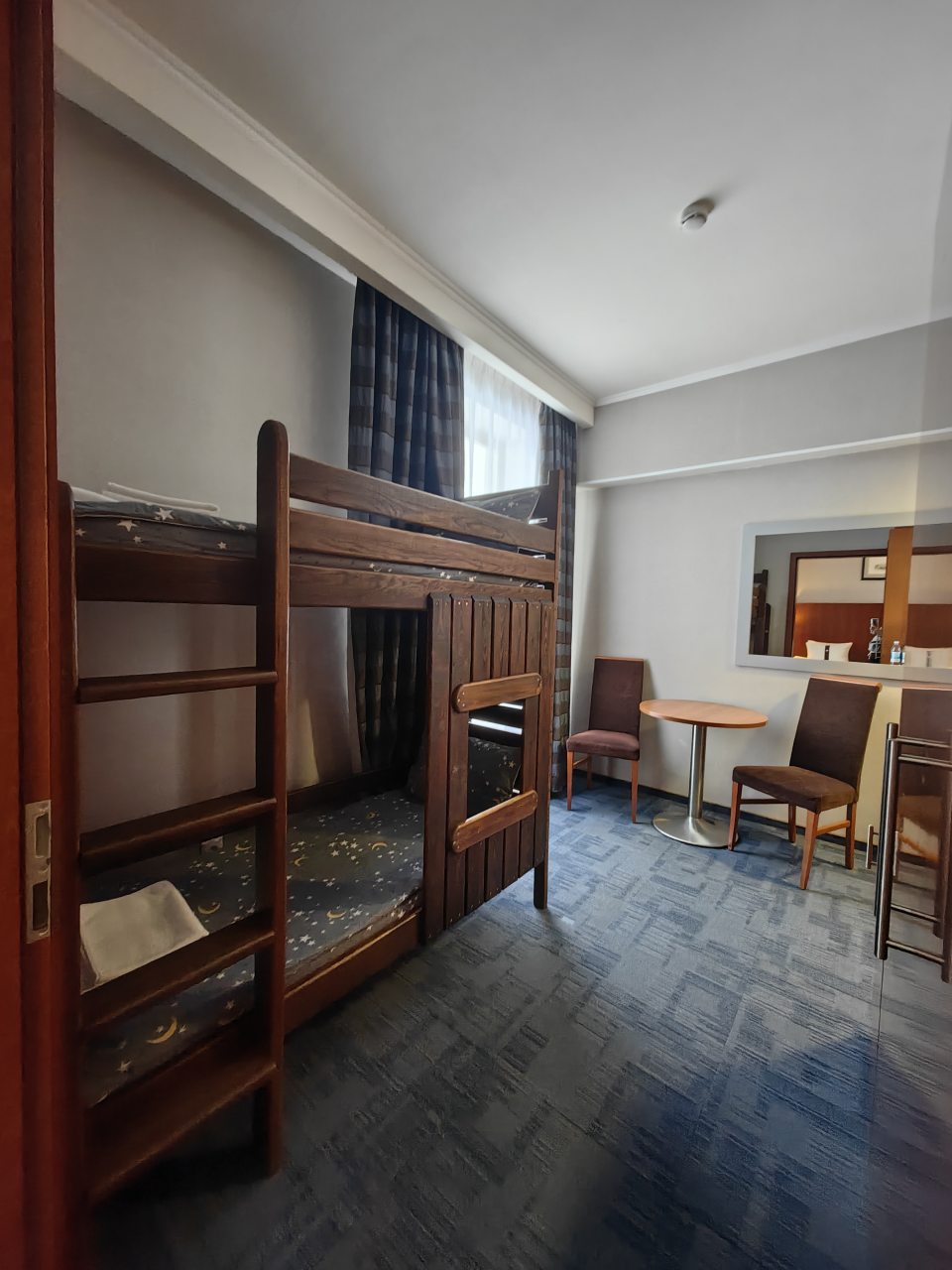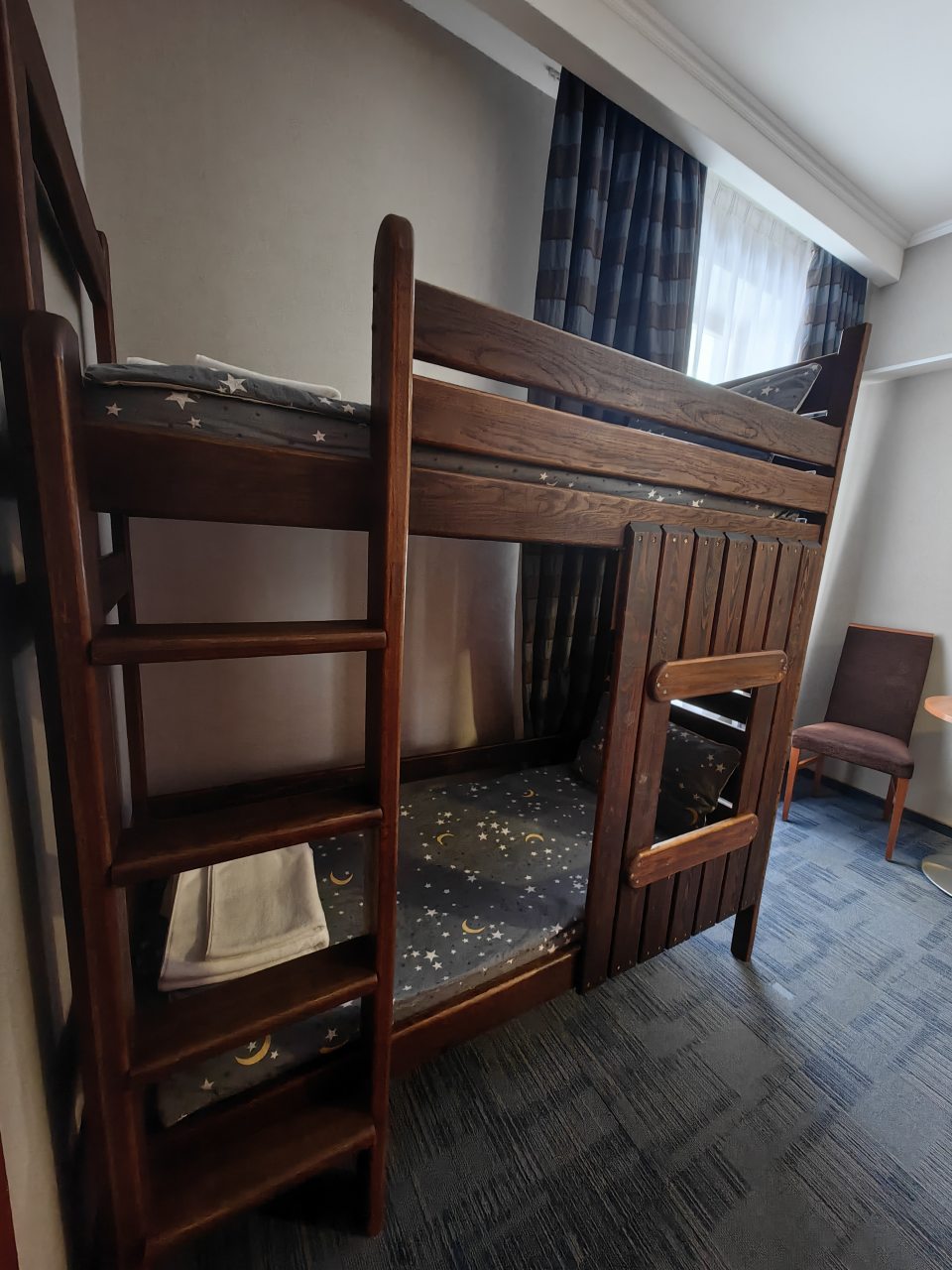 - Дети 5-12 лет на доп. местах размещаются по 500 руб./сутки в номерах категории Люкс на креслах-кровати, в Семейном номере на двухярусной кровати.