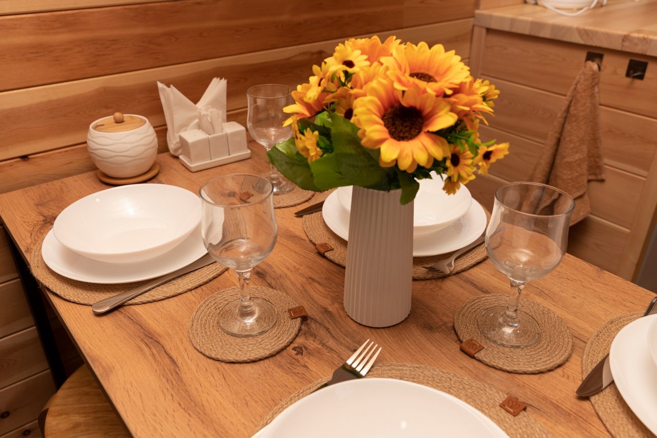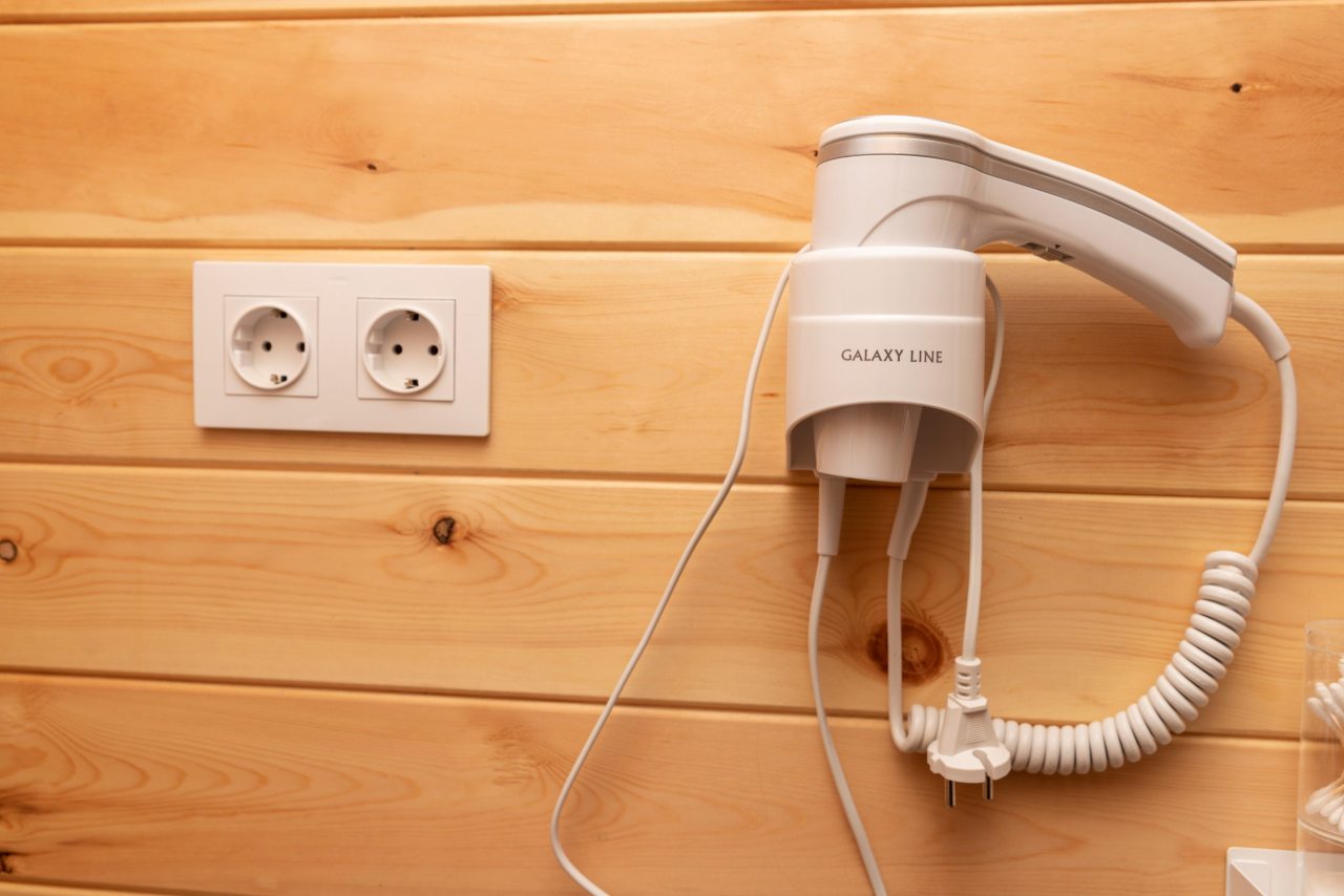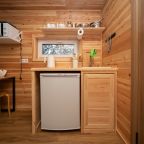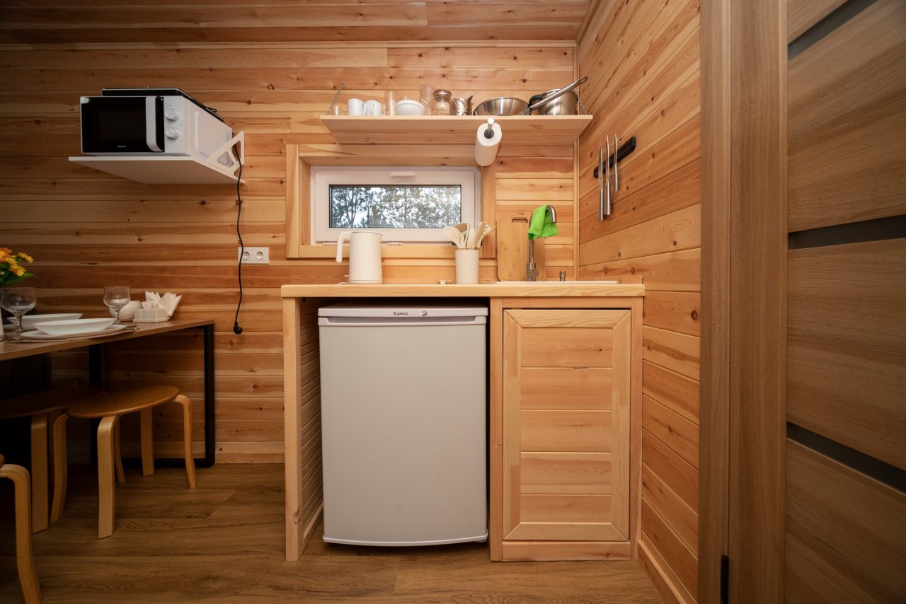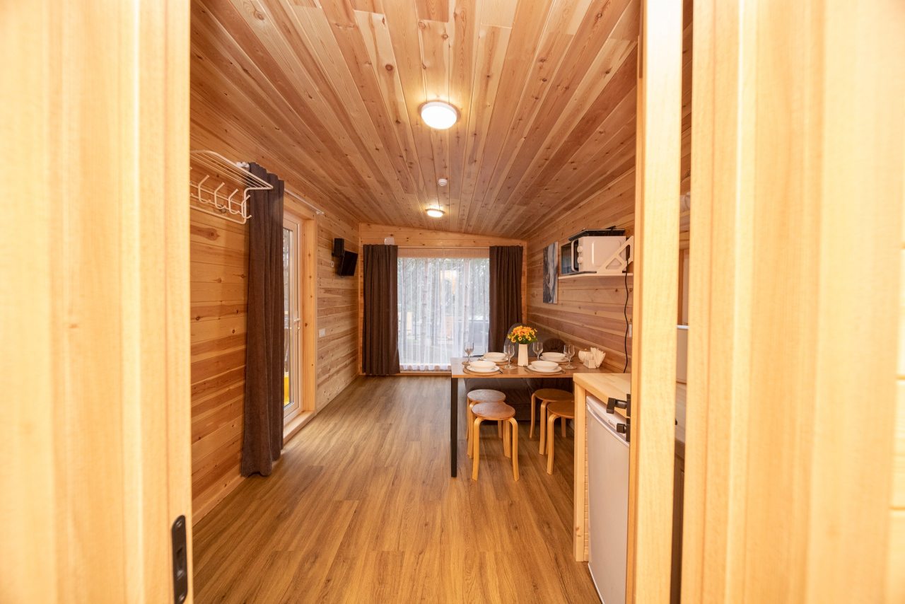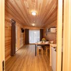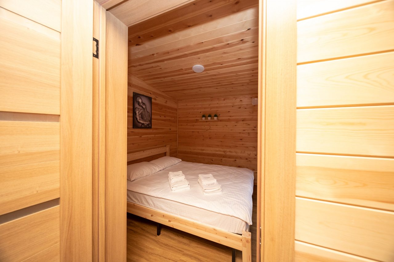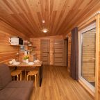 Для размещения отдыхающих представлен уютный и компактный домик, выполненный из натуральных материалов. Он оснащен: двуспальной кроватью, белоснежным постельным бельем, телевизором для просмотра передач и собственным санузлом с набором гигиенических средств и полотенец.