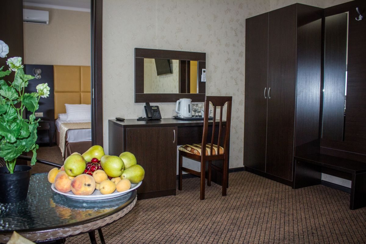 В Дивноморске впервые, нашли данный отель через поисковик по отзывам. Отель находится в пяти минутах от моря, красивый, со всем необходимым для полноценного отдыха, имеется два теплых бассейна, детская площадка, магальная зона, на первом этаже имеется кулер с прохладной и теплой водой. Отдыхали с двумя маленькими детьми, которые целый день проводили у бассейна или на площадке, отдохнули и дети и взрослые. Питание завтрак. шведский стол, выбор богатый, не Турция конечно, но вкусно и сытно покушать можно, также за отдельную плату можно пообедать, столовая уютная, дае столовой назвать язык не поварачивается, интерьер как в кафе. В номерах имеется холодильник, чайник, кондиционер, короче все для комфортного отдыха. Имеется вай-фай, много полотенец, уборка производилась каждый день, постельное белье меняли раз в недею и без проблем могут поменять по вашей просьбе. Обслуживающий персонал данного отеля очень отзывчивый и приветливый. С чистым сердцем могу рекомендовать данный отель, если будем отдыхать в Дивноморском, то обязательно остановимся здесь.