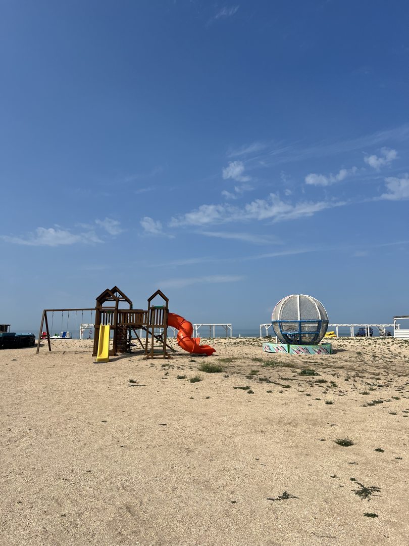На территории есть детская площадка и шезлонги для принятия солнечных ванн. База отдыха предлагает отдыхающим катание на надувном аттракционе «банан» и SUP-доске. Расстояние до ближайшего аэропорта — 104,1 км, а до железнодорожного вокзала «Ейск» — 40,4 км.