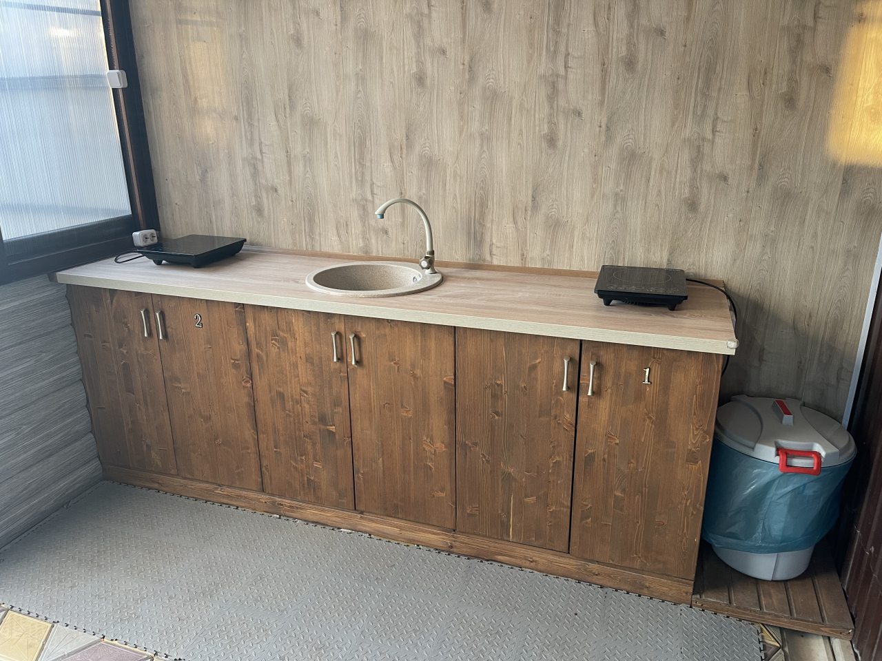 Для приготовления любимых напитков и блюд предусмотрена общая кухня-столовая. В наличии чайник, варочные панели, микроволновая печь и обеденные зоны. В номерах установлен индивидуальный холодильник.