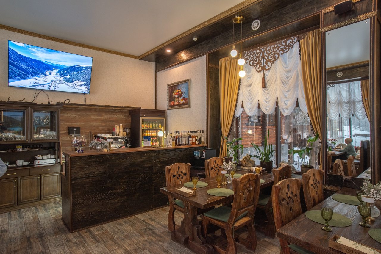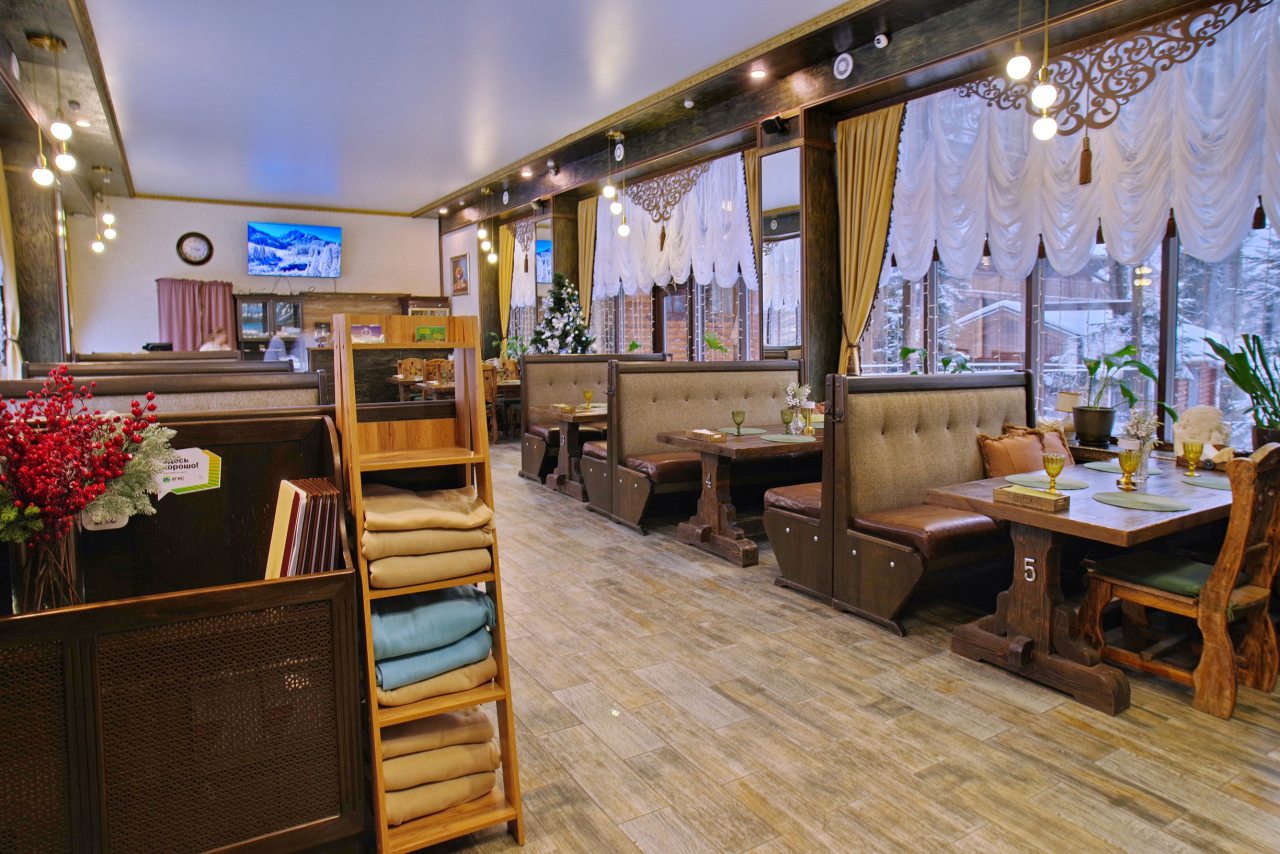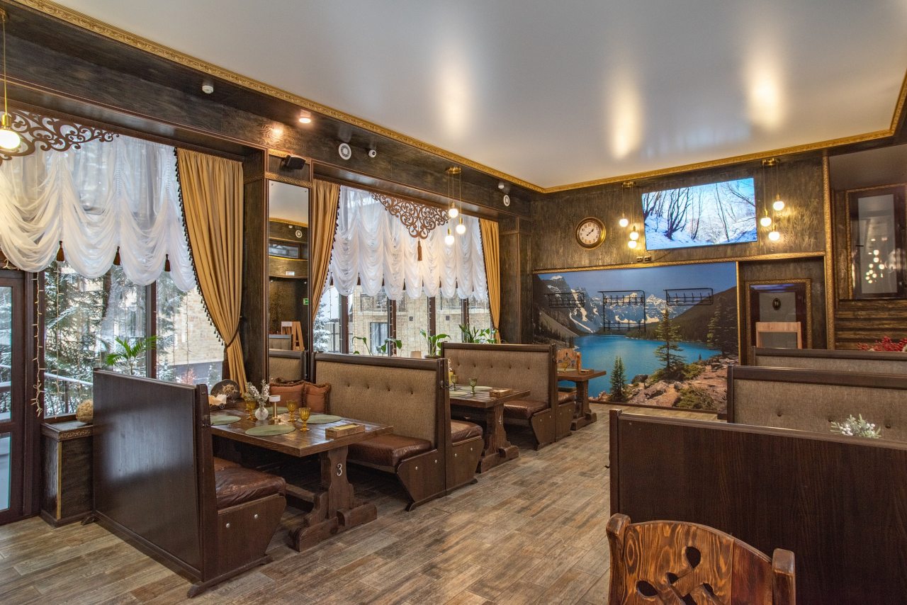 Сочетание внутреннего оформления и потрясающего панорамного вида из окон ресторана на гору, а также меню из блюд европейской, кавказской, кухни не оставит гостей равнодушными.