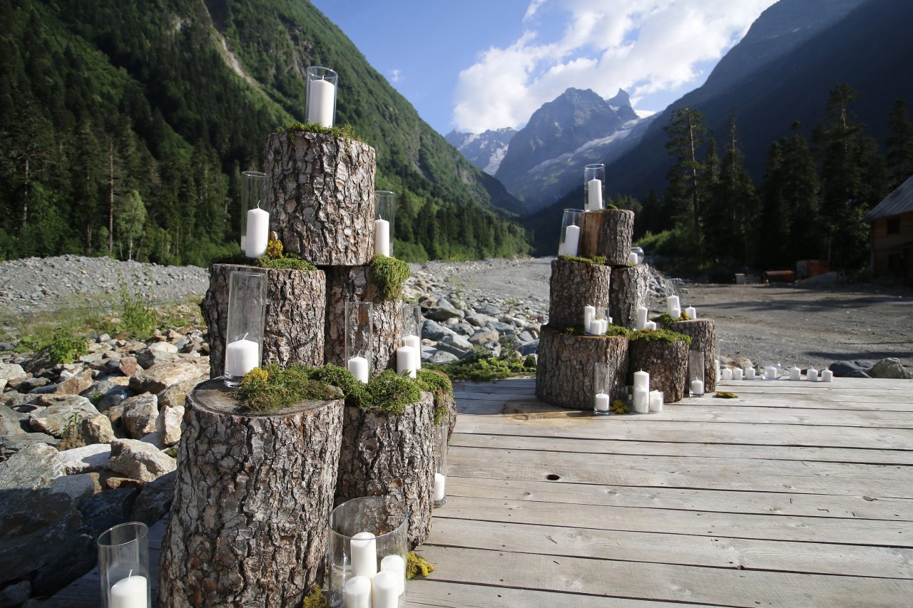 Рядом с заведением находятся Домбайская поляна, водопад и ущелье. Неподалеку, всего в 5 минутах есть канатная дорога.