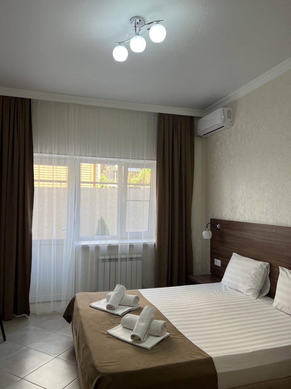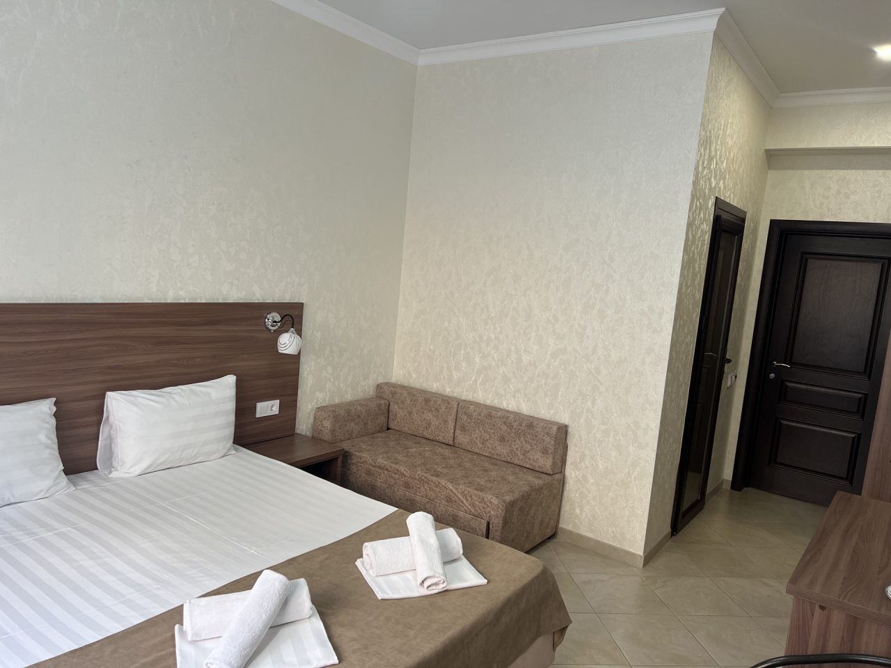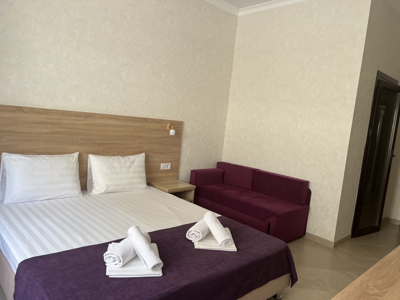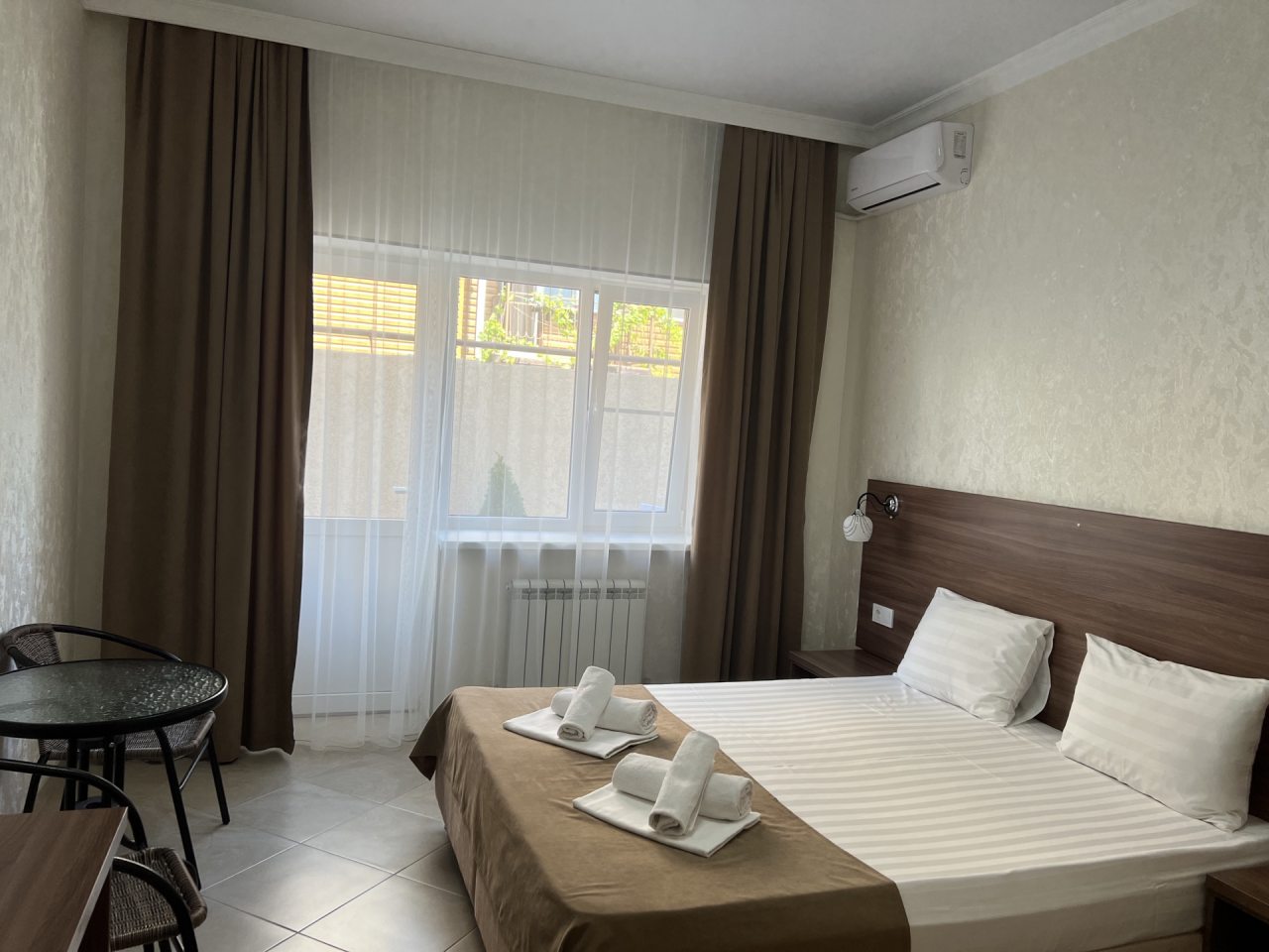 Проживание в отеле понравилось. Отель новый, ремонт выполнен добротно. Номер светлый, чистый. На территории есть бассейн с подогревом, для меня это было очень важно так как отдыхала в начале мая, море еще холодное. Отель находится недалеко от автовокзала. Встретили нас очень приветливо, приехали мы рано утром, наш номер был ещё занят. Предоставили другой номер где мы отдохнули с дороги, а позже заселили в наш забронированный номер. Проживание в отеле без питания, но рядом есть столовые и магазины. Отель расположен возле трассы, но меня это не напрягает. Впечатления очень положительные! Всем рекомендую.