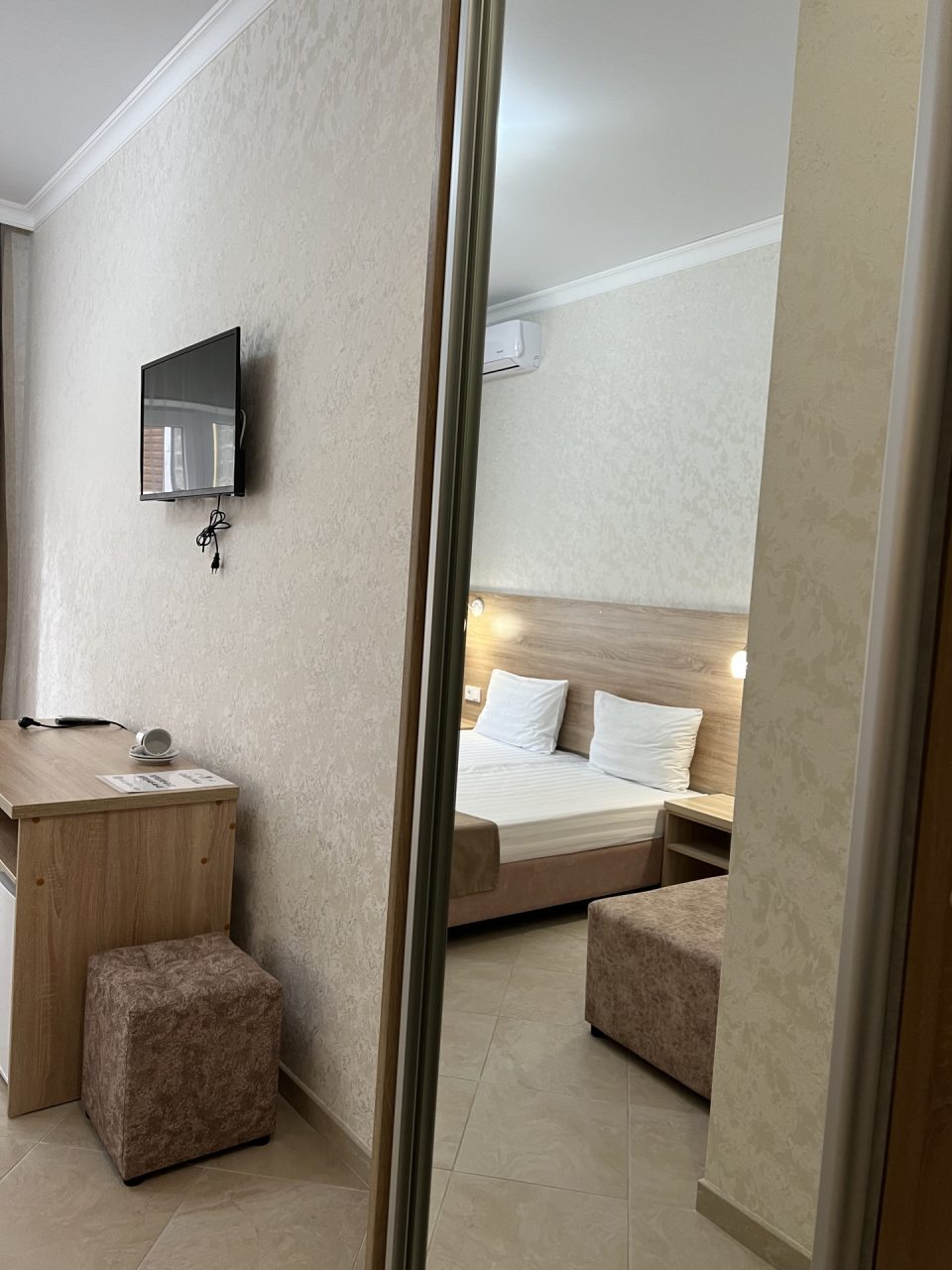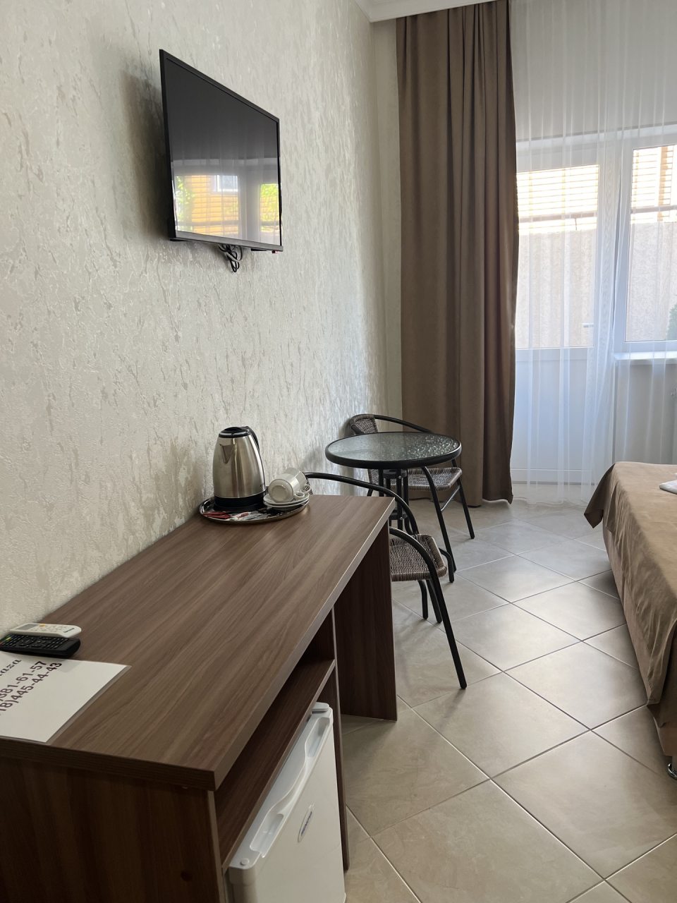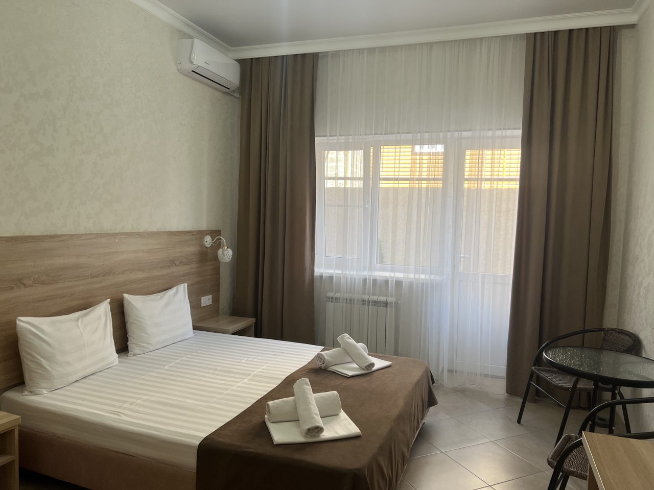 Проживание в отеле понравилось. Отель новый, ремонт выполнен добротно. Номер светлый, чистый. На территории есть бассейн с подогревом, для меня это было очень важно так как отдыхала в начале мая, море еще холодное. Отель находится недалеко от автовокзала. Встретили нас очень приветливо, приехали мы рано утром, наш номер был ещё занят. Предоставили другой номер где мы отдохнули с дороги, а позже заселили в наш забронированный номер. Проживание в отеле без питания, но рядом есть столовые и магазины. Отель расположен возле трассы, но меня это не напрягает. Впечатления очень положительные! Всем рекомендую.