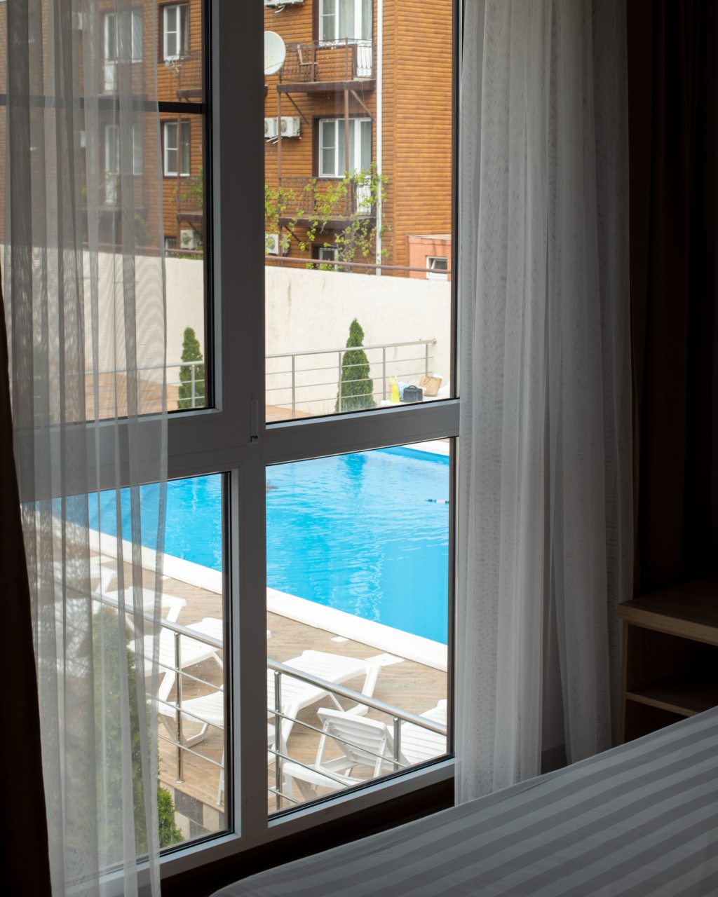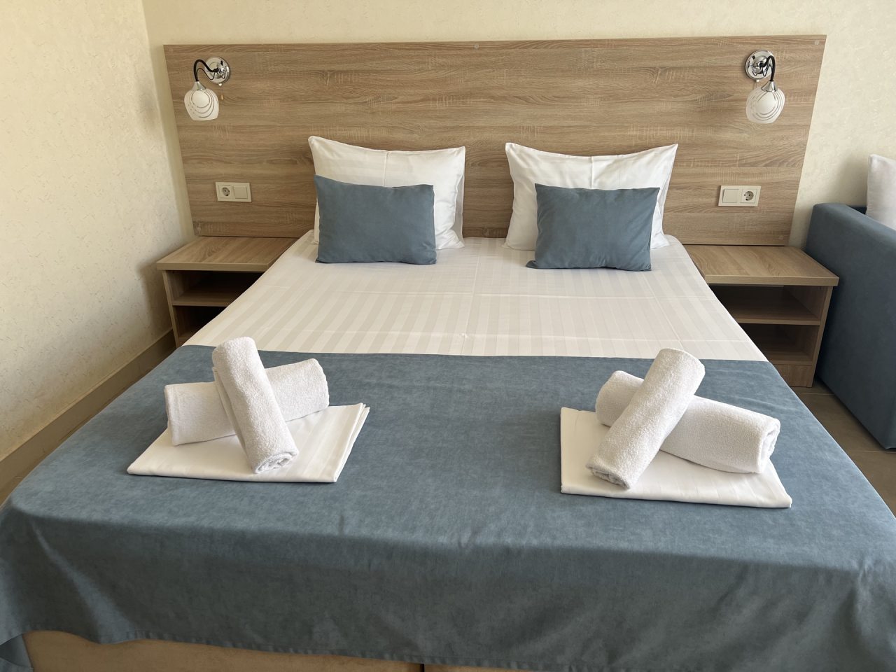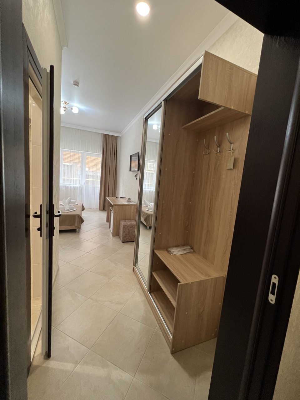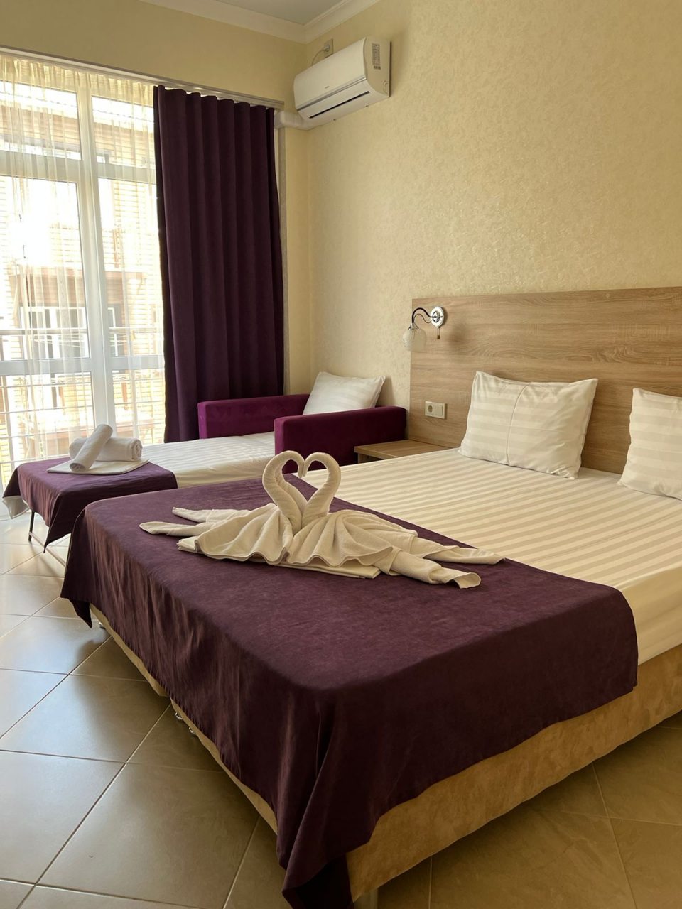 Проживание в отеле понравилось. Отель новый, ремонт выполнен добротно. Номер светлый, чистый. На территории есть бассейн с подогревом, для меня это было очень важно так как отдыхала в начале мая, море еще холодное. Отель находится недалеко от автовокзала. Встретили нас очень приветливо, приехали мы рано утром, наш номер был ещё занят. Предоставили другой номер где мы отдохнули с дороги, а позже заселили в наш забронированный номер. Проживание в отеле без питания, но рядом есть столовые и магазины. Отель расположен возле трассы, но меня это не напрягает. Впечатления очень положительные! Всем рекомендую.