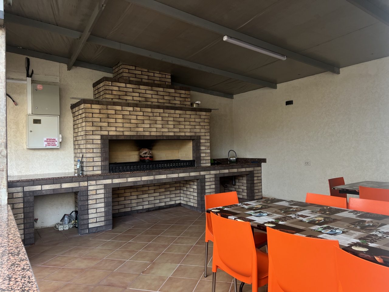 Площадка с общей кухней предоставляет возможность для самостоятельного приготовления еды. На территории также имеются мангальная и барбекю зоны, которыми можно воспользоваться за дополнительную плату.