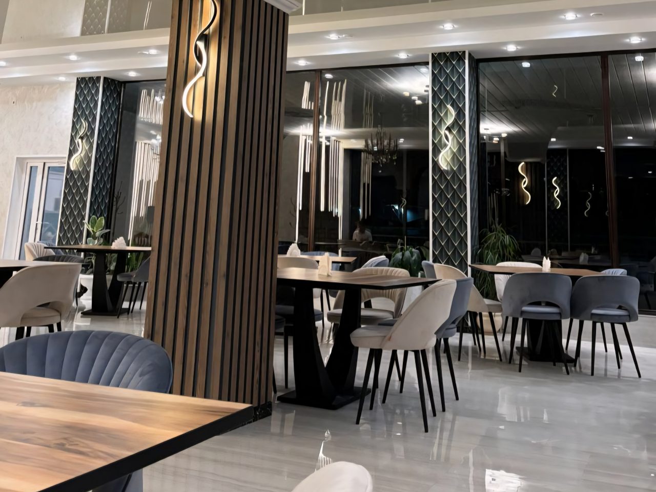 Очень вкусно готовят , красиво, красивый вид у окна , персонал доброжелательный и вежливый рекомендую