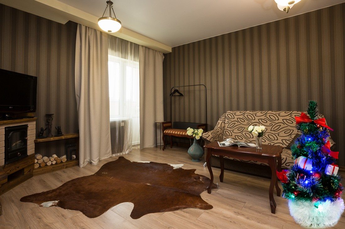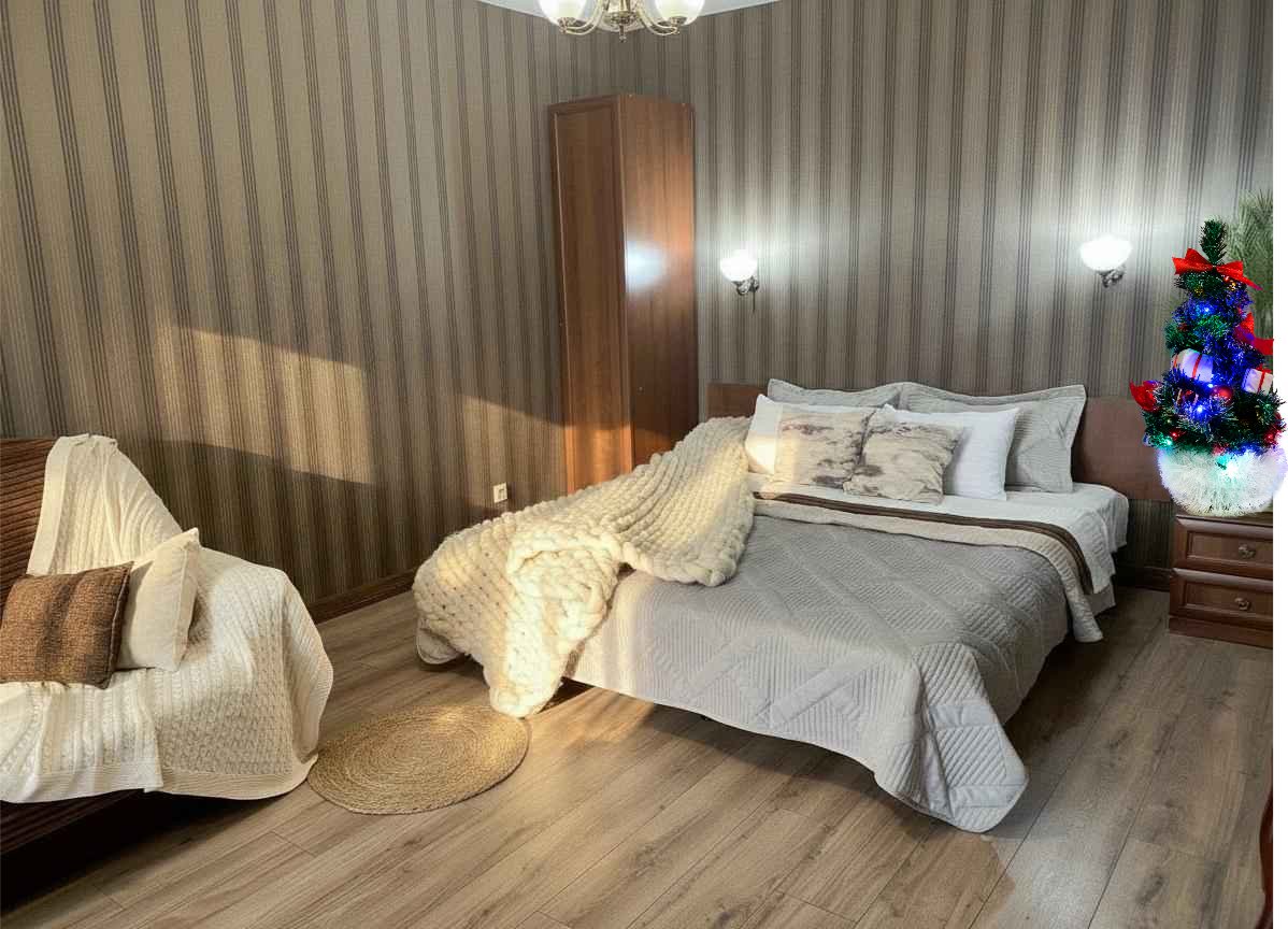 Номерной фонд располагает категориями различной вместимости. В комнатах уютная атмосфера и комфортабельная мебель, есть всё нужное для проживания: ЖК-телевизор с кабельным телевидением, бесплатный Wi-Fi, фен. Есть выход на балкон, откуда открывается вид на город. В собственных ванных комнатах установлен стандартный набор сантехники и стиральная машина.