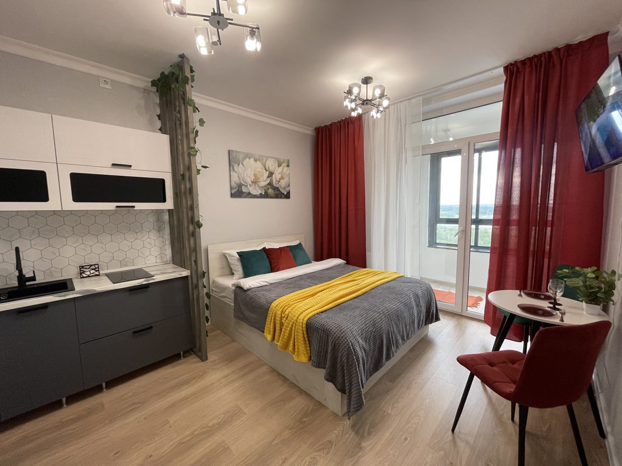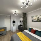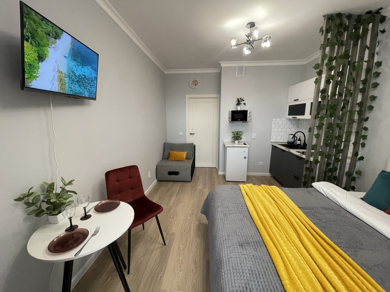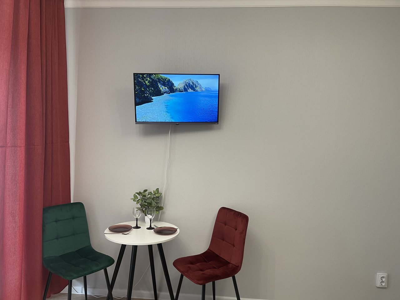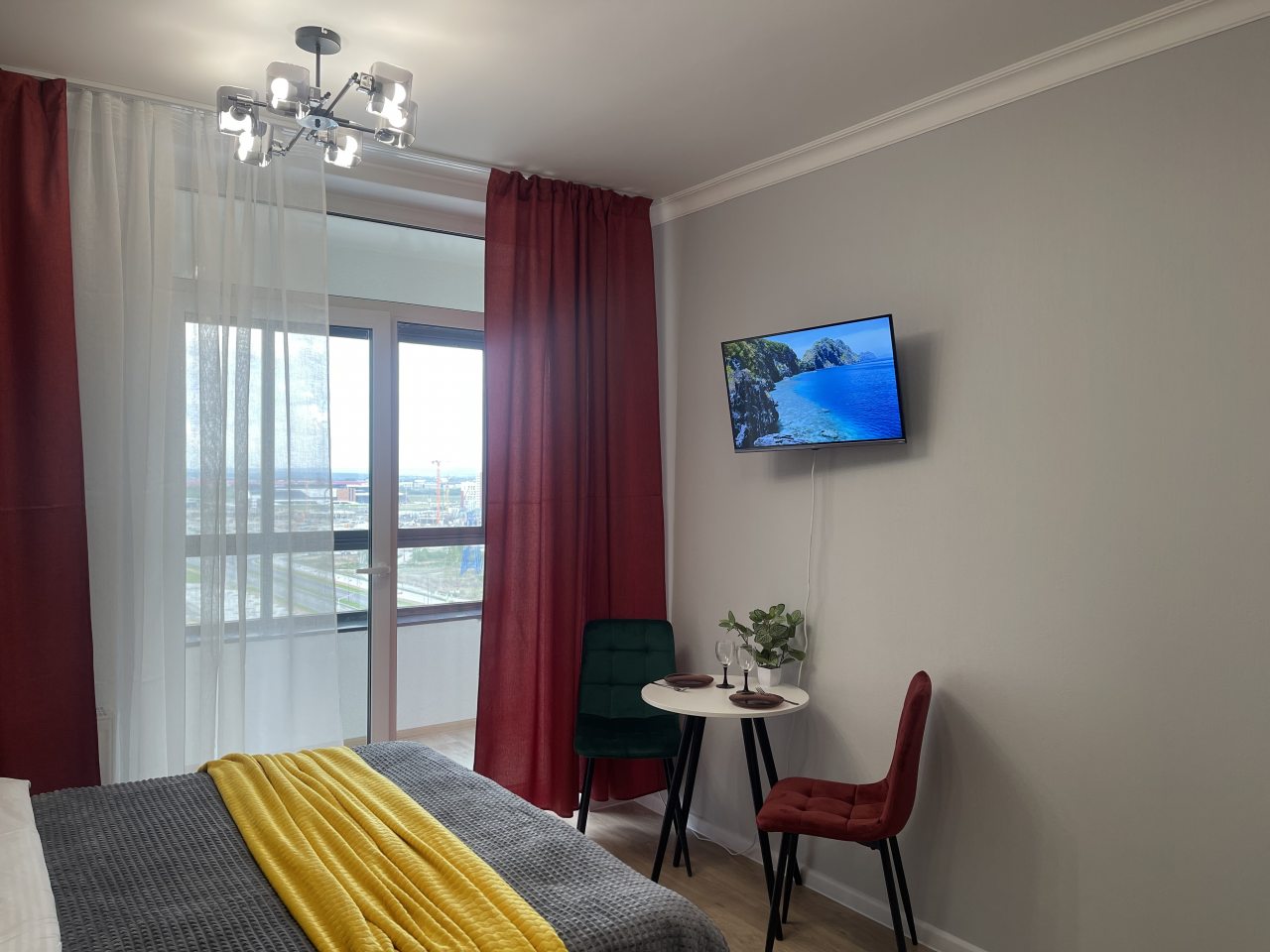 Для гостей предлагается разместиться в уютных апартаментах оборудованных удобной двуспальной кроватью, шкафом, телевизором, кухонной зоной, wi-fi, собственной ванной и лоджией. Санузел оснащен современной сантехникой и средствами личной гигиены.