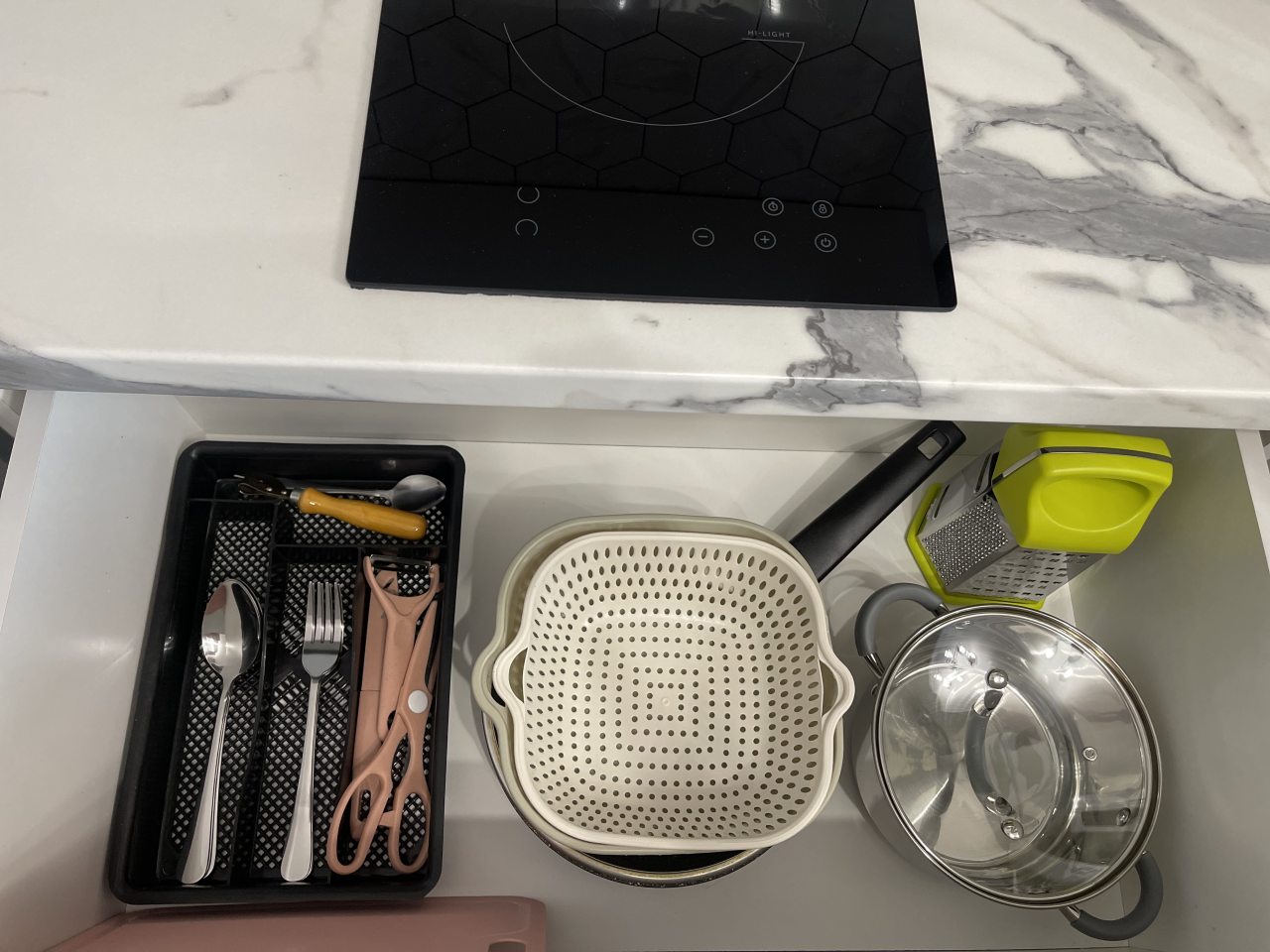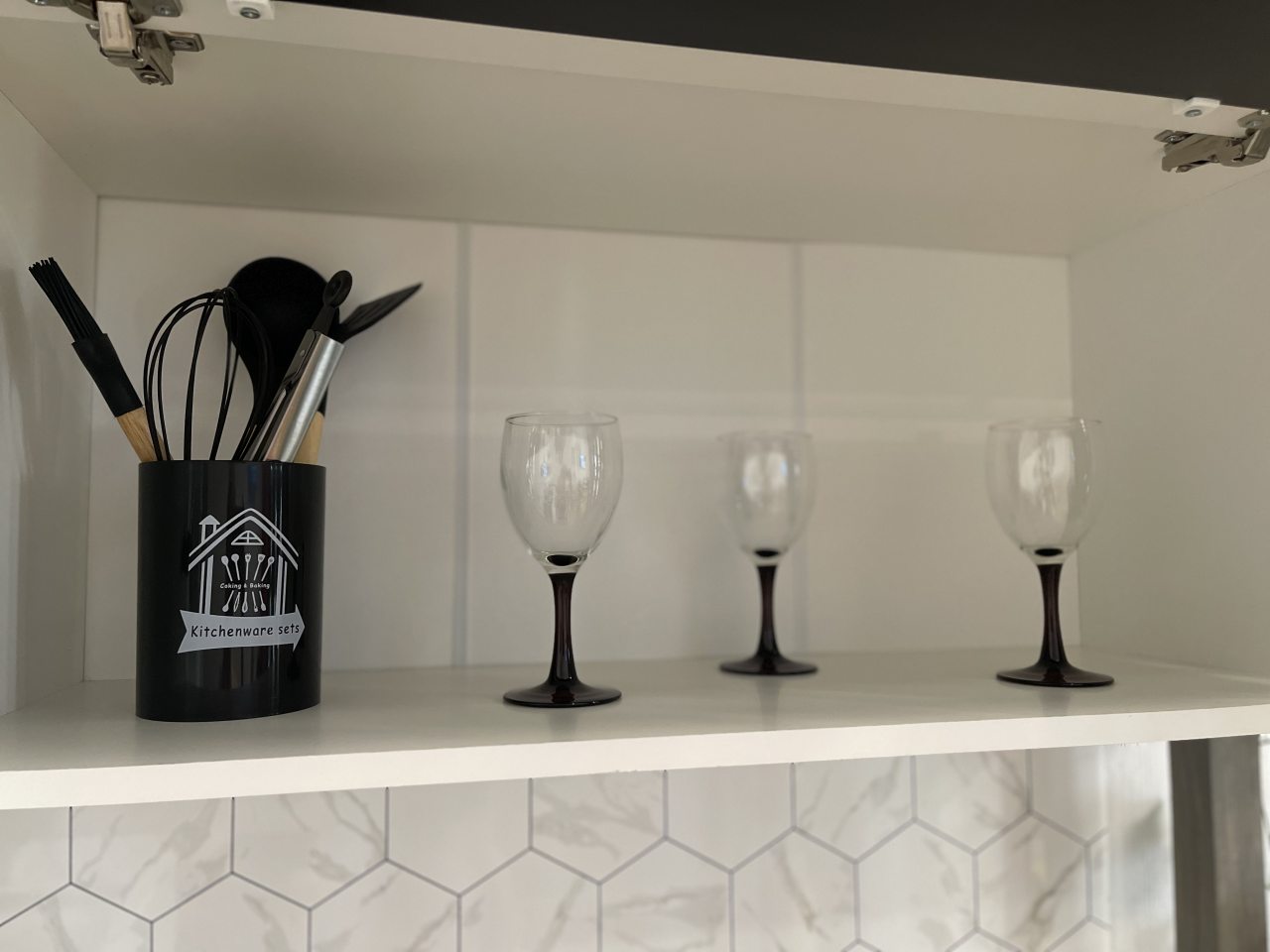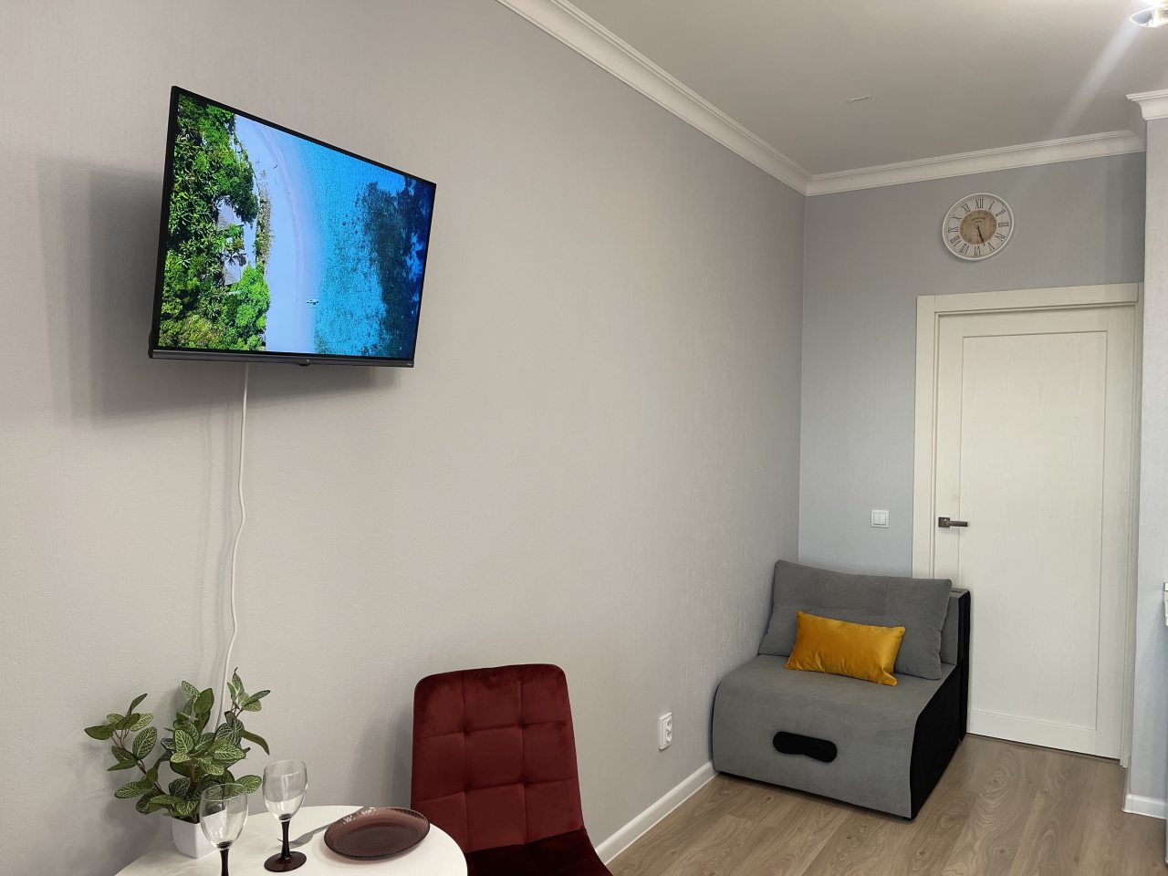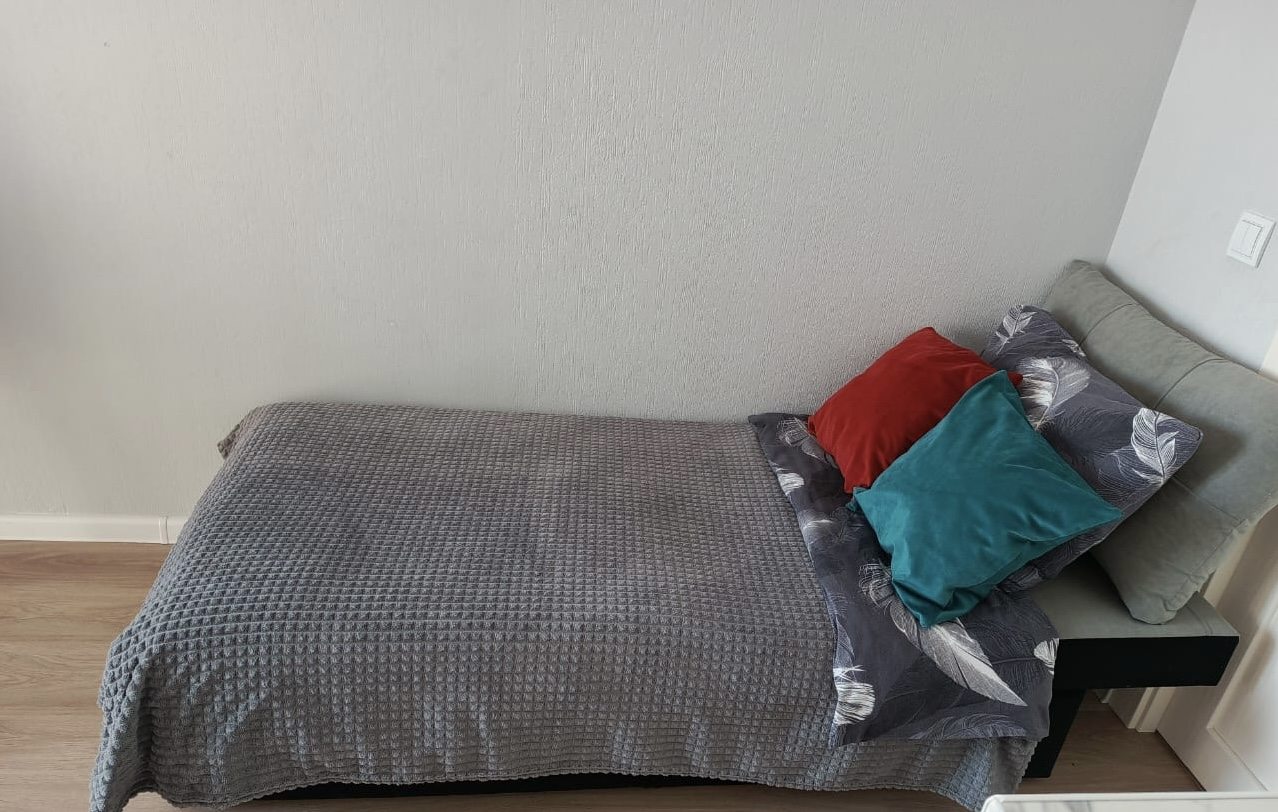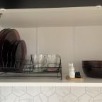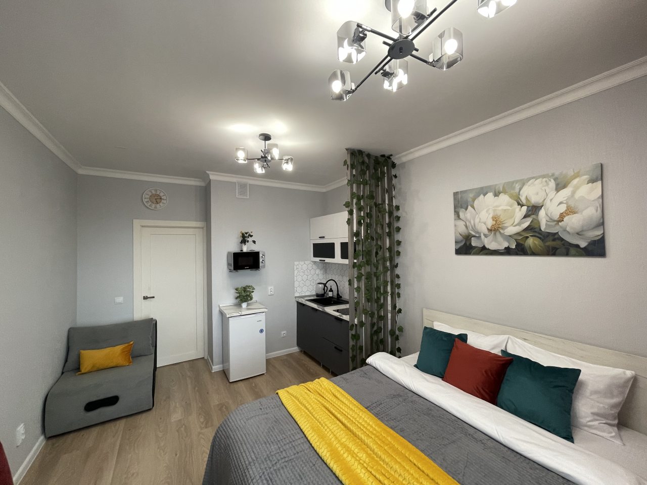 Кухня имеет гарнитур, электрочайник, варочную панель, холодильник, микроволновую печь. В доступности продуктовые магазины и кофейня.