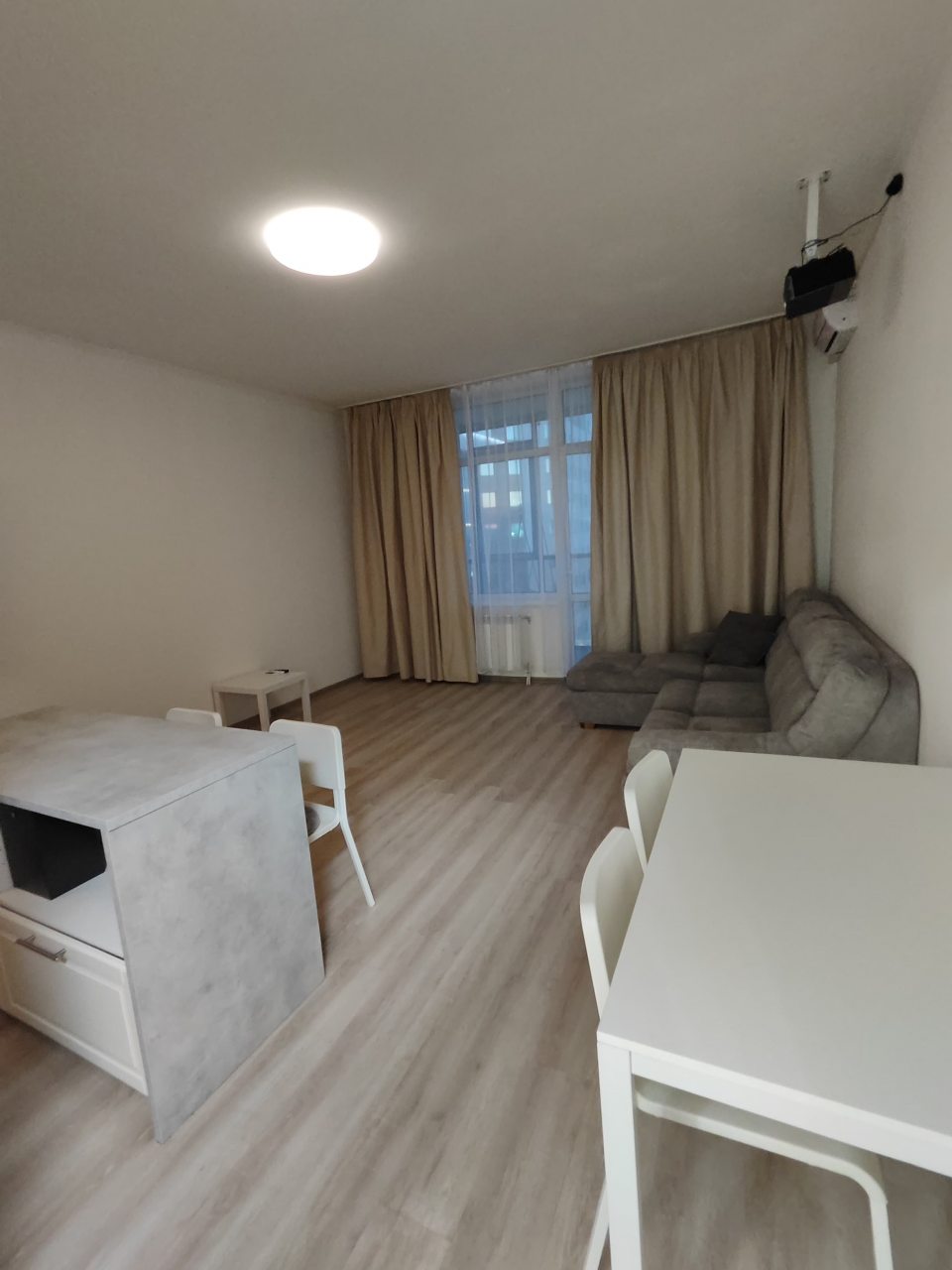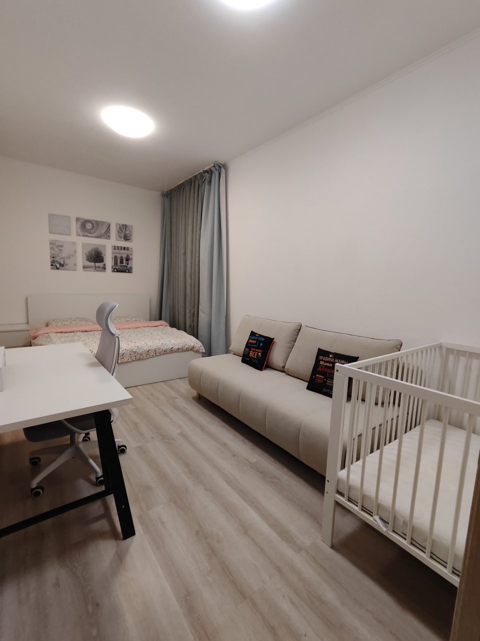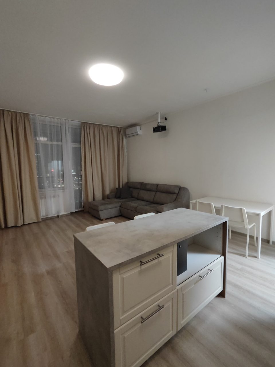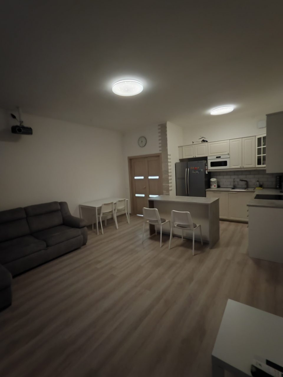 Внутри вас ожидает удобная кровать, проектор, несколько мягких диванов, письменный стол и мебель для хранения вещей, а также санузел с необходимой сантехникой.
