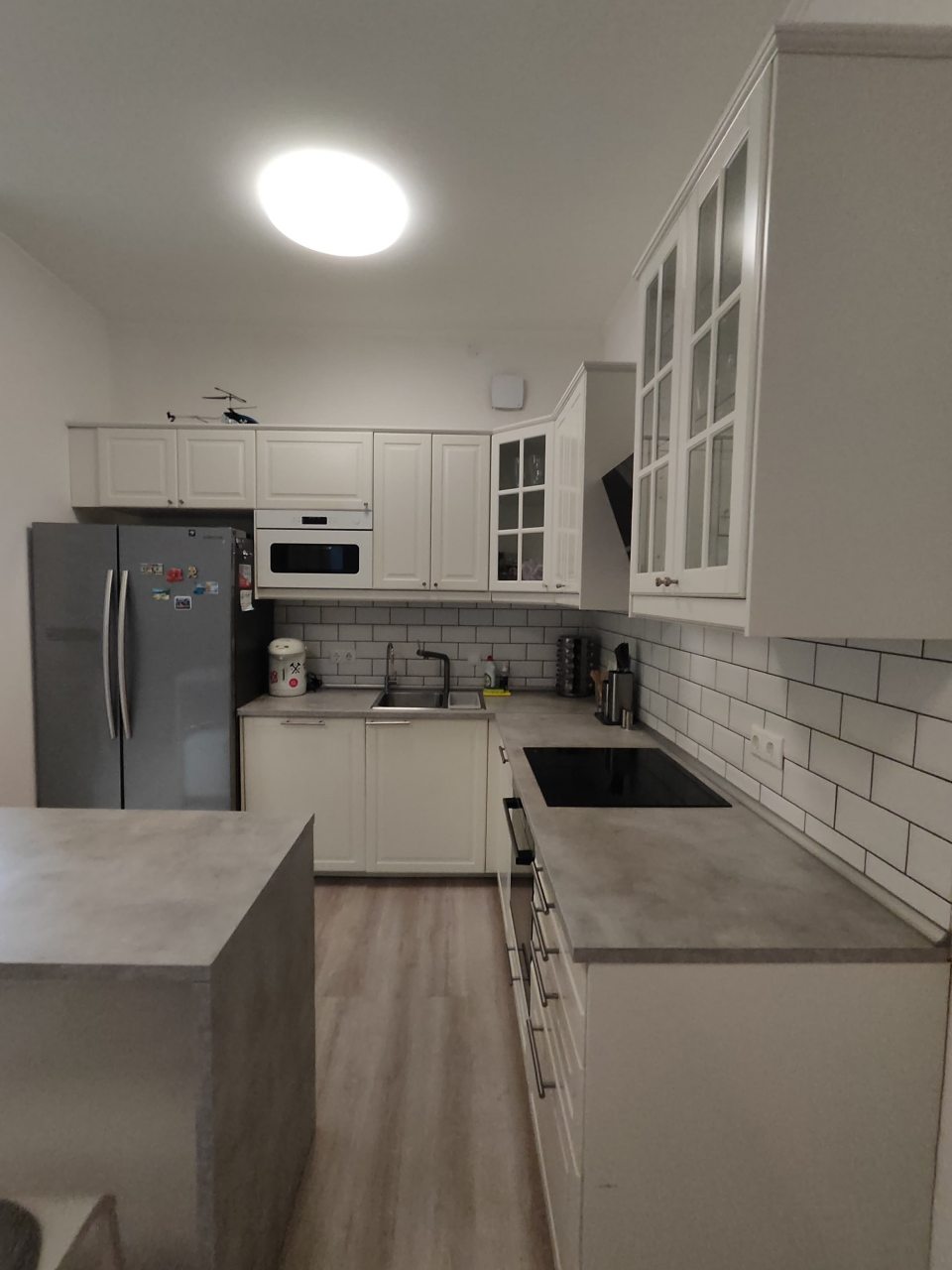 Кухня укомплектована чайником, варочной панелью, СВЧ-печью, холодильником, духовым шкафом, вытяжкой, красивой обеденной зоной, чтобы вы в любой момент могли насладиться любимыми напитками и блюдами.