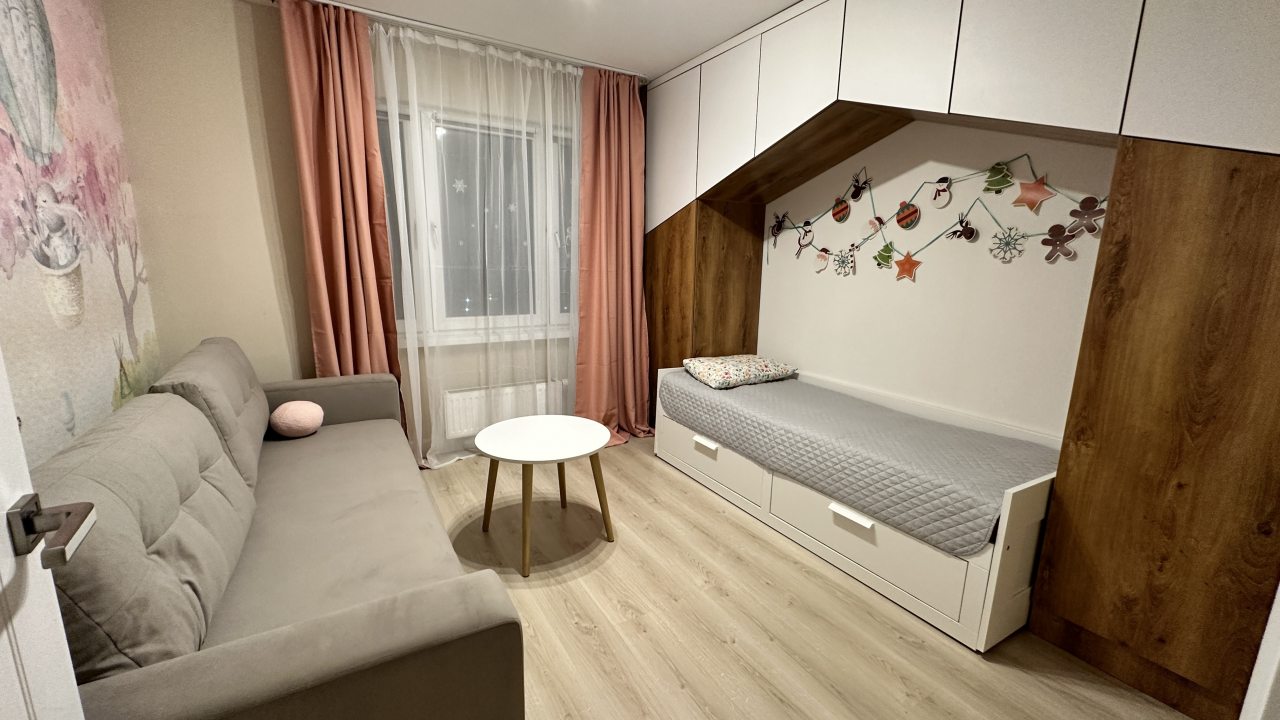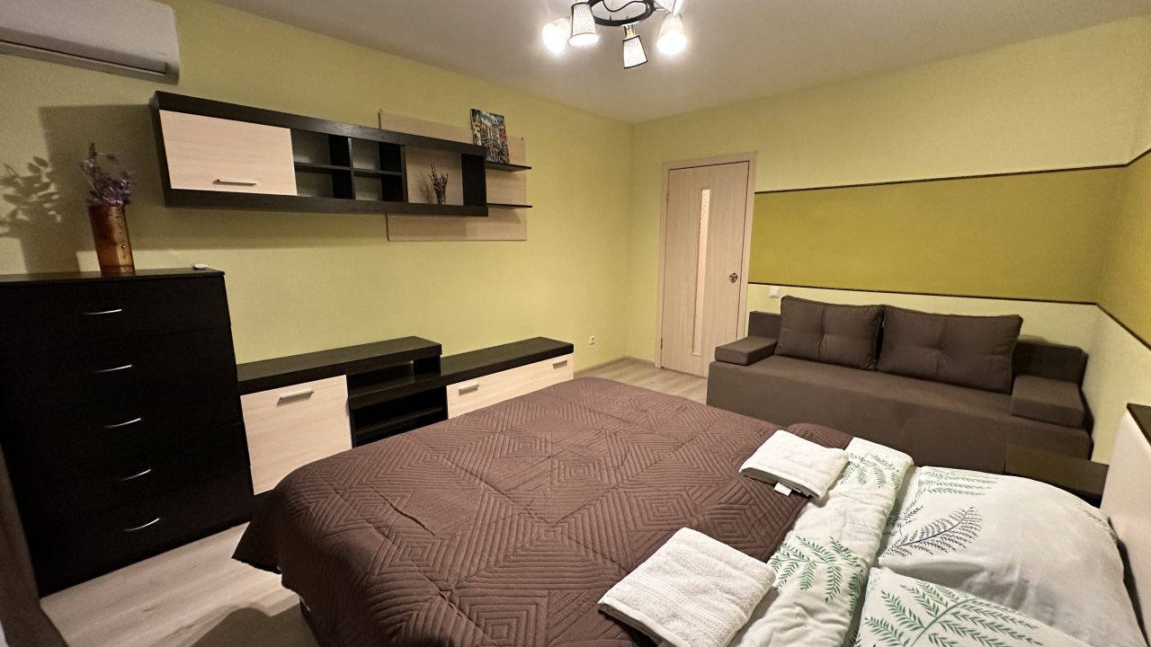 Внутри вас ожидает удобная двуспальная кровать, затемненные шторы, мягкие диваны с телевизором, комод, вместительные шкафы, стиральная машина, а также ванная комната с необходимой сантехникой.