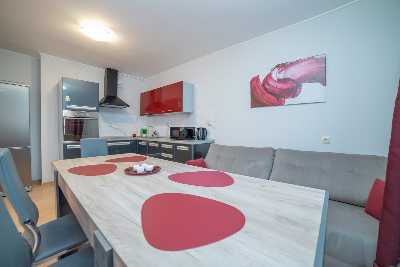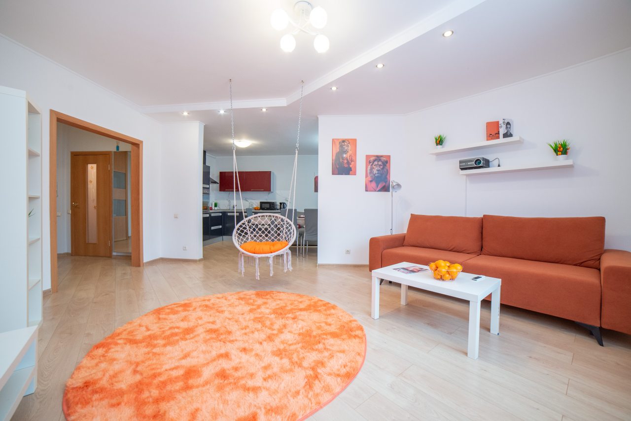 На площади 100 квадратных метров вас ожидает три спальни с удобными кроватями и диванами, кинопроектор с качелями, вместительные шкафы, телевидение, а также ванная комната с необходимой сантехникой.