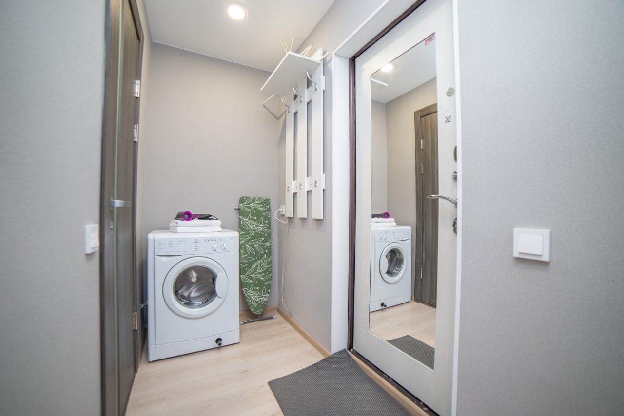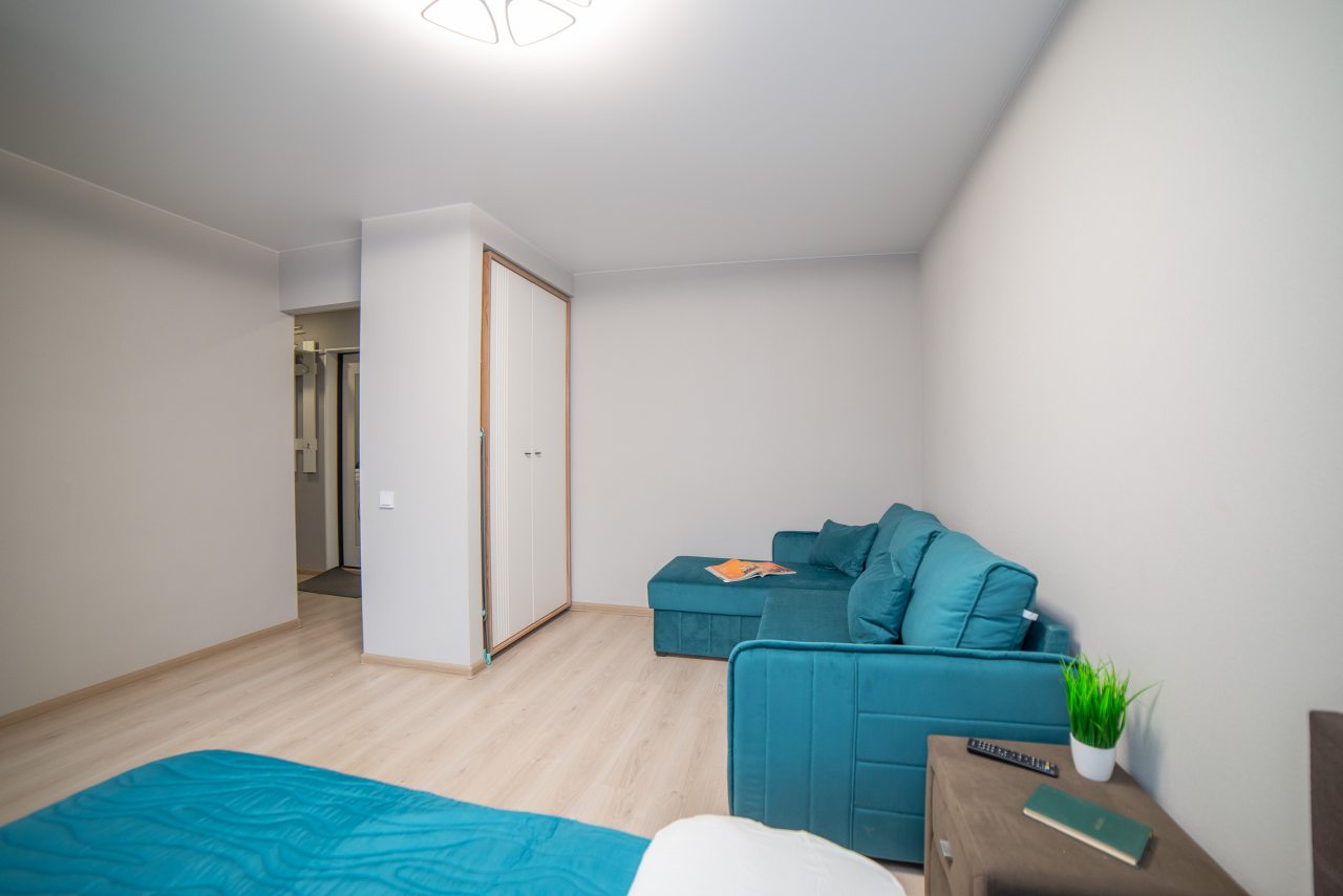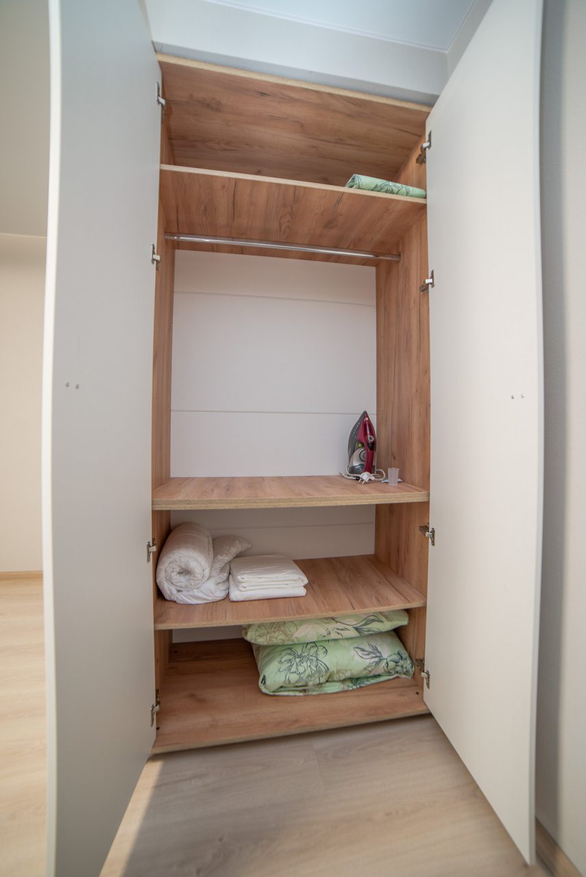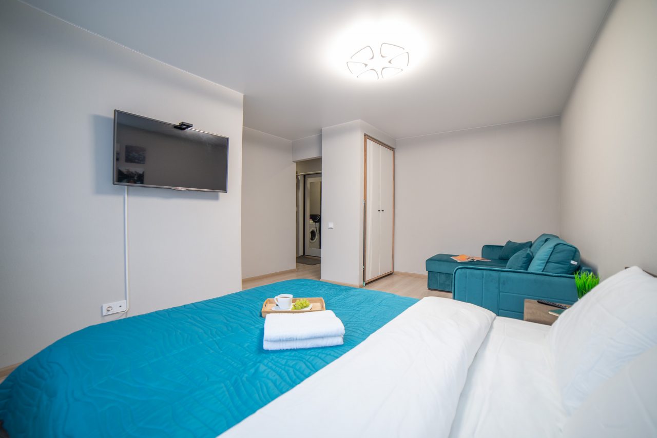 Внутри вас ожидает удобная двуспальная кровать, затемненные шторы, мягкий диван, телевизор, комод, вместительный шкаф, гладильные принадлежности, стиральная машина, а также ванная комната с необходимой сантехникой.