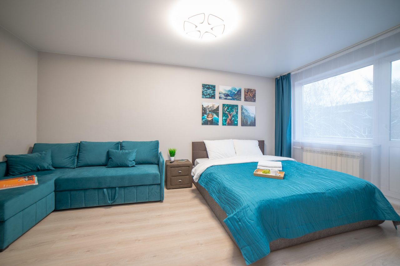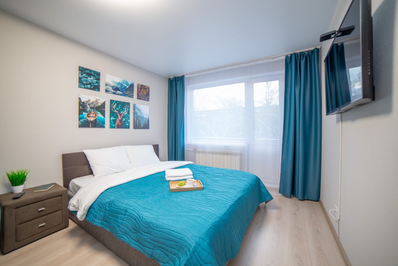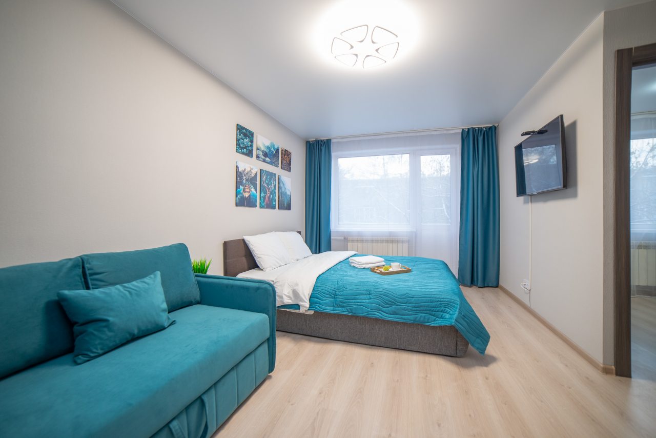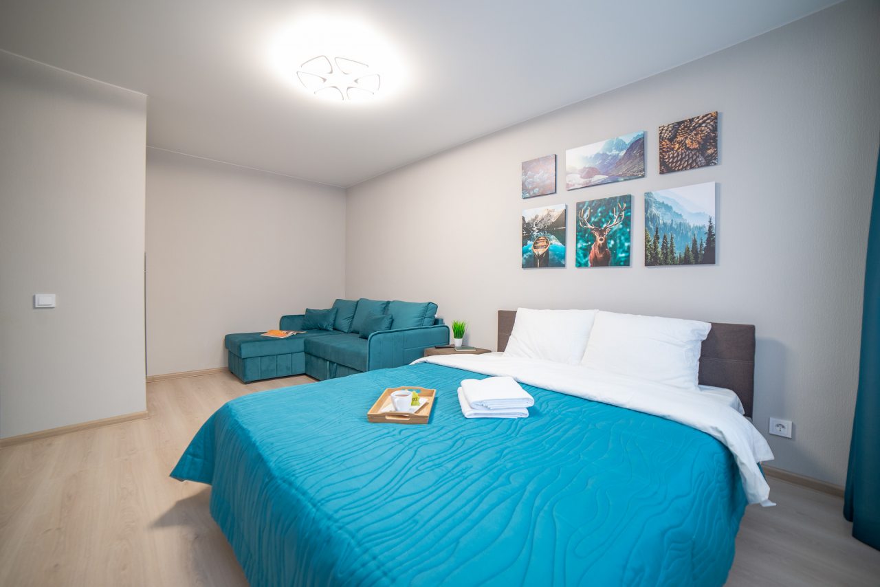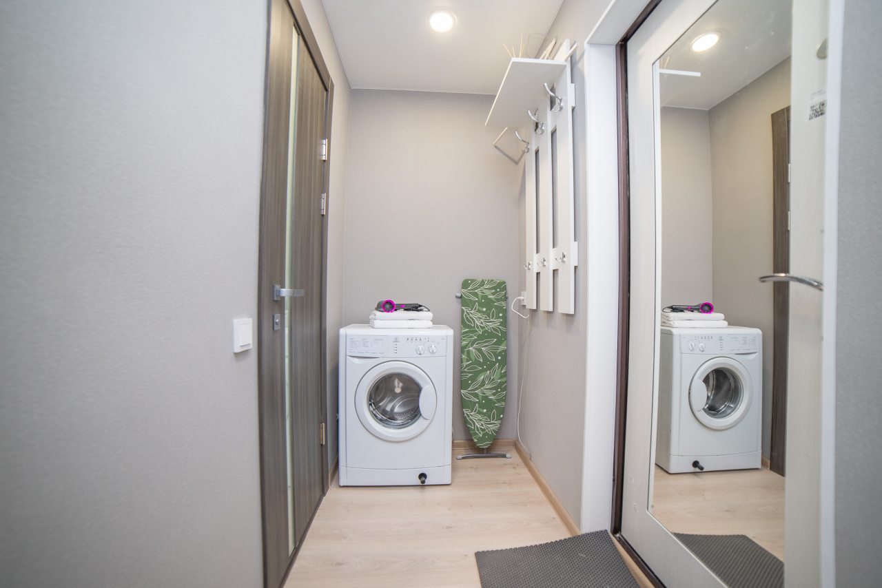 Внутри вас ожидает удобная двуспальная кровать, затемненные шторы, мягкий диван, телевизор, комод, вместительный шкаф, гладильные принадлежности, стиральная машина, а также ванная комната с необходимой сантехникой.