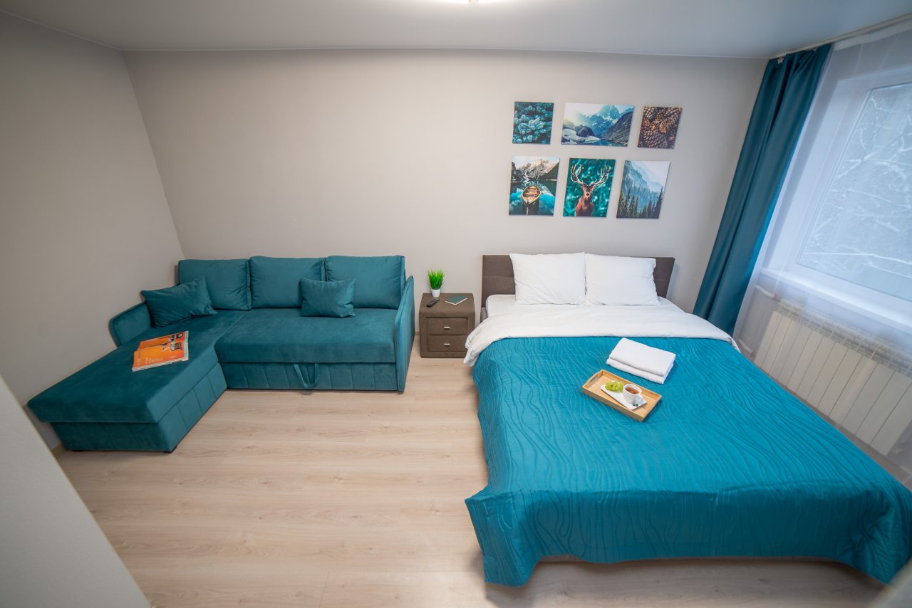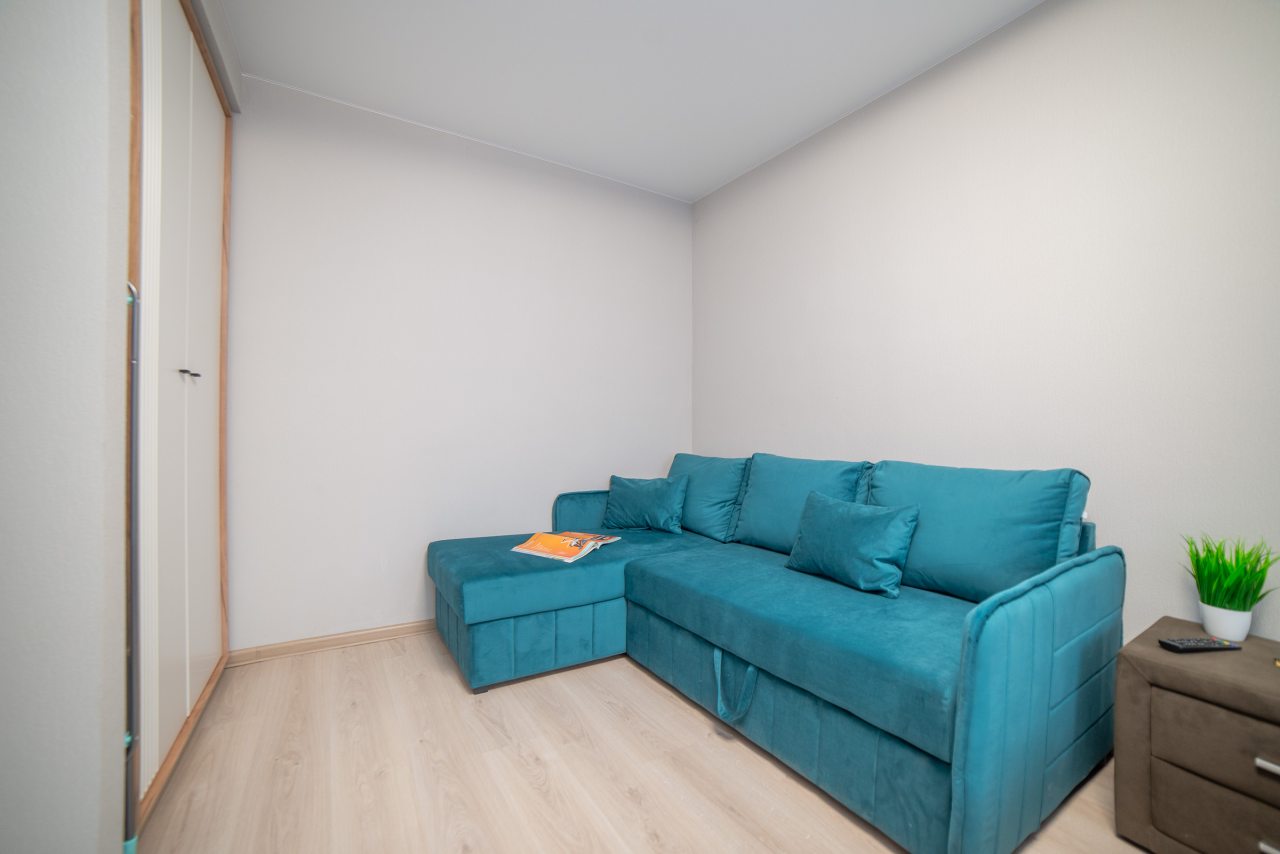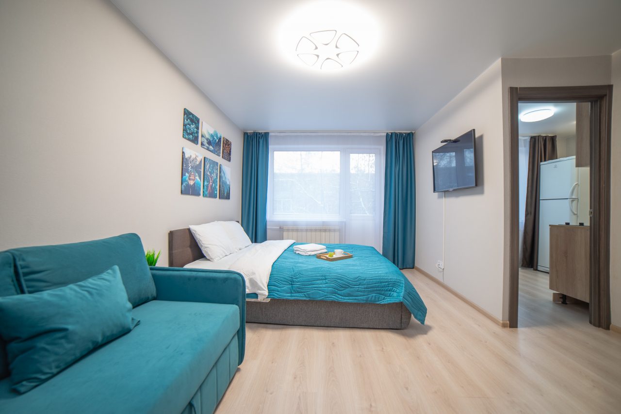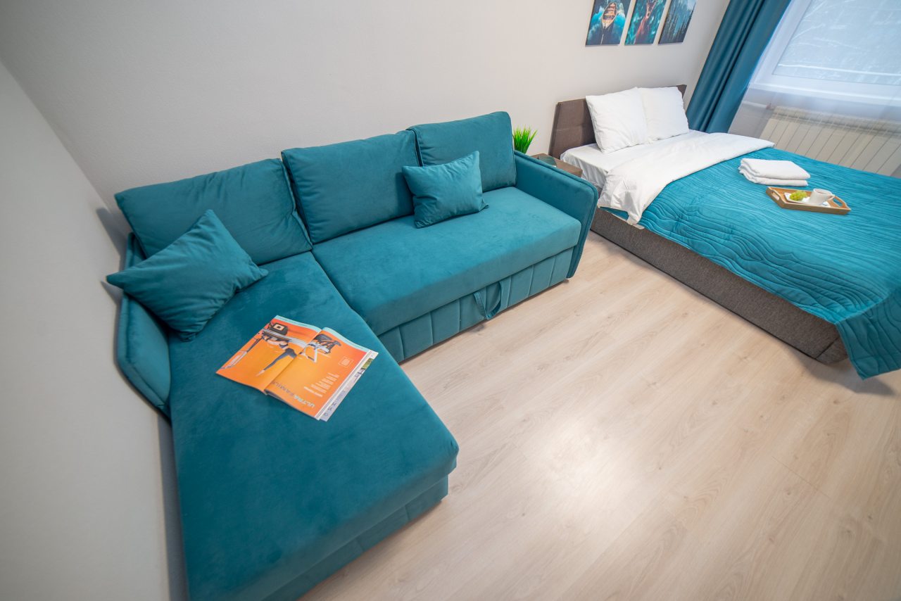Внутри вас ожидает удобная двуспальная кровать, затемненные шторы, мягкий диван, телевизор, комод, вместительный шкаф, гладильные принадлежности, стиральная машина, а также ванная комната с необходимой сантехникой.