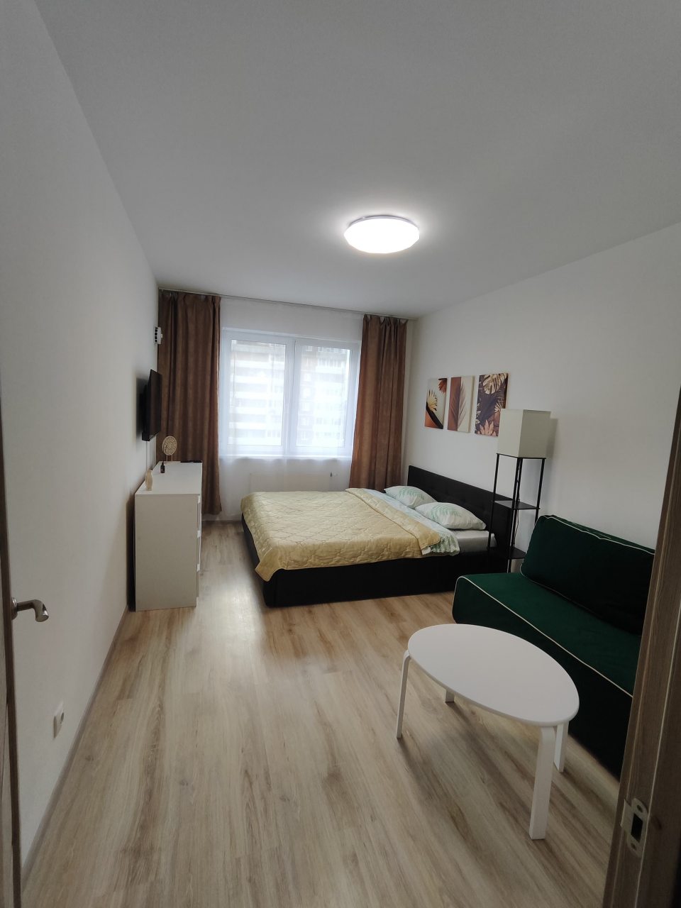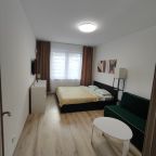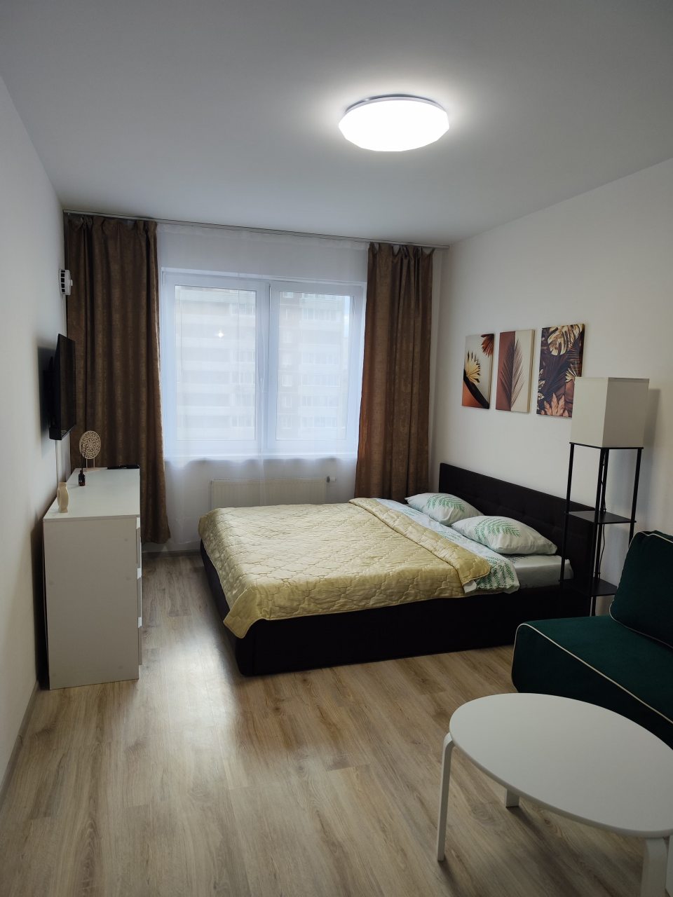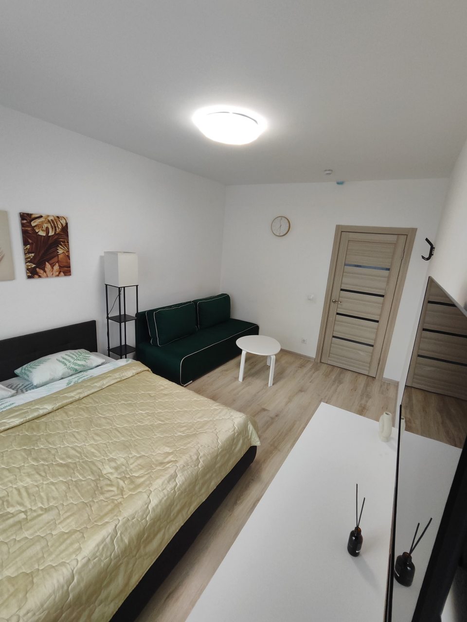 Внутри вас ожидает удобная двуспальная кровать с качественным матрасом, телевизор, комод, мягкие диваны, вместительный шкаф-купе с зеркалом в полный рост, а также полноценная ванна со стиральной машиной и необходимой сантехникой.