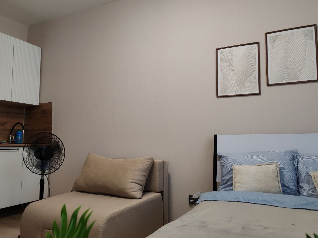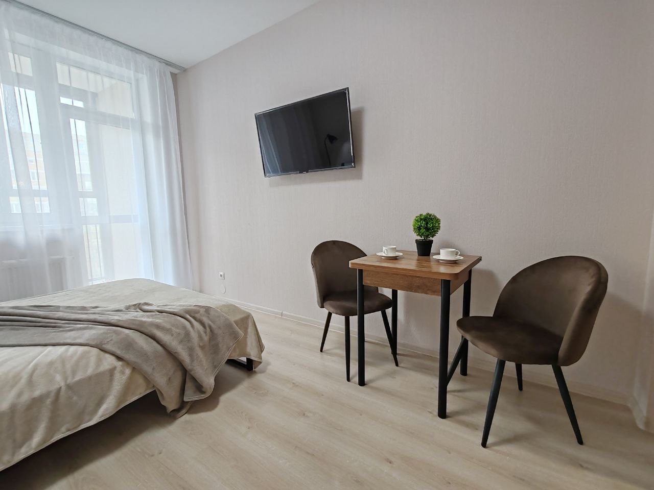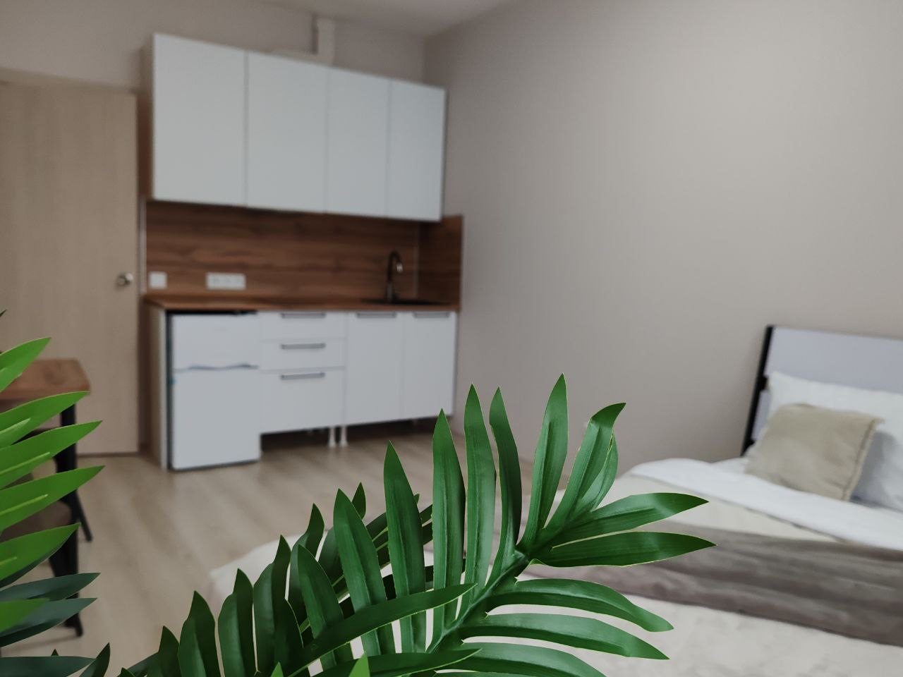 К размещению гостей предлагается студия, оборудованная удобными спальными местами, современной техникой, мебелью, ванной комнатой. Есть доступ к сети интернет.