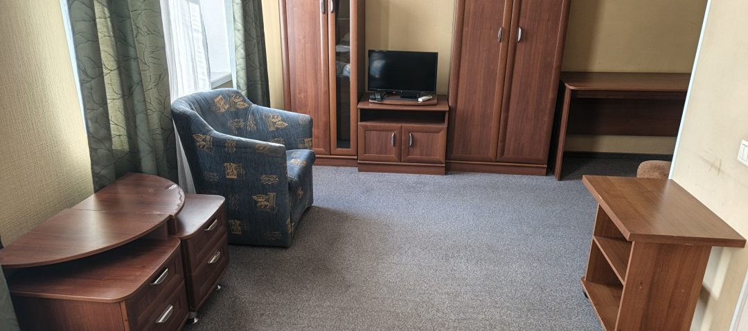 Понравилось расположение - в центре города, рядом прекрасный парк с фонтаном. Здание конечно нуждается в ремонте , не могут не понравиться большие холлы, просторные лестничные марши. В номере чисто.