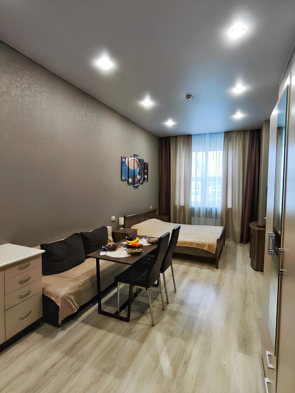 Отель отличный, стоимость также понравилась. Недалеко набережная для прогулок, Ельцин-центр. Гостиница в жилом доме на первом этаже. Номеров немного, чистота вполне на уровне. В общем доступе через администратора утюг, доска и даже кофемашина. В номере понравилась огромная мягкая кровать.