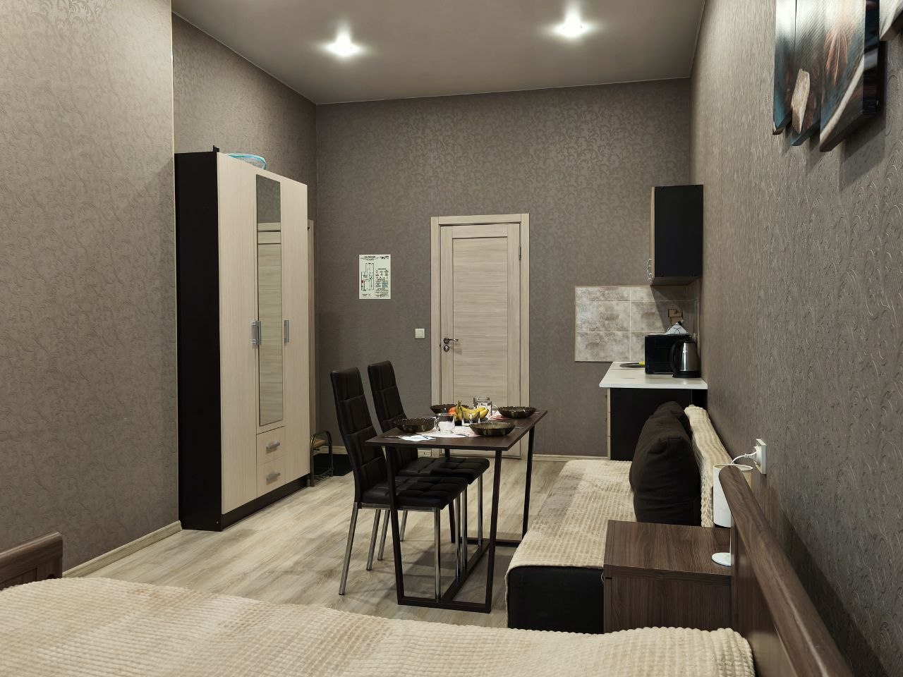 Интересное название и не менее интересное исполнение. Приветливый персонал создал ощущение, будто приехал в гости, а не в отель. Номер оформлен со вкусом, атмосфера располагает к отдыху. Район спокойный, по ночам тишина. Понравилась концепция — всё как-то символично и стильно. Приятно удивило качество постельного белья. На ресепшене всегда на связи.