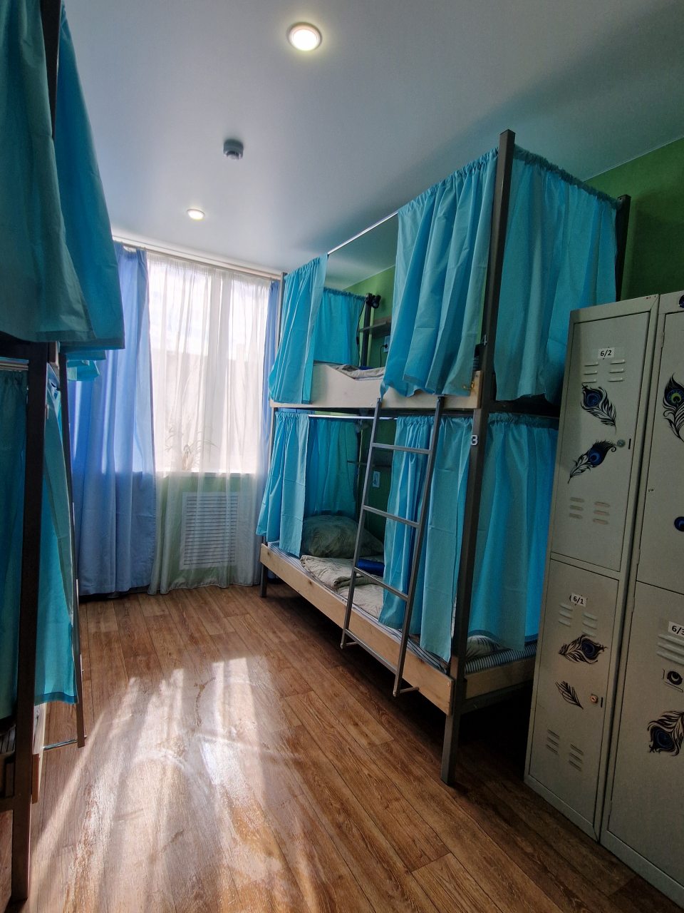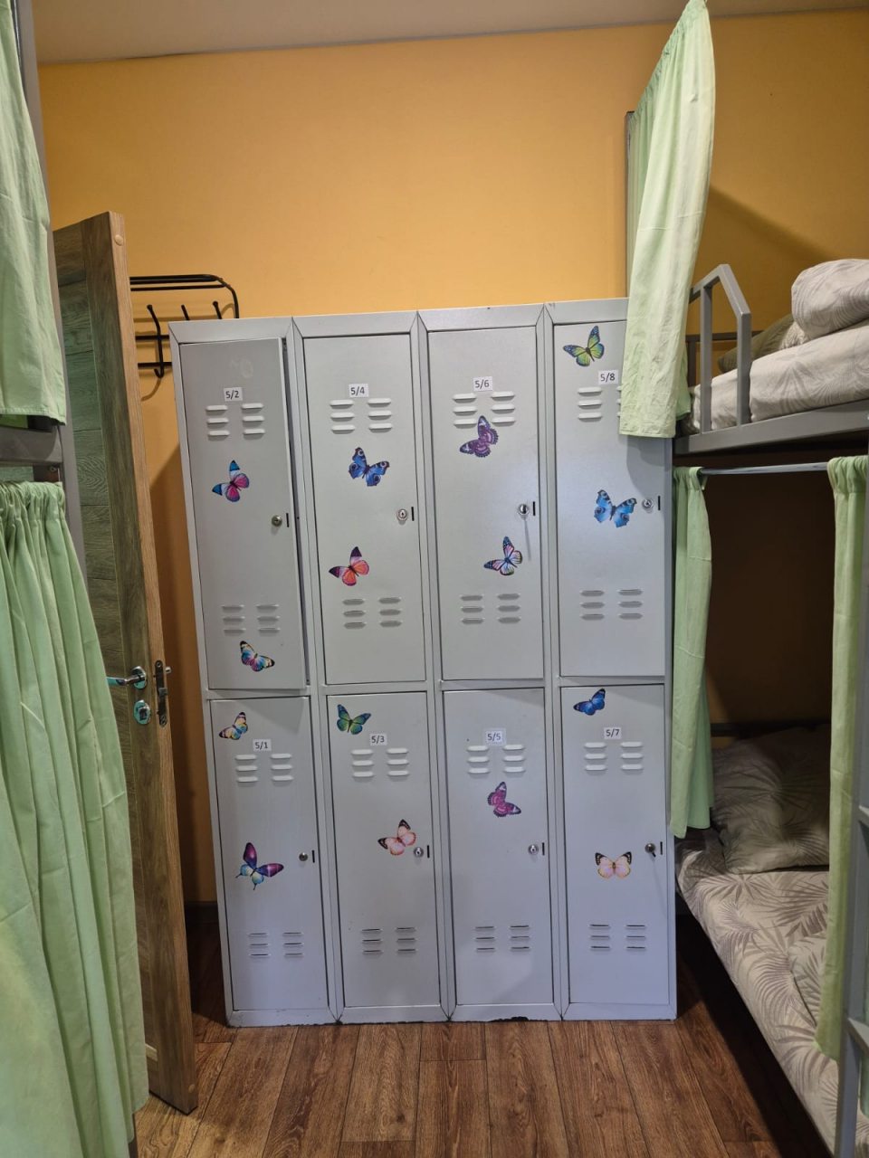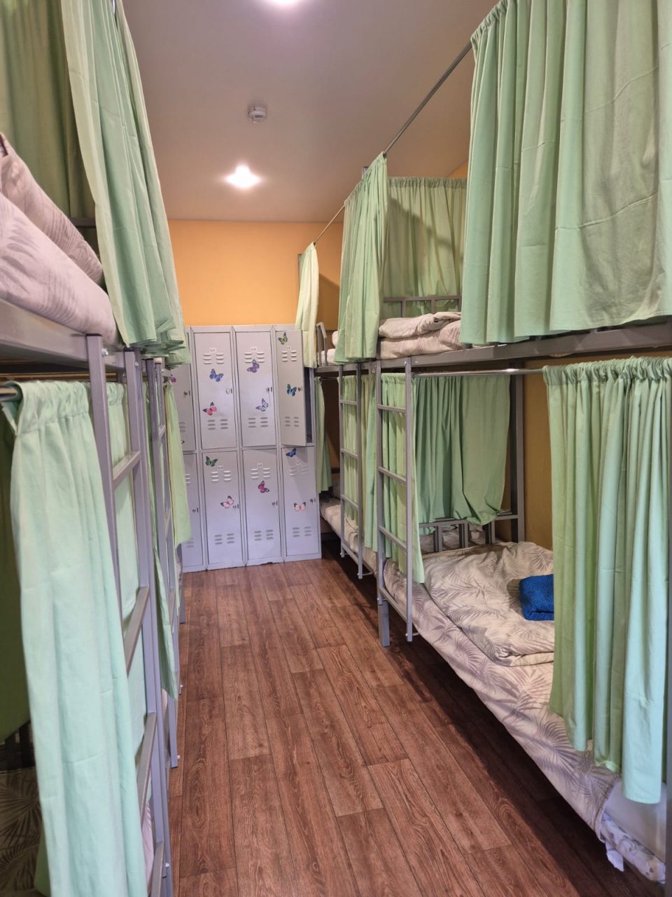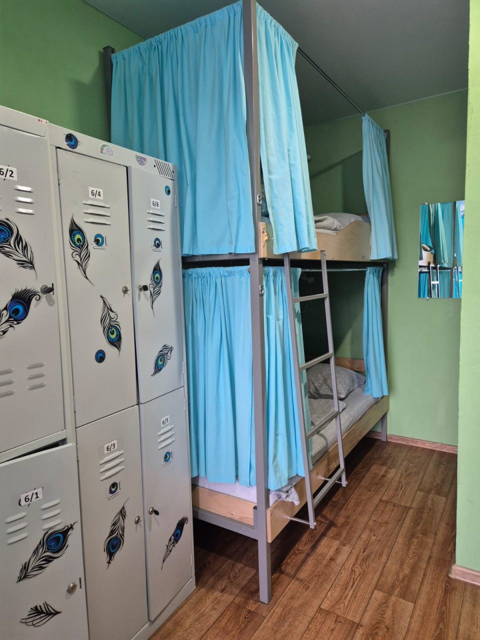 Хостел очень даже неплохой, в нем регулярно убирают, и постояльцы тоже стараются поддерживать условия для себя. Оформление приятное, стены в мятных тонах очень освежают пространство. Кухня общая, но очень большая, в ней достаточно столов, холодильников. Посуды много, бытовой техники. Душевая просторная, раковин достаточно. В номерах кровати, индивидуальные шкафчики, удобно.