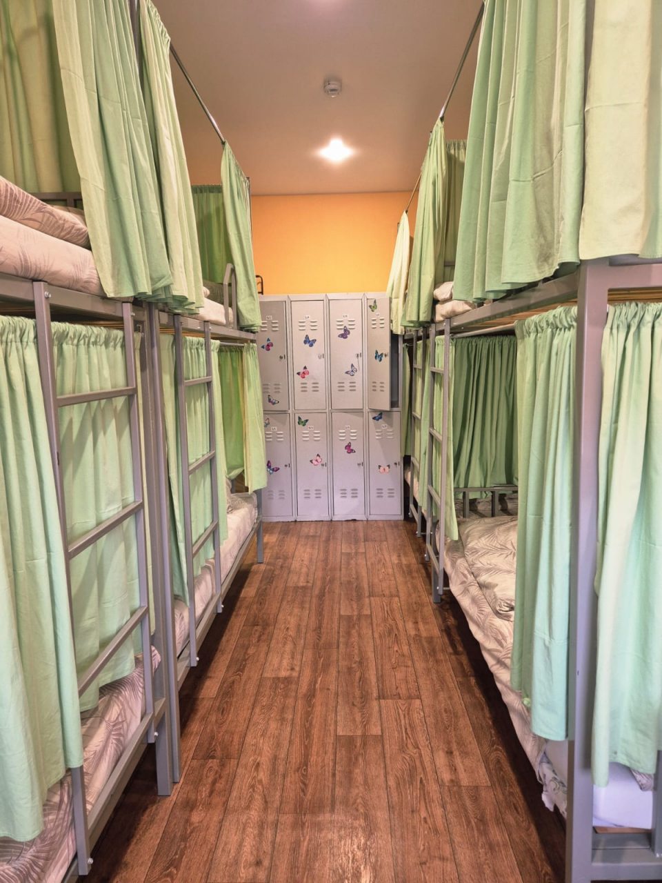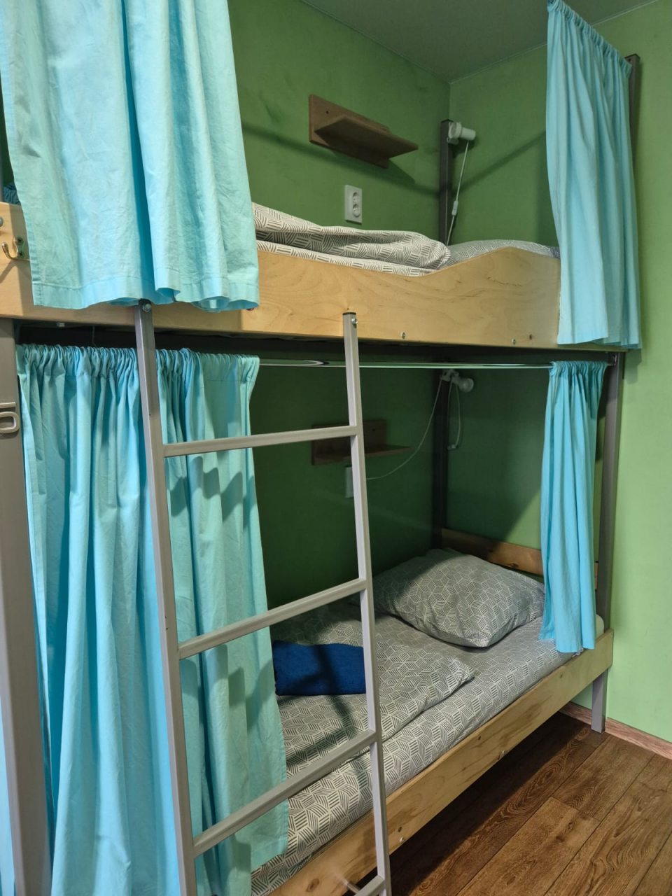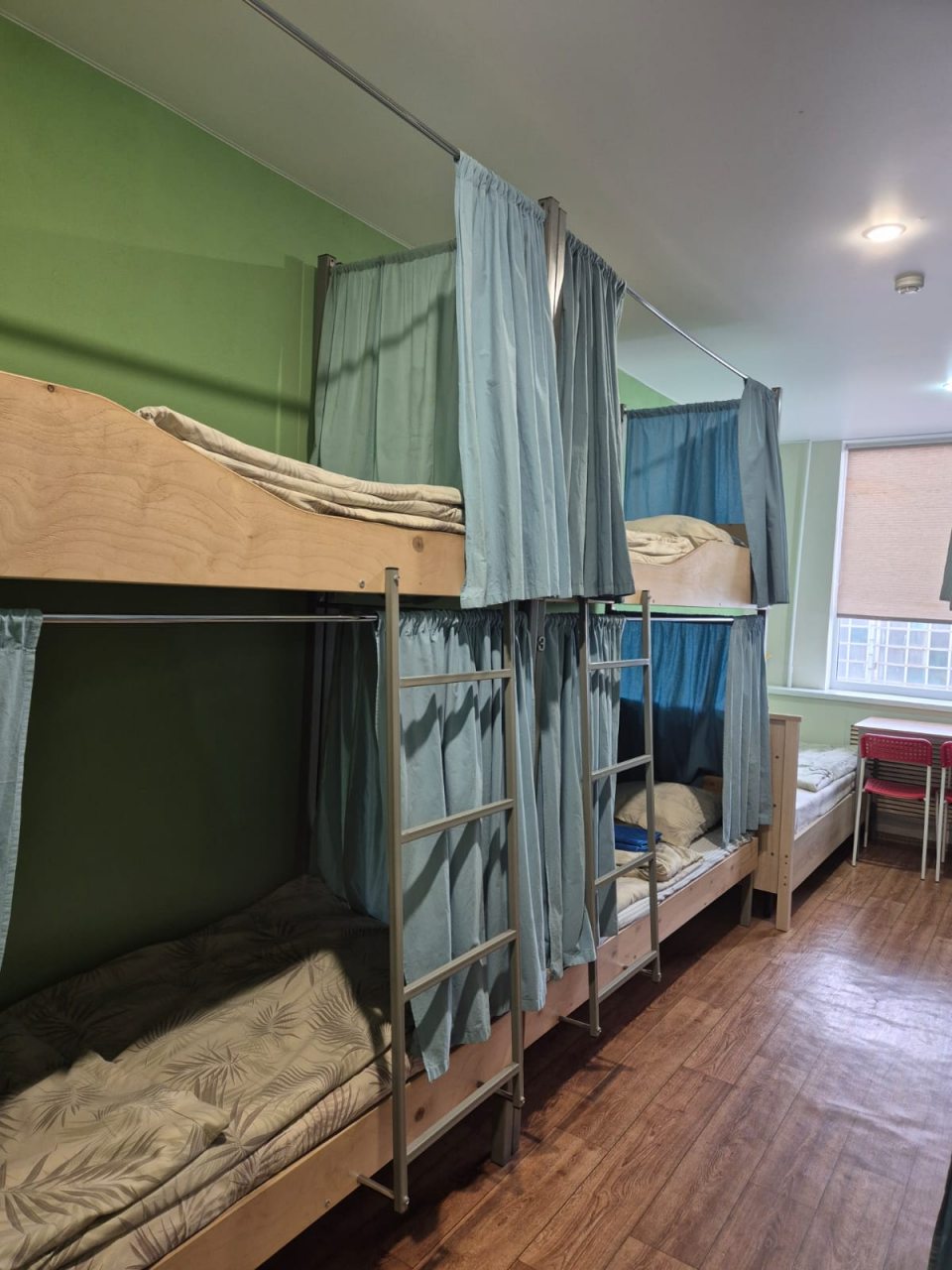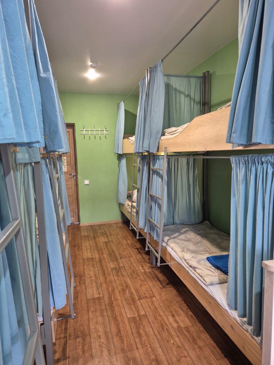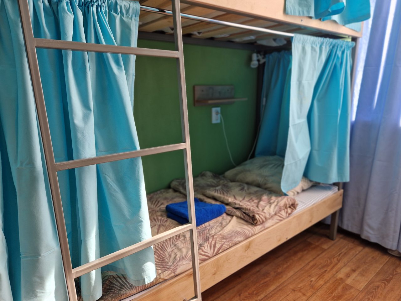 Хостел очень даже неплохой, в нем регулярно убирают, и постояльцы тоже стараются поддерживать условия для себя. Оформление приятное, стены в мятных тонах очень освежают пространство. Кухня общая, но очень большая, в ней достаточно столов, холодильников. Посуды много, бытовой техники. Душевая просторная, раковин достаточно. В номерах кровати, индивидуальные шкафчики, удобно.
