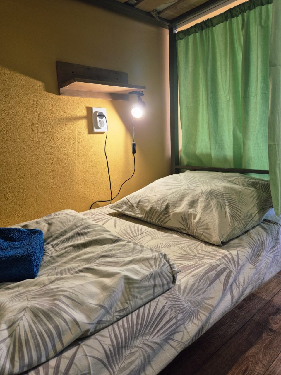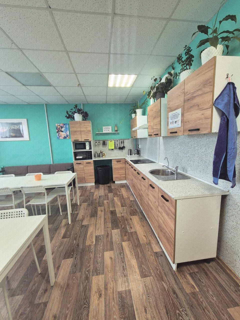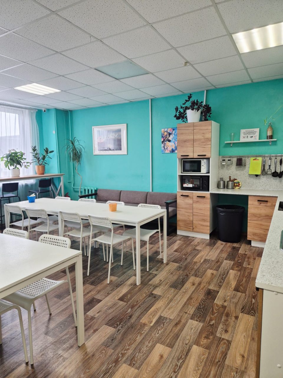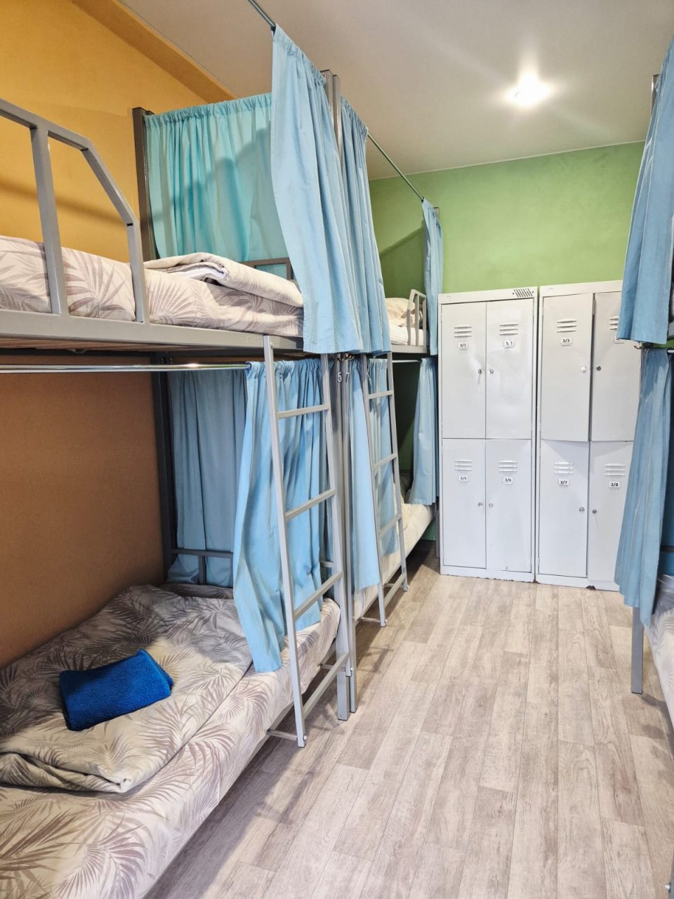 Хостел очень даже неплохой, в нем регулярно убирают, и постояльцы тоже стараются поддерживать условия для себя. Оформление приятное, стены в мятных тонах очень освежают пространство. Кухня общая, но очень большая, в ней достаточно столов, холодильников. Посуды много, бытовой техники. Душевая просторная, раковин достаточно. В номерах кровати, индивидуальные шкафчики, удобно.