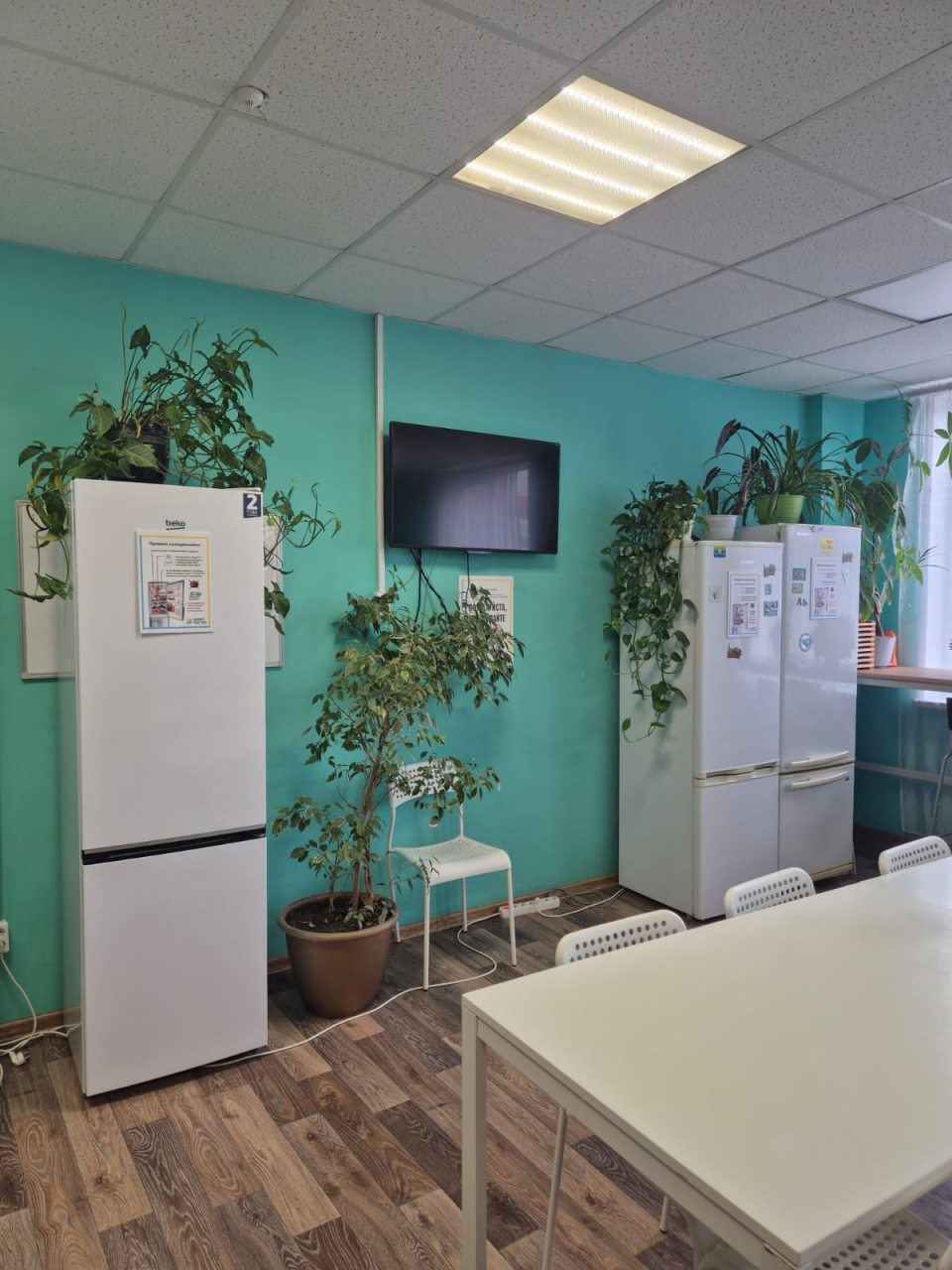 Приготовить обед предлагается на кухне общего пользования, оборудованной холодильником, чайником и микроволновой печью. Альтернативой послужит поход в кафе, столовые и рестораны быстрого питания в шаговой доступности от объекта.