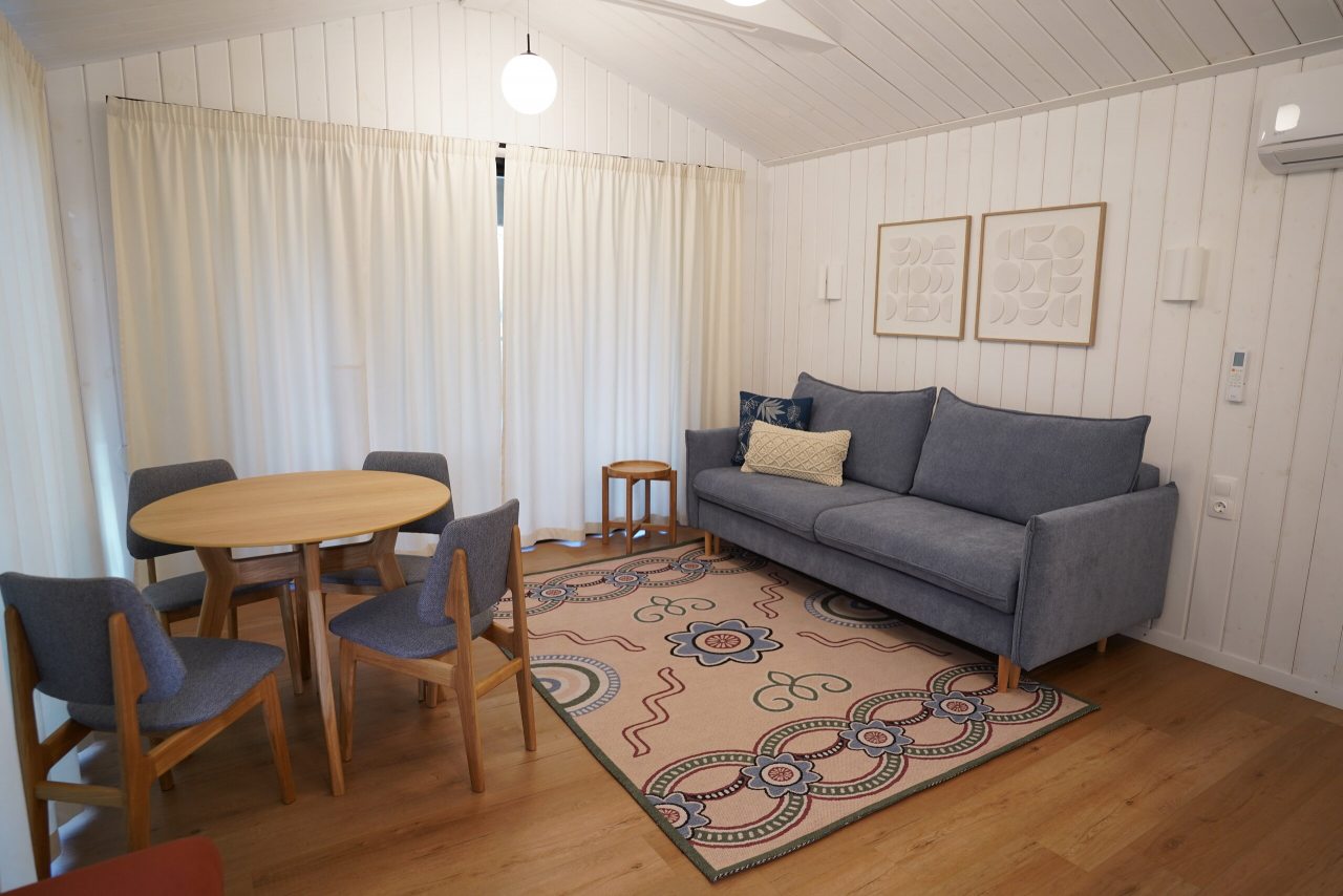 Для выбора предлагаются комфортабельные дома различной вместимости. В каждом имеется красивый вид из окна, функциональная и качественная мебель и техника, в том числе удобное спальное место и индивидуальная ванная комната с необходимой сантехникой.