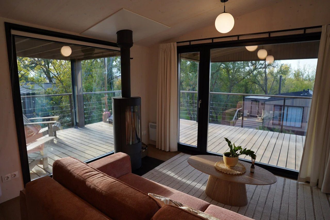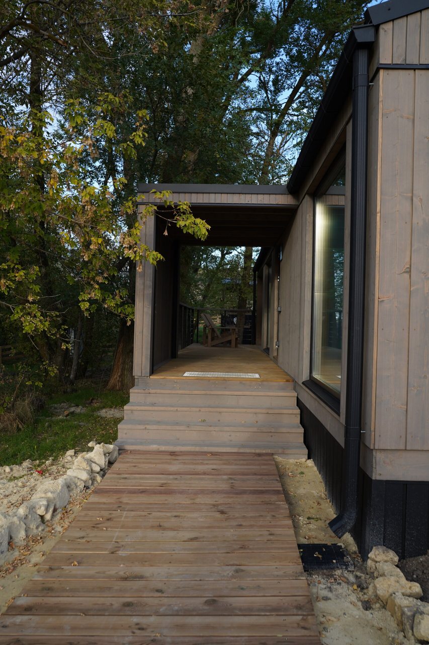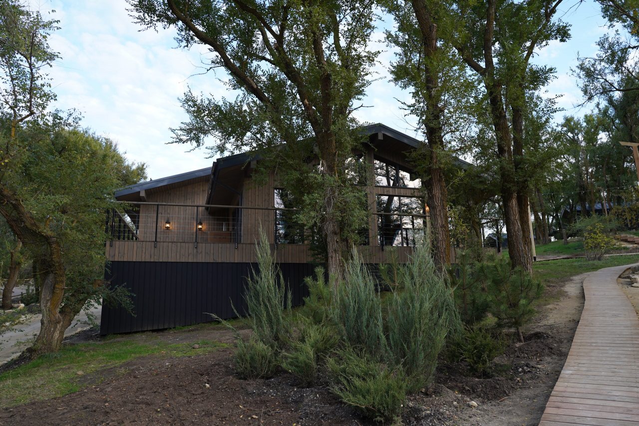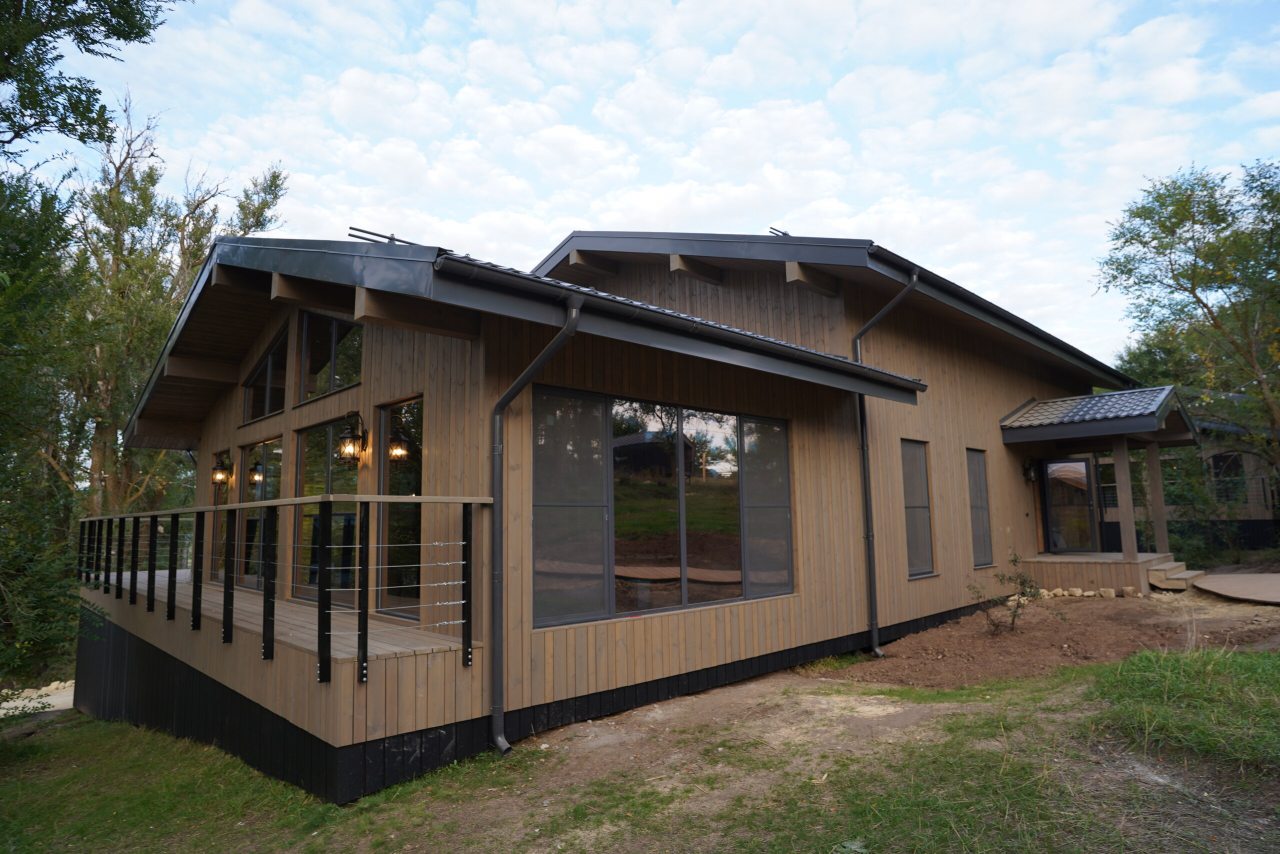Современный вариант отдыха на природе, где не надо отказываться от благ цивилизации. Дом супер комфортный, чистый. прекрасный вид с панорамных окон. Внутри есть кухня, балкон с мебелью. Прогуляться по территории очень приятно. В восторге!