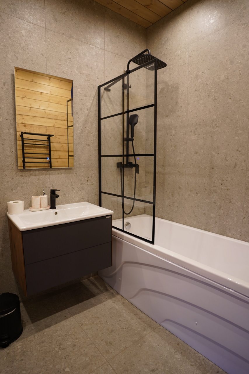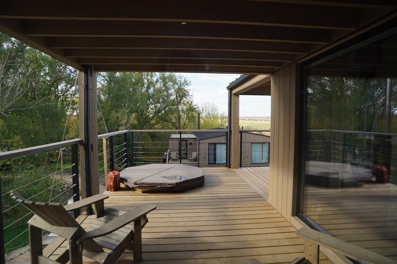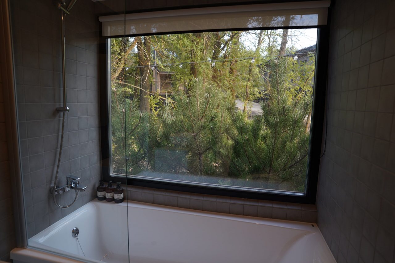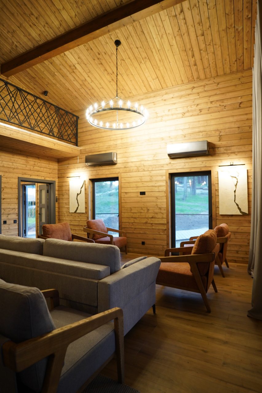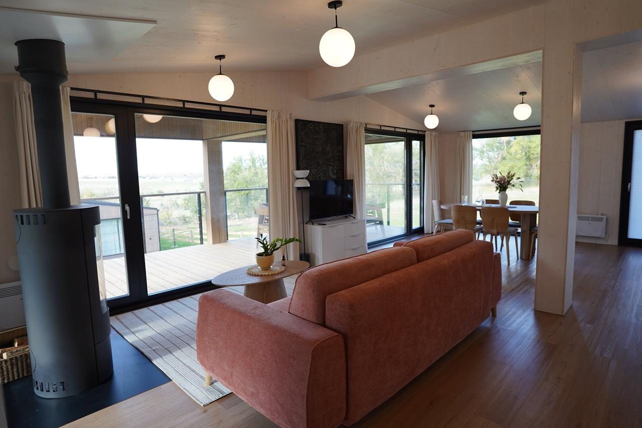 Современный вариант отдыха на природе, где не надо отказываться от благ цивилизации. Дом супер комфортный, чистый. прекрасный вид с панорамных окон. Внутри есть кухня, балкон с мебелью. Прогуляться по территории очень приятно. В восторге!