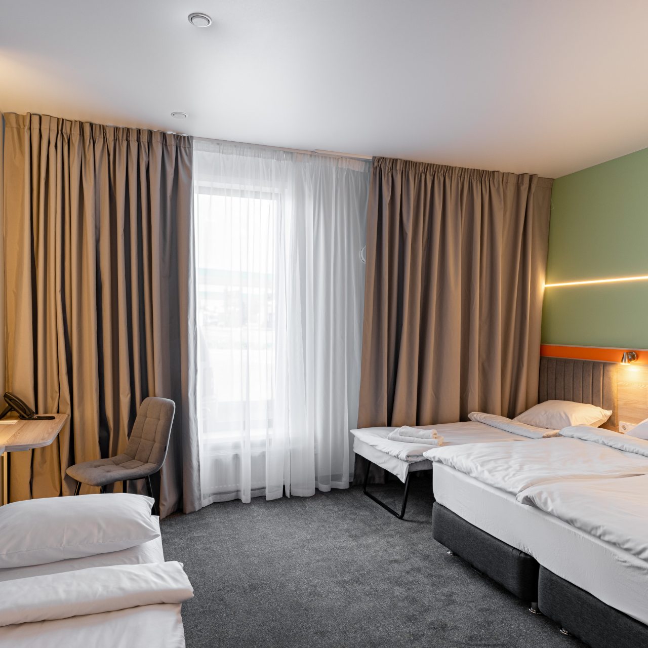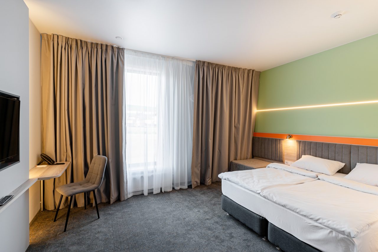 К размещению гостей предлагаются двухместные и семейные номера. Каждый из них оборудован удобными кроватями, мебелью, современной техникой, ванной комнатой. К услугам проживающих: доступ к беспроводной сети Wi-Fi.
